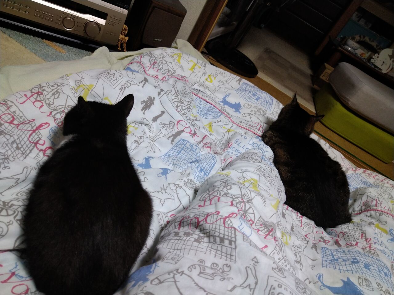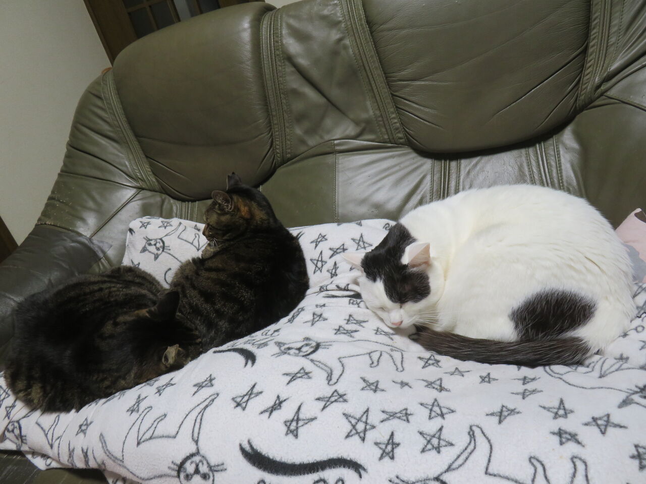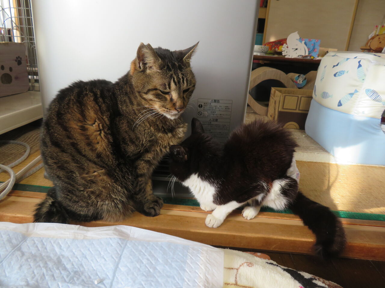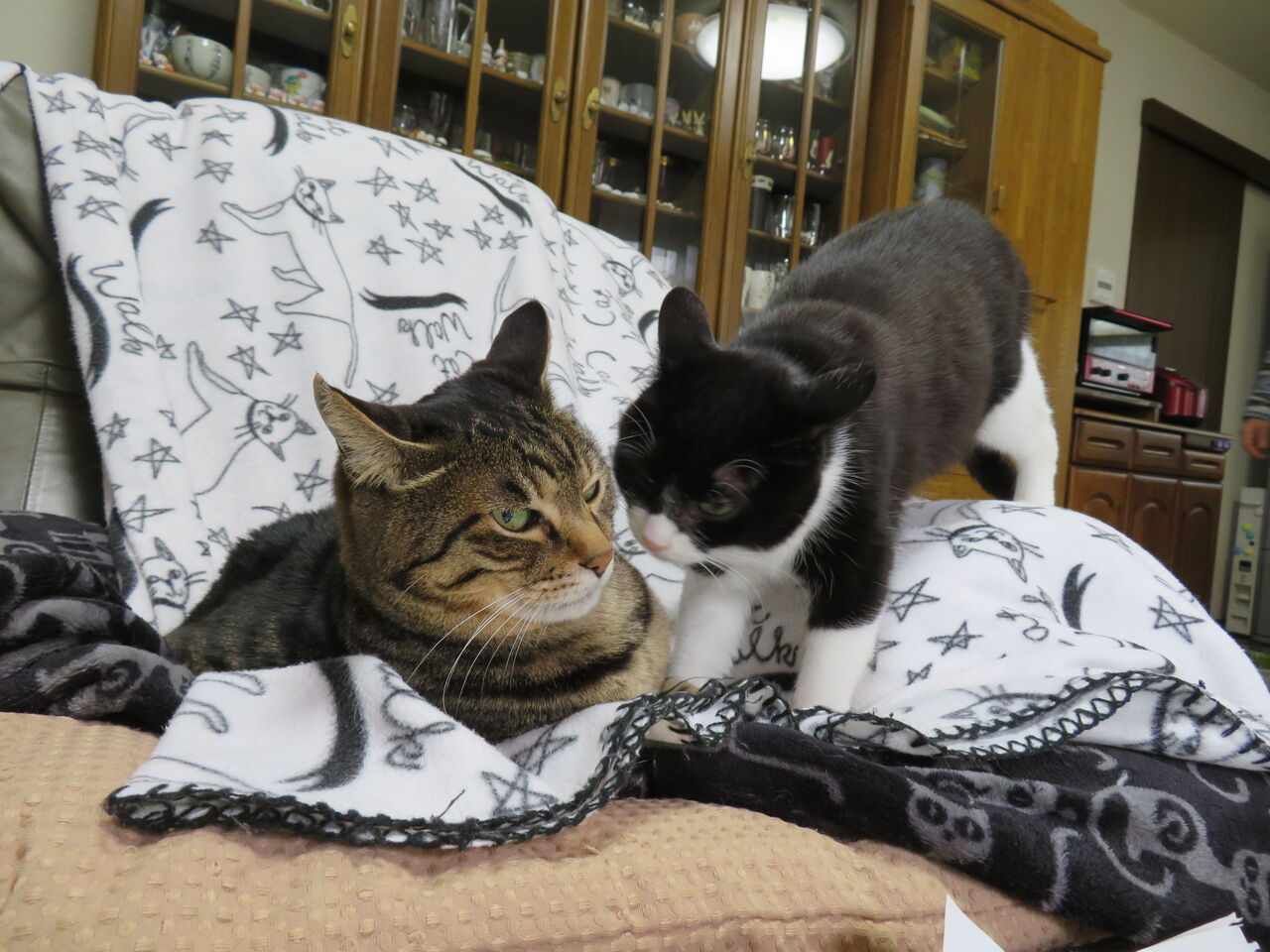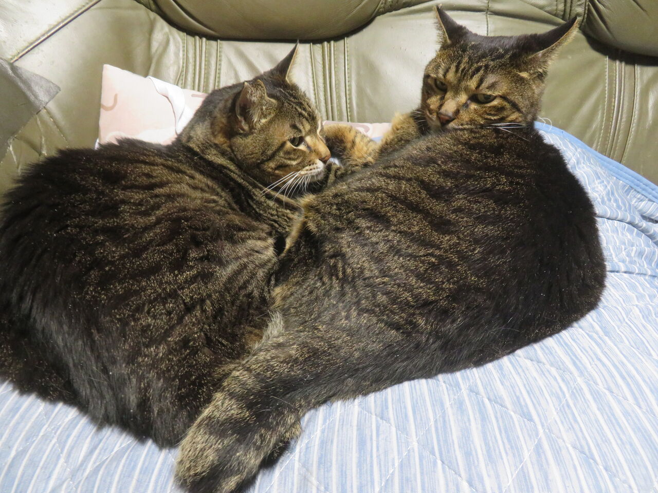 すんなりぴったんこ寝する時もあり、この時の様にプチバトルをしてからぴったんこ寝する時もありますが、基本ニャか良しさんです