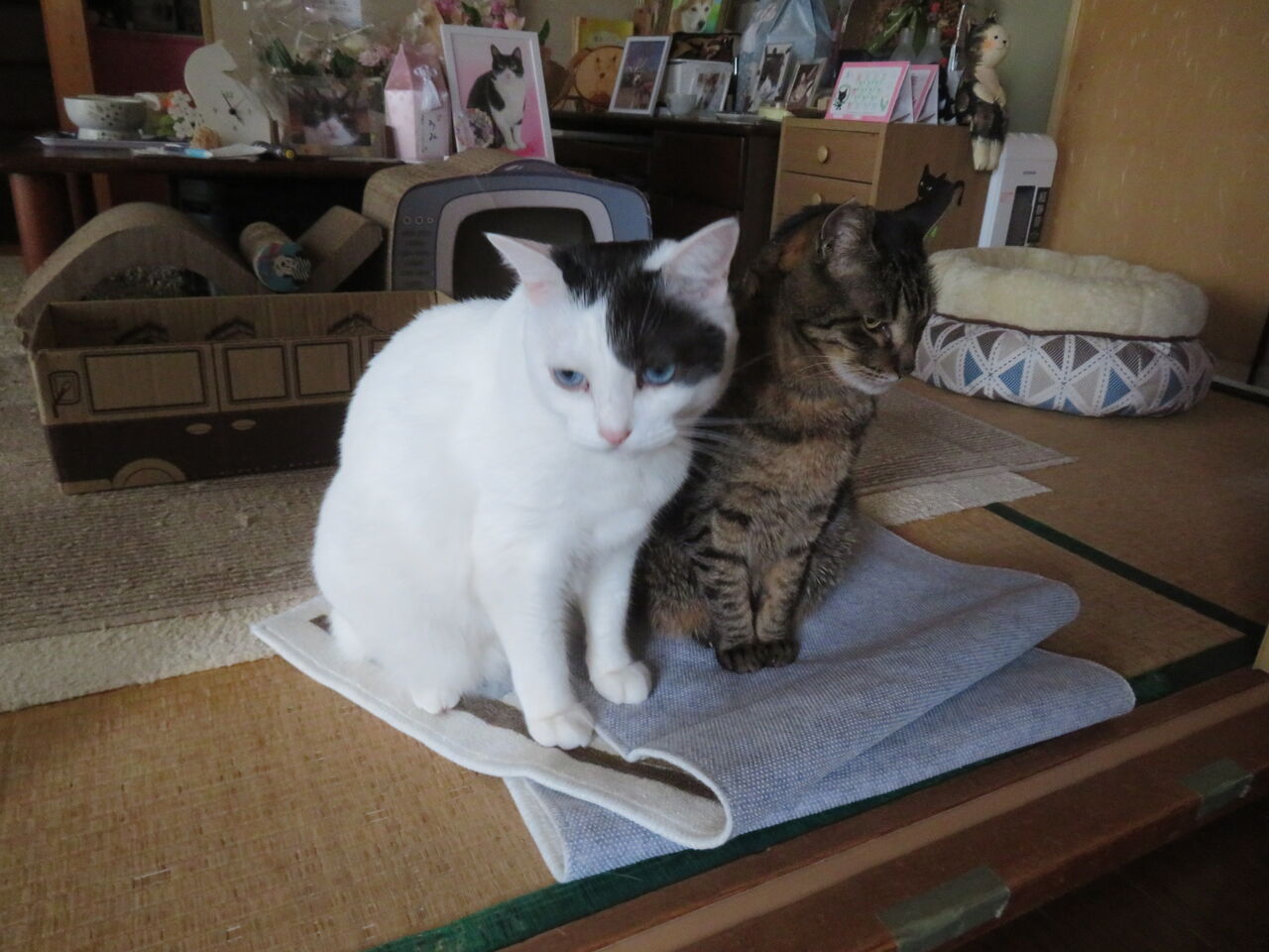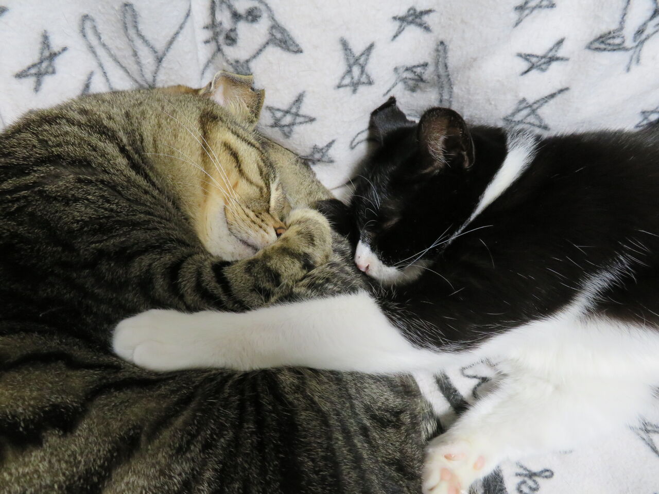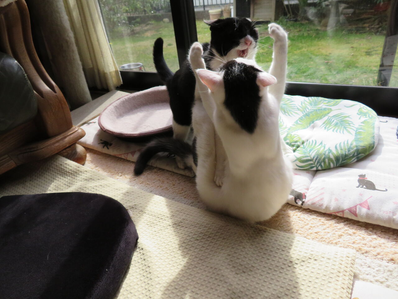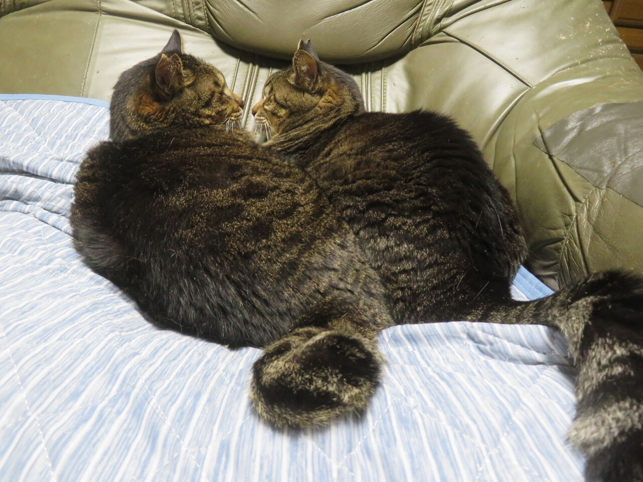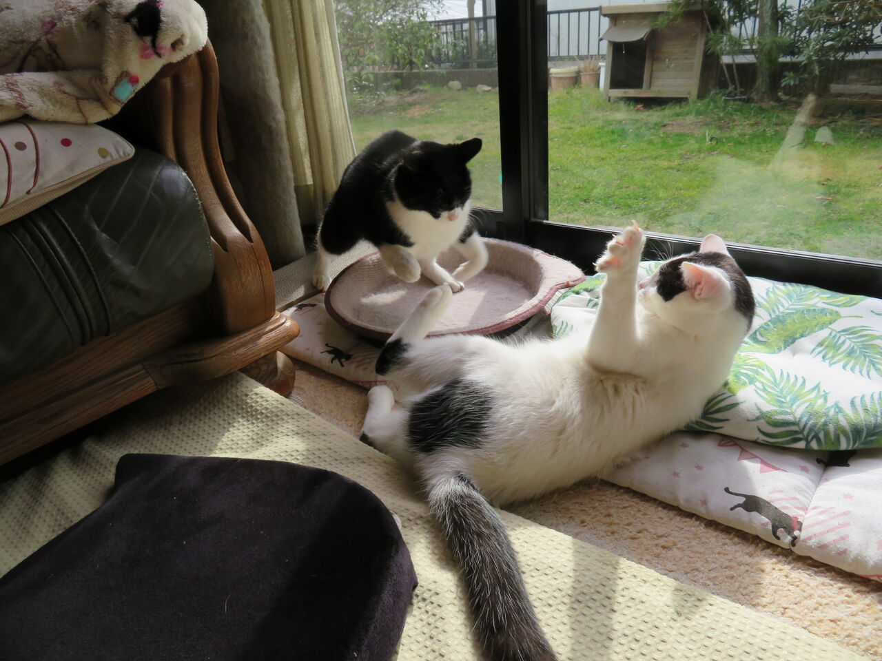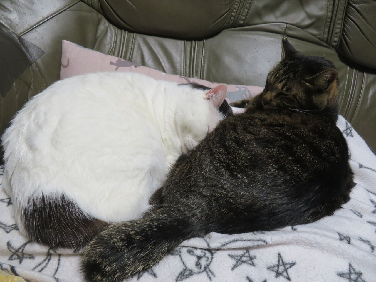 すんなりぴったんこ寝する時もあり、この時の様にプチバトルをしてからぴったんこ寝する時もありますが、基本ニャか良しさんです