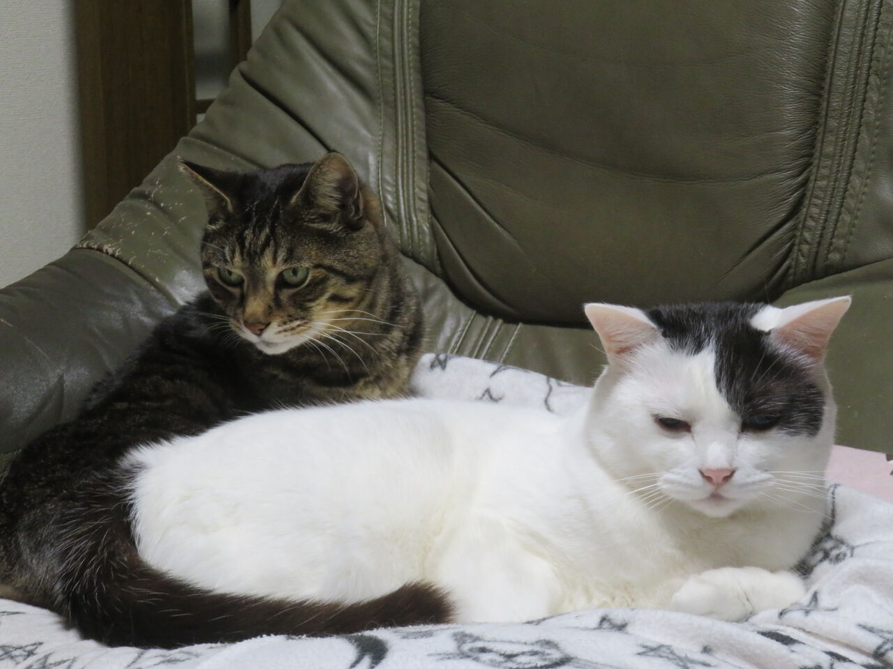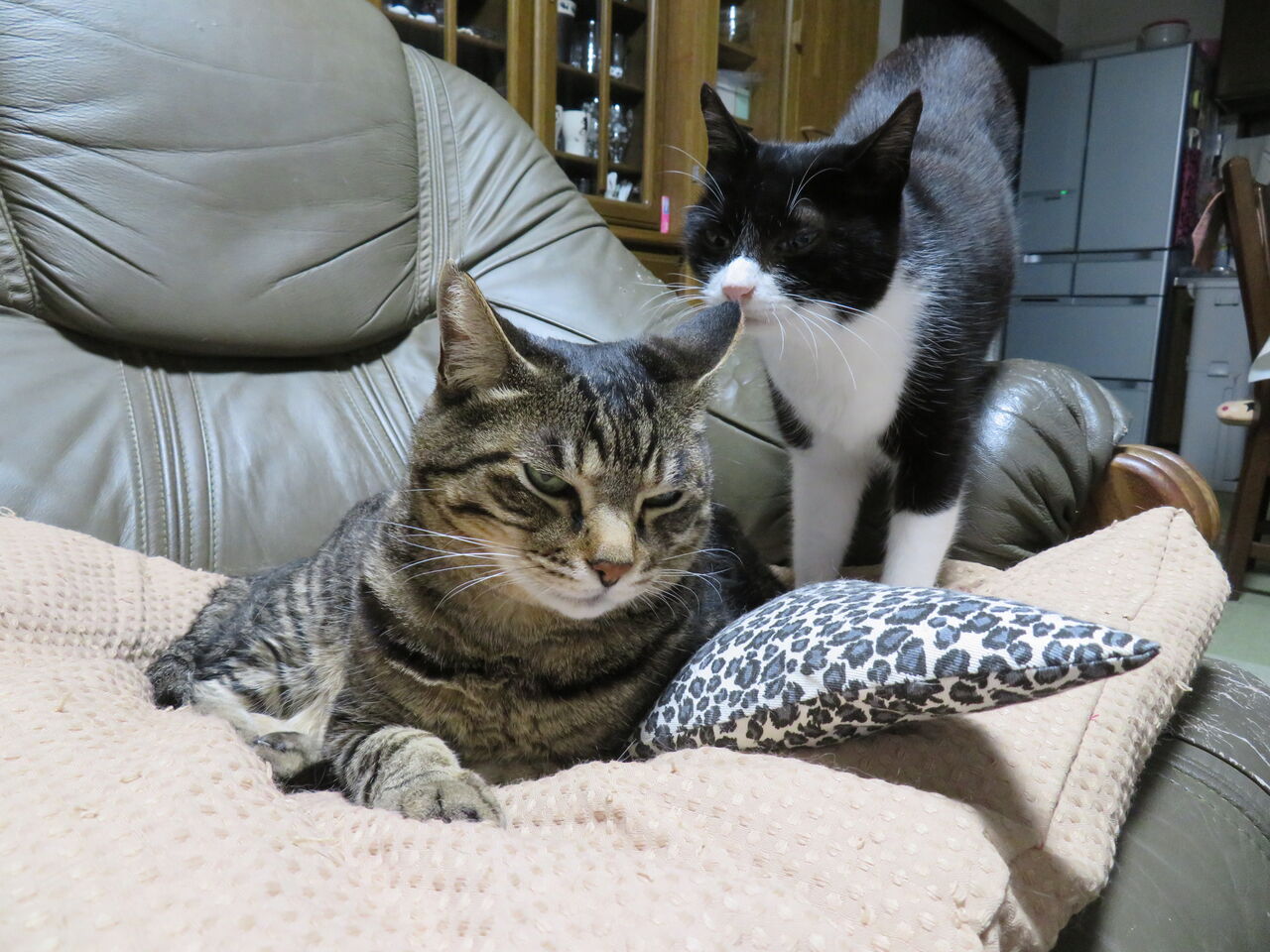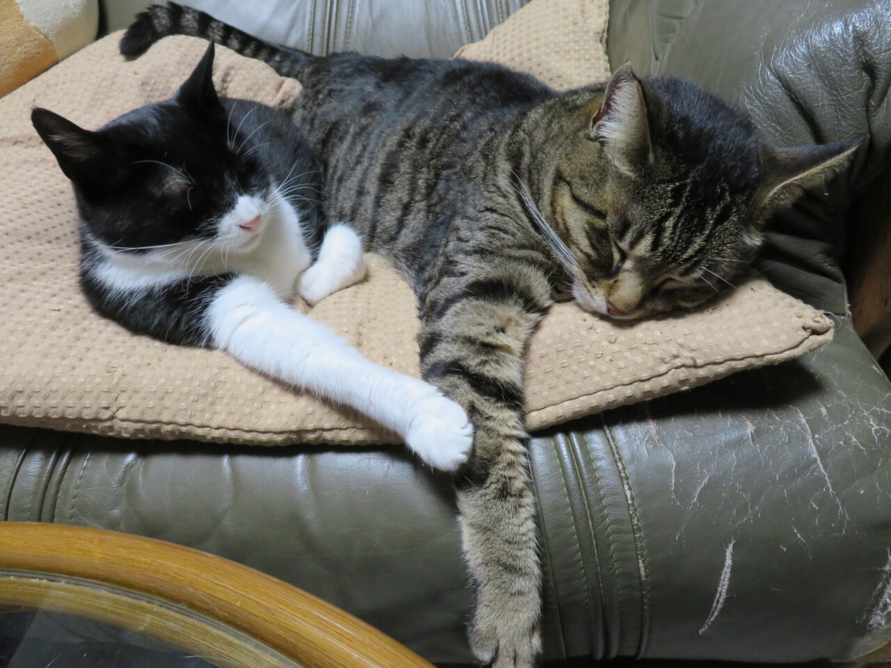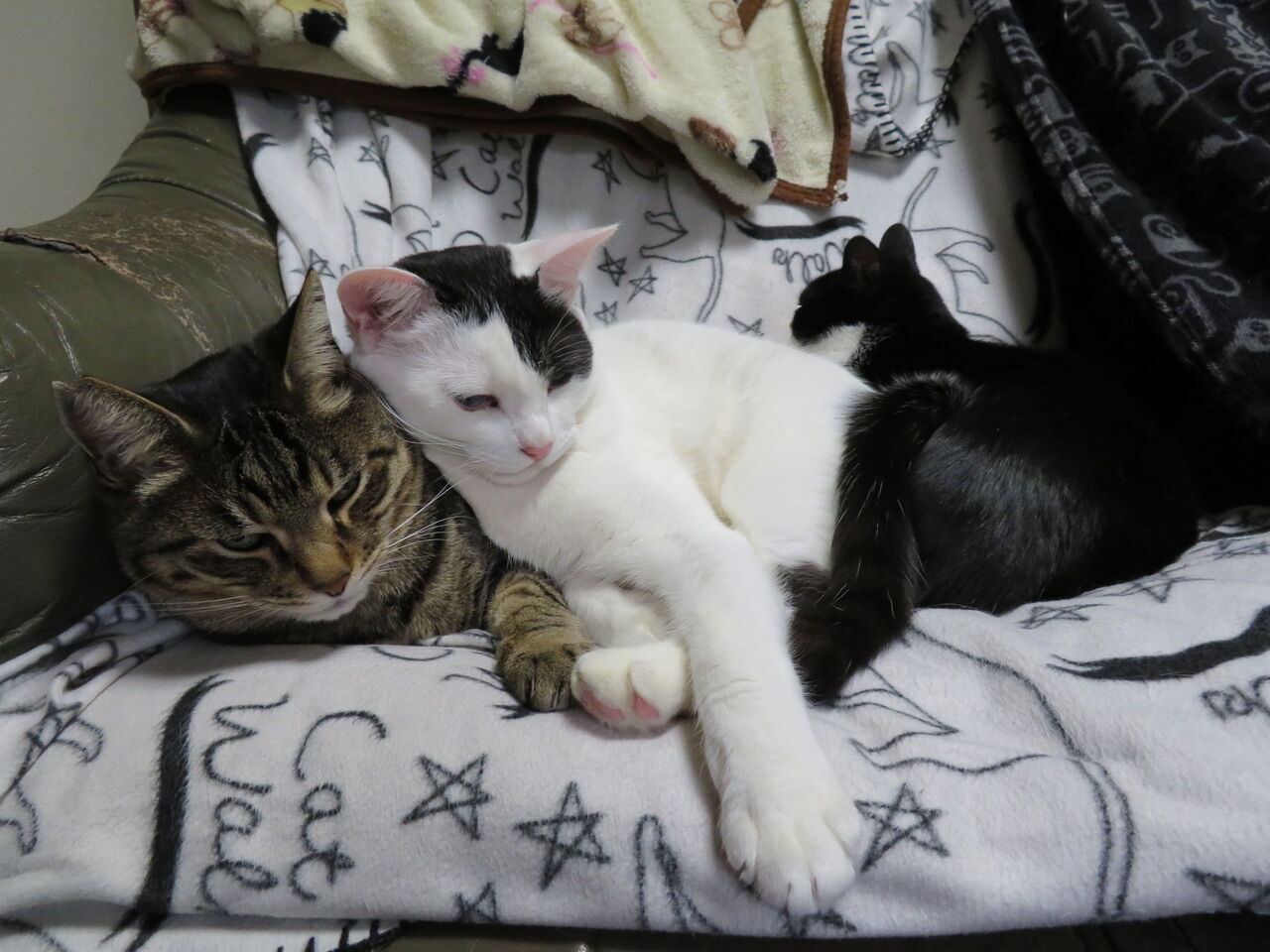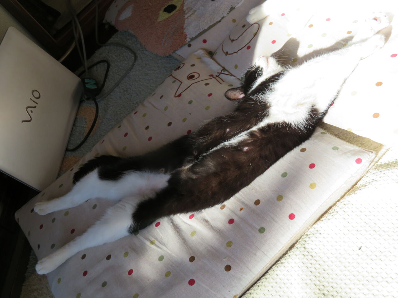 すんなりぴったんこ寝する時もあり、この時の様にプチバトルをしてからぴったんこ寝する時もありますが、基本ニャか良しさんです