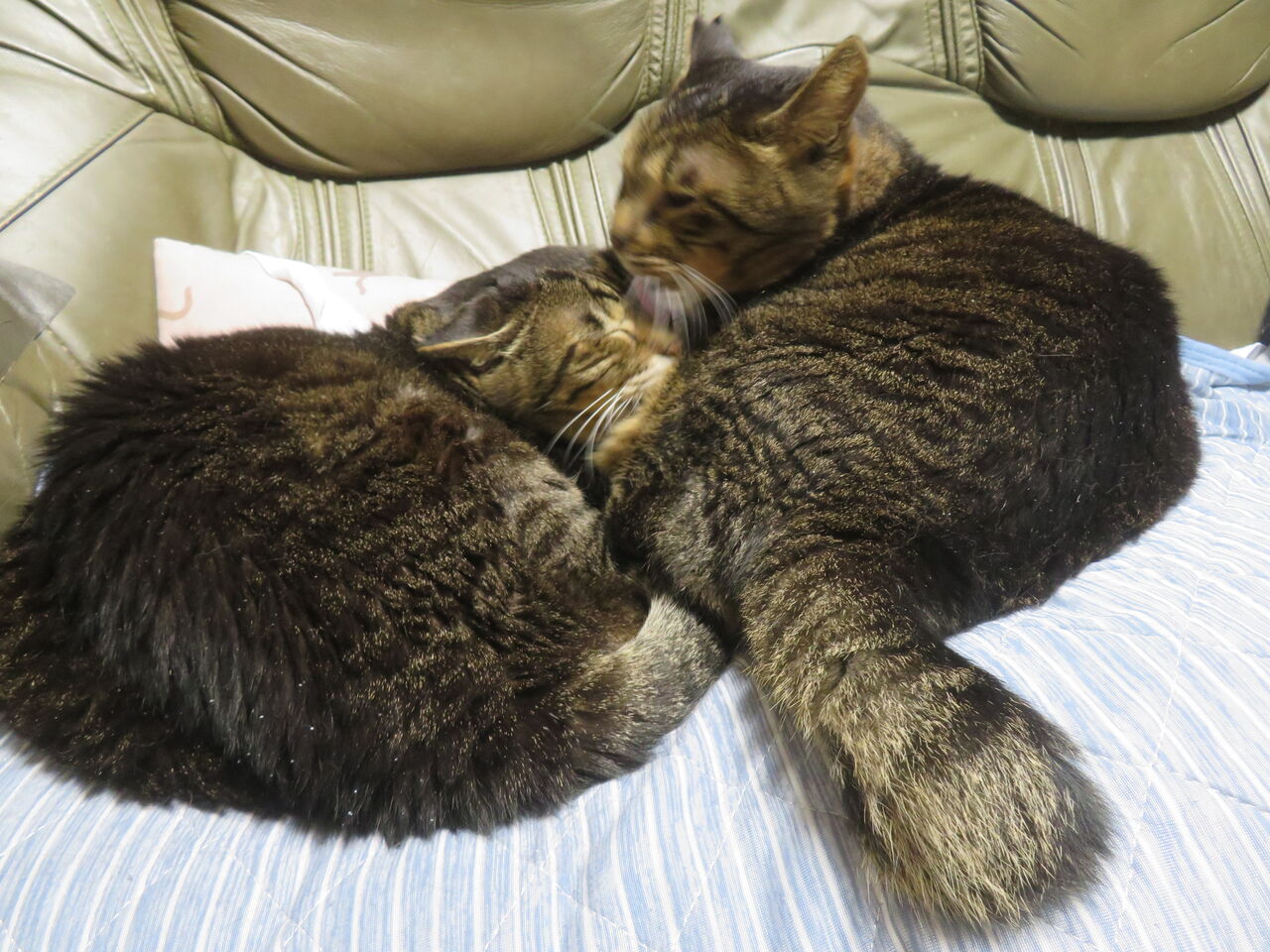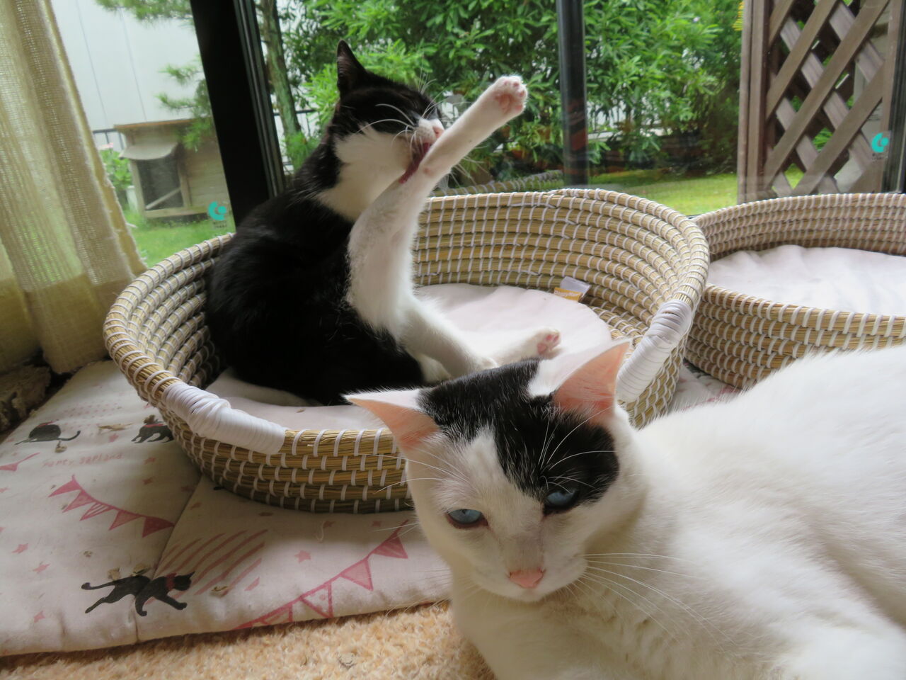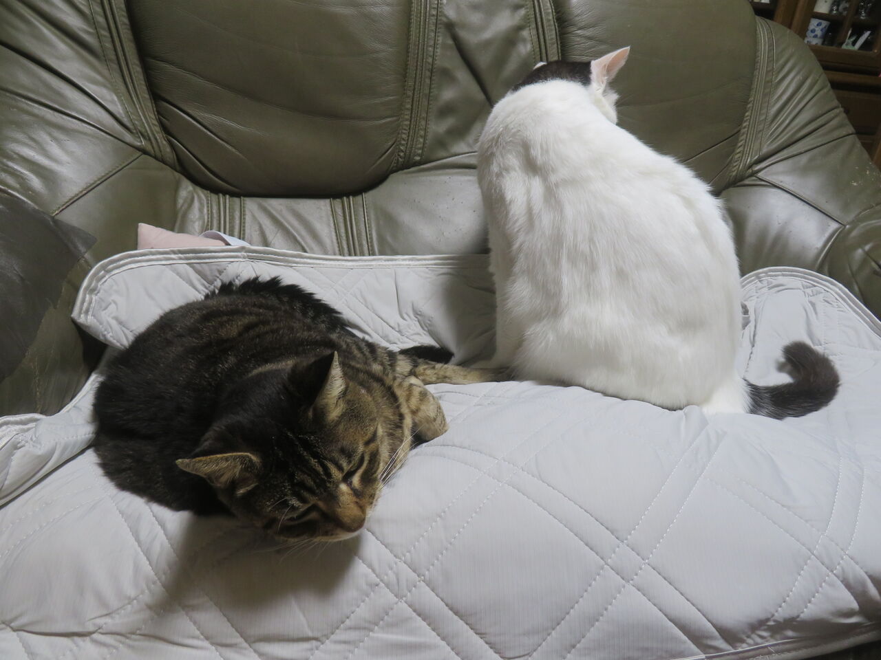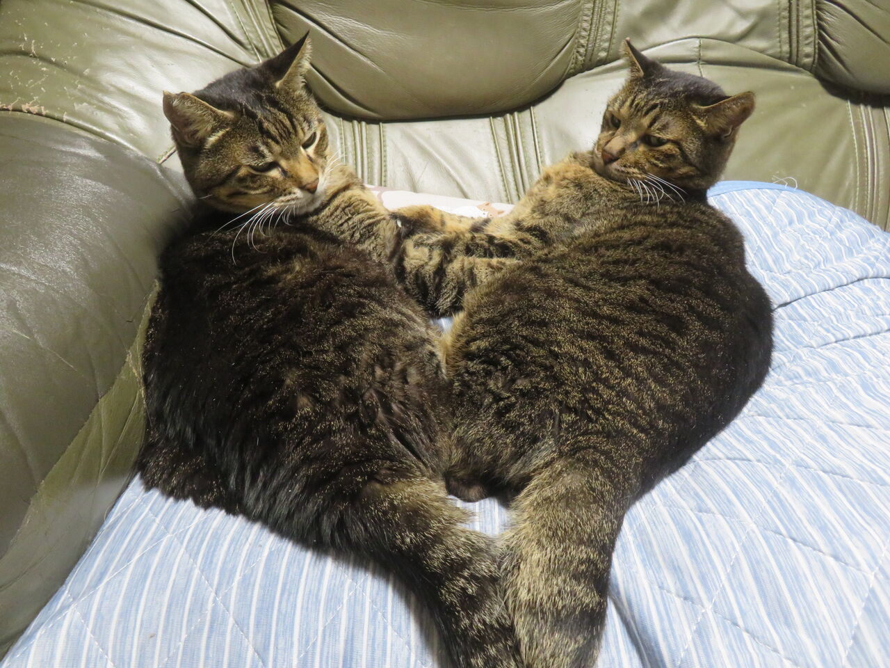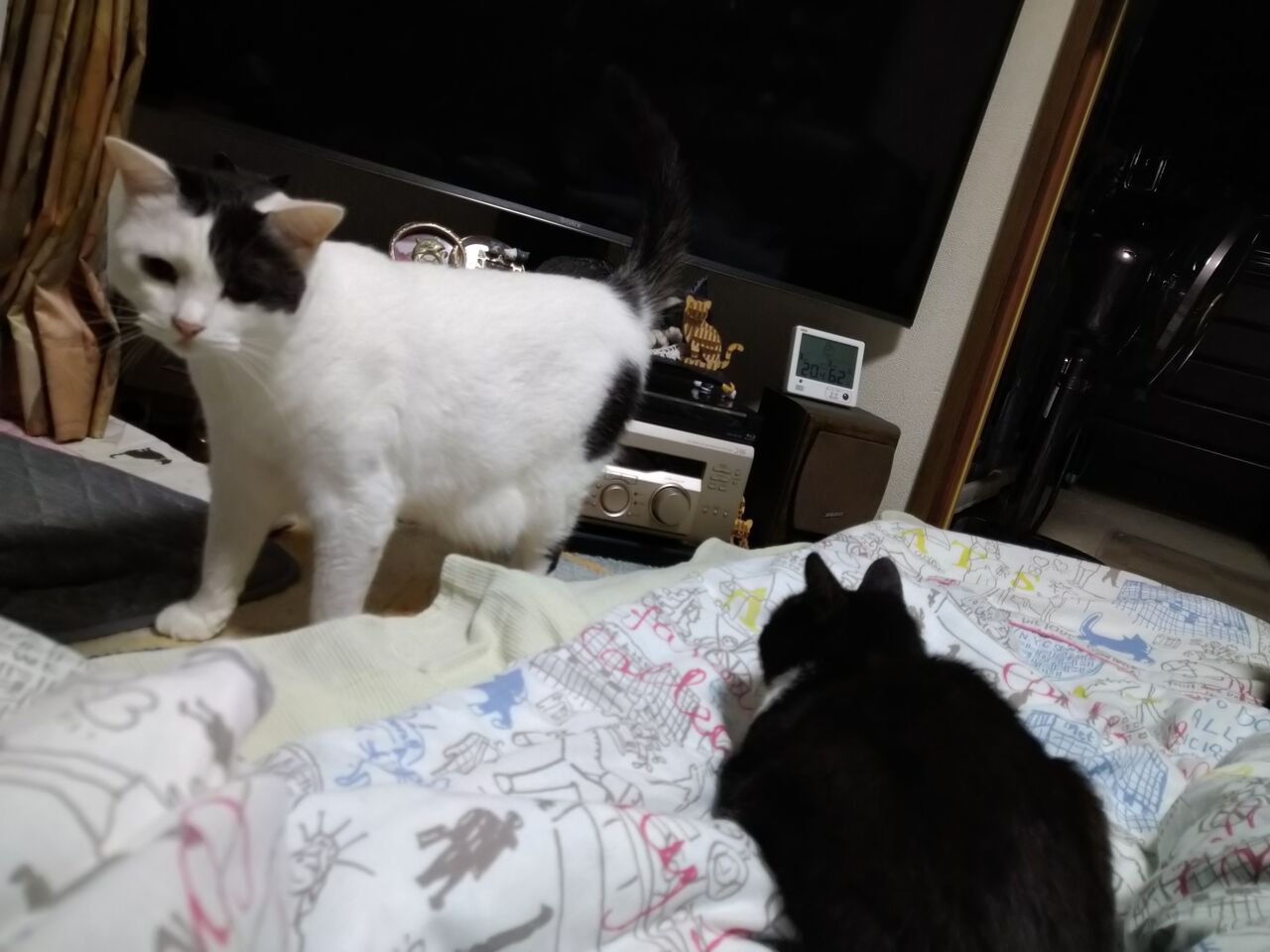 すんなりぴったんこ寝する時もあり、この時の様にプチバトルをしてからぴったんこ寝する時もありますが、基本ニャか良しさんです