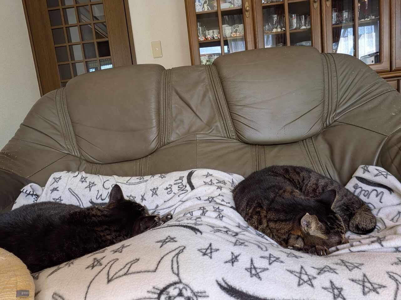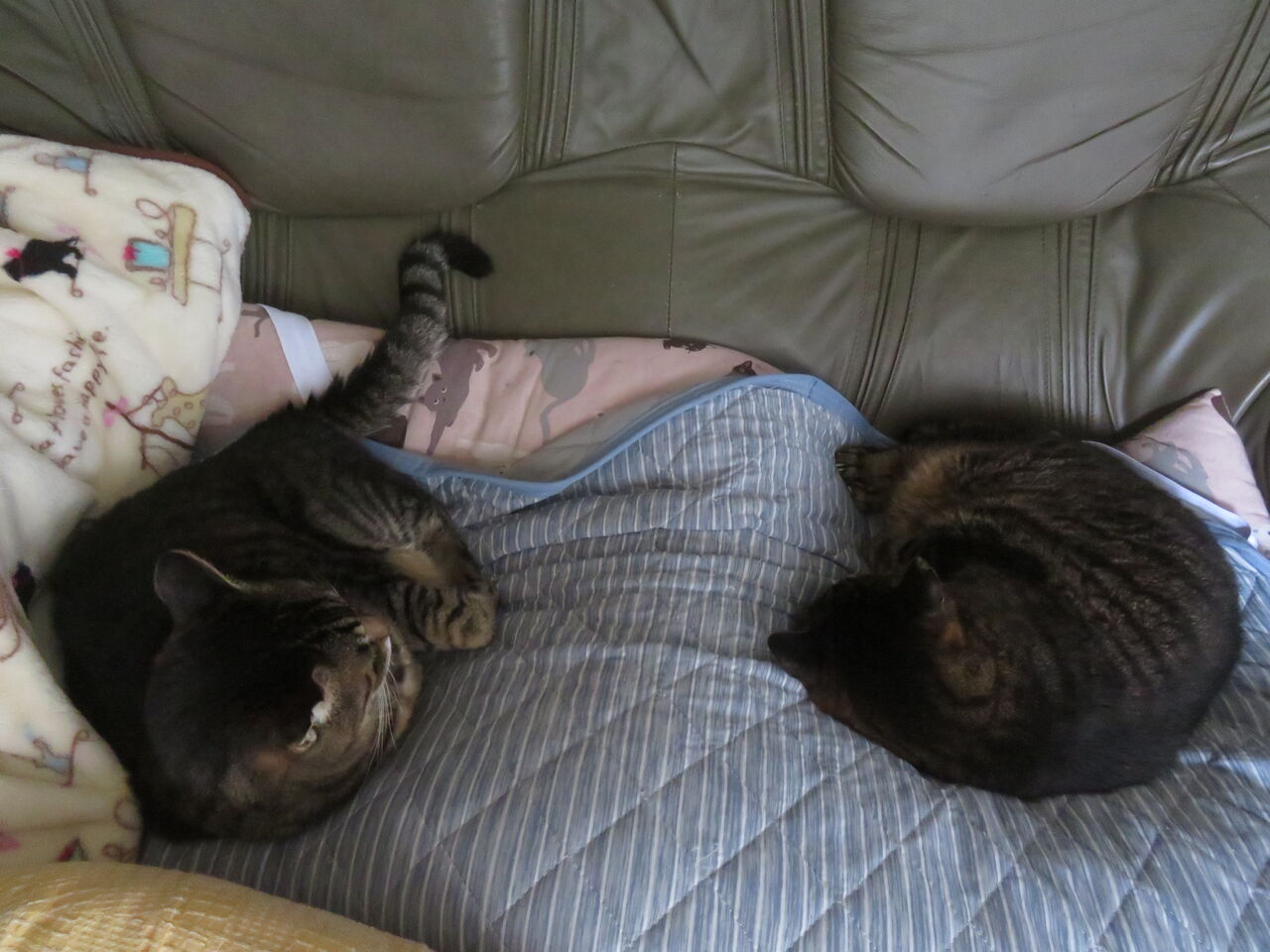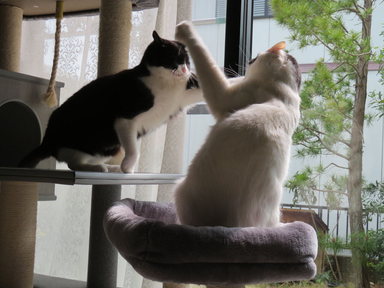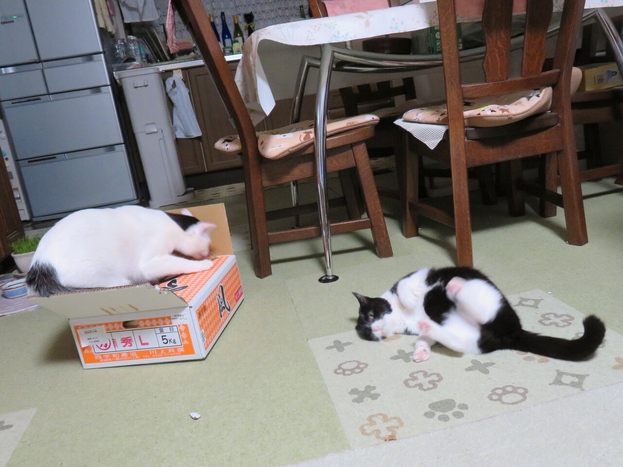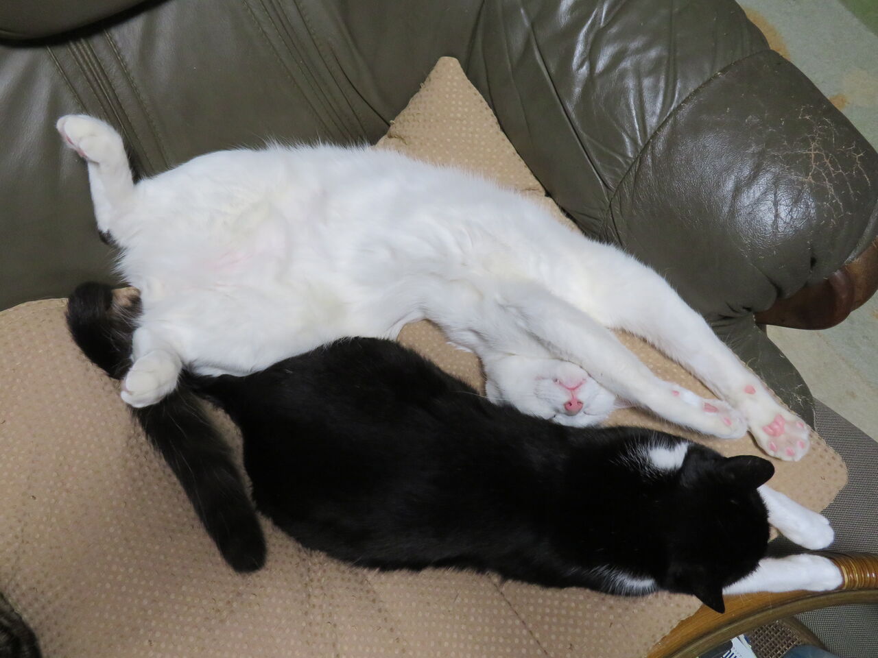 すんなりぴったんこ寝する時もあり、この時の様にプチバトルをしてからぴったんこ寝する時もありますが、基本ニャか良しさんです