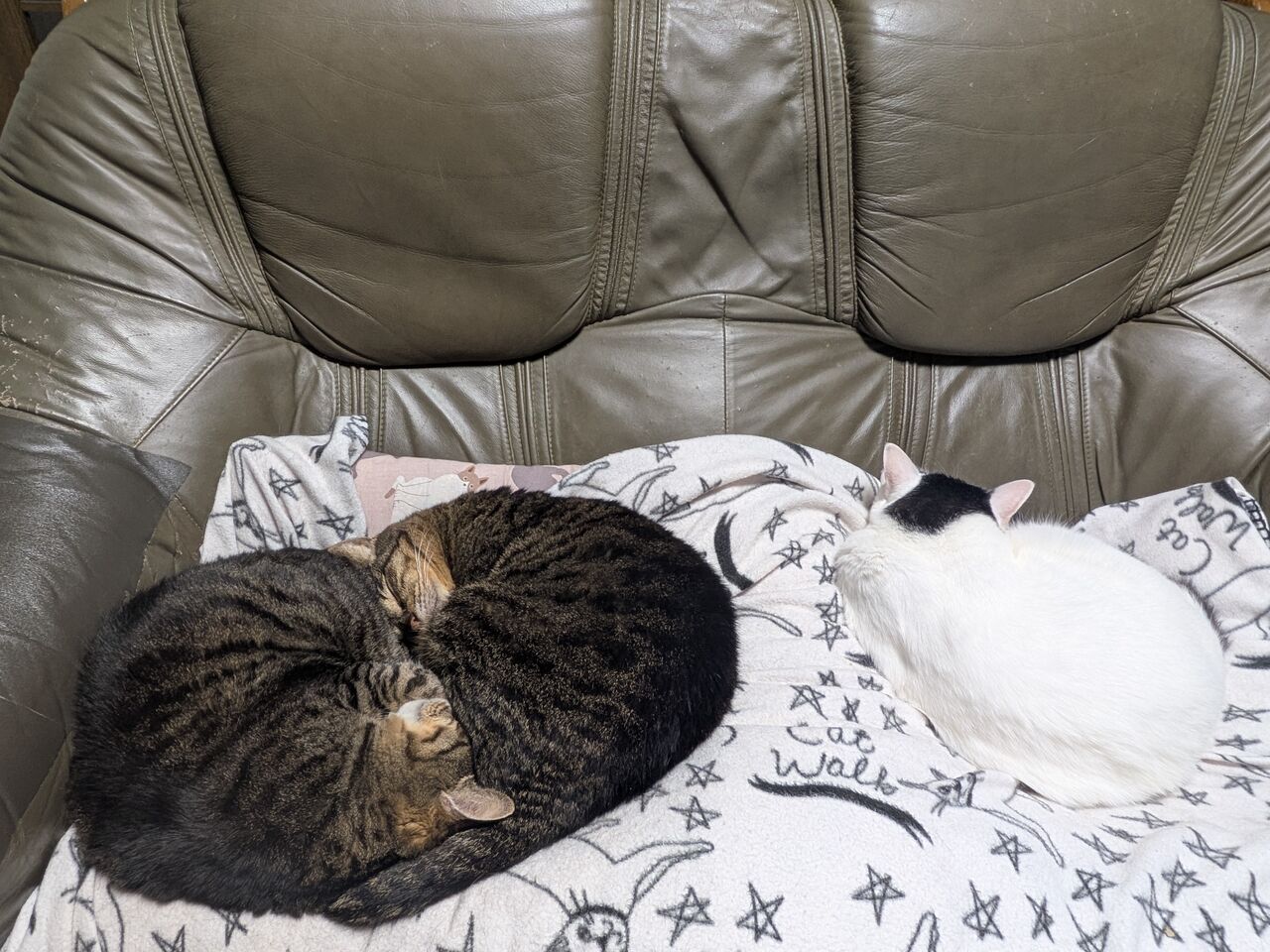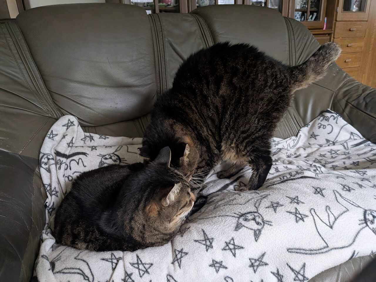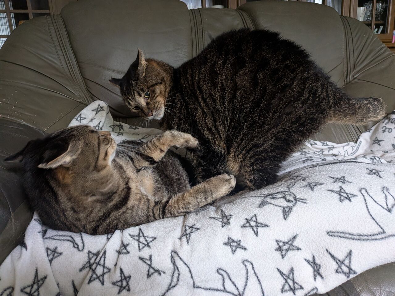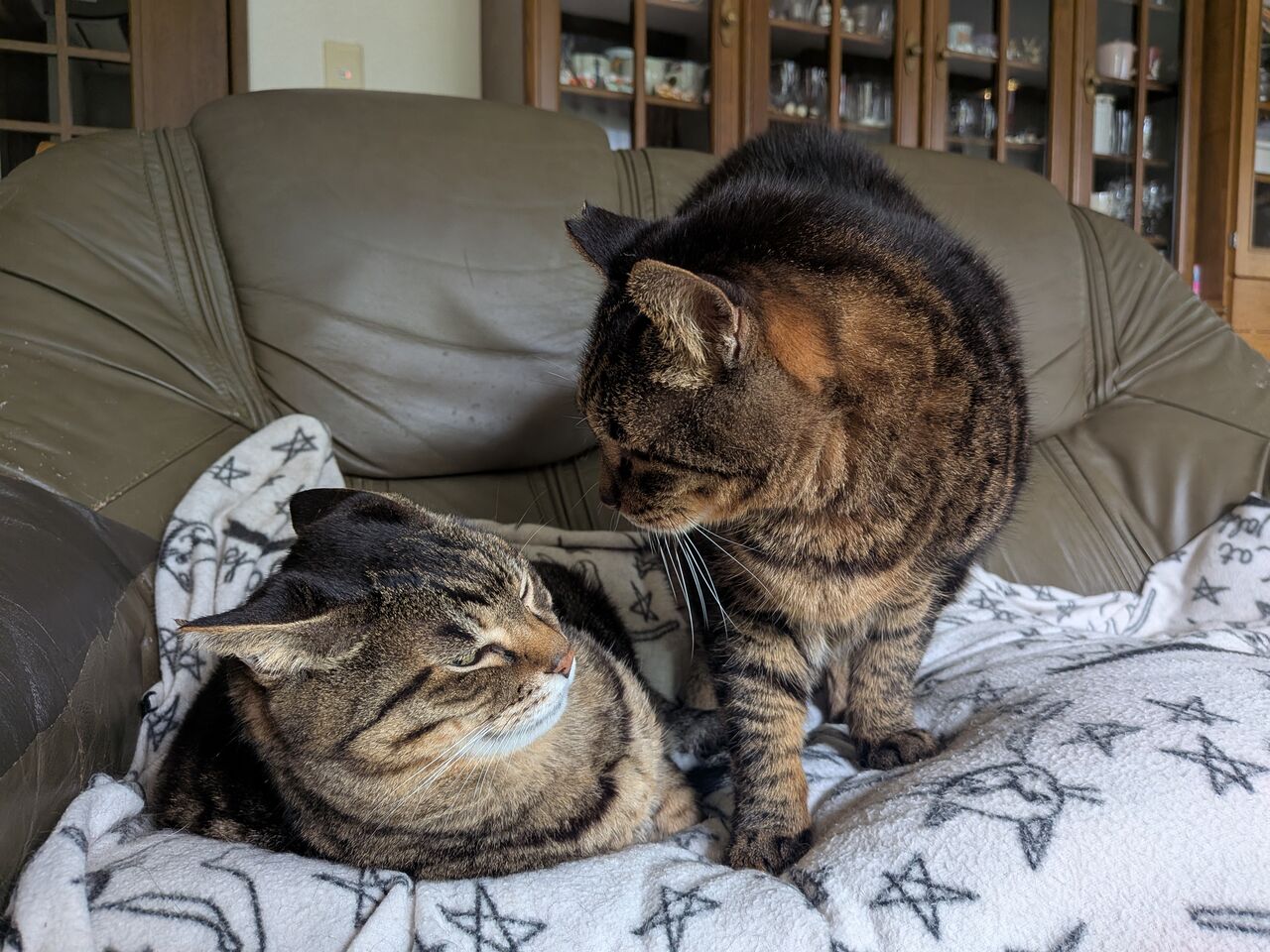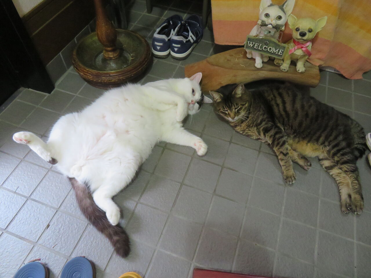 すんなりぴったんこ寝する時もあり、この時の様にプチバトルをしてからぴったんこ寝する時もありますが、基本ニャか良しさんです