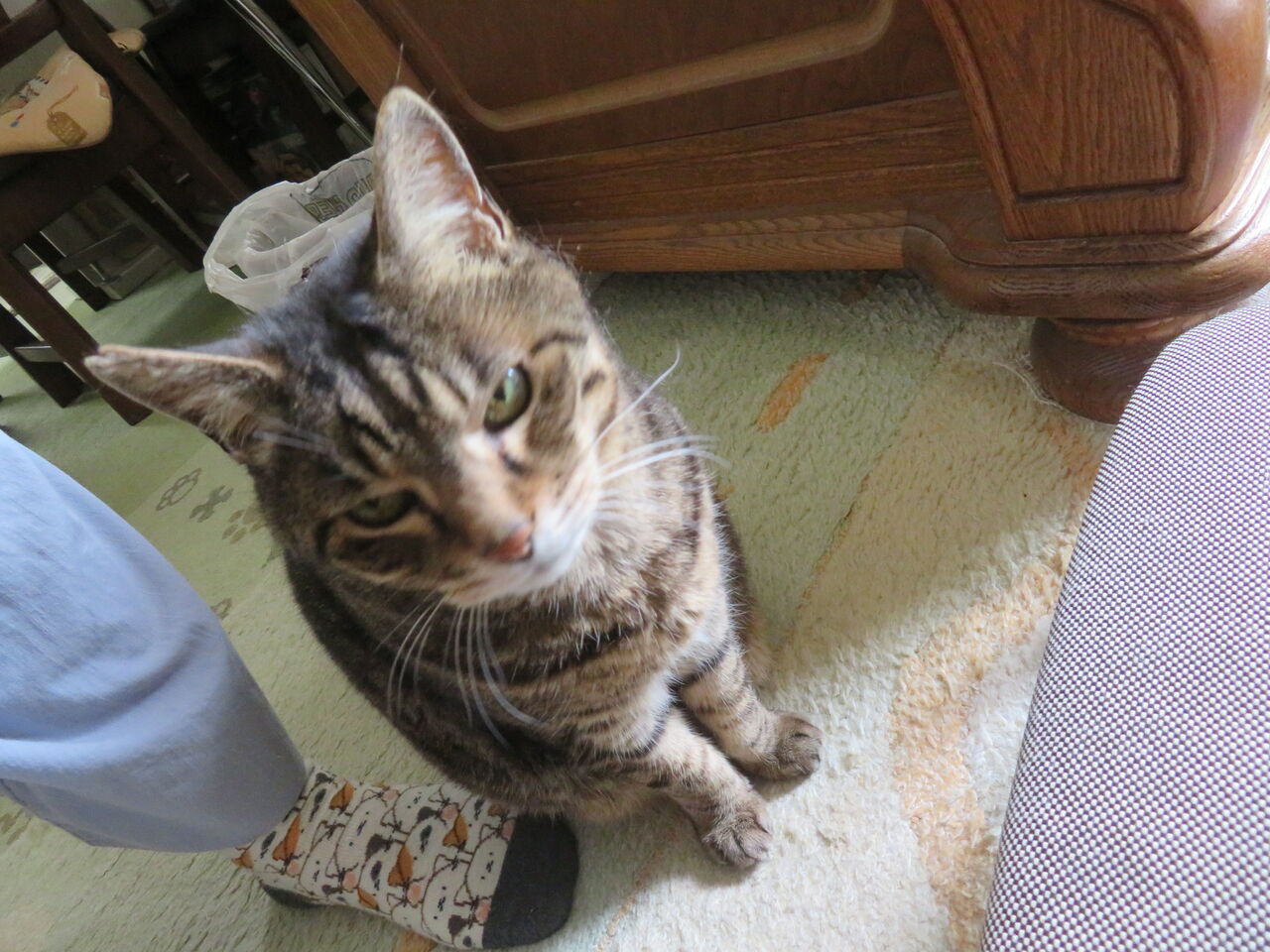 朝、お母ちゃんの膝の上でマッタリしてくれたのは”たくみ”です。