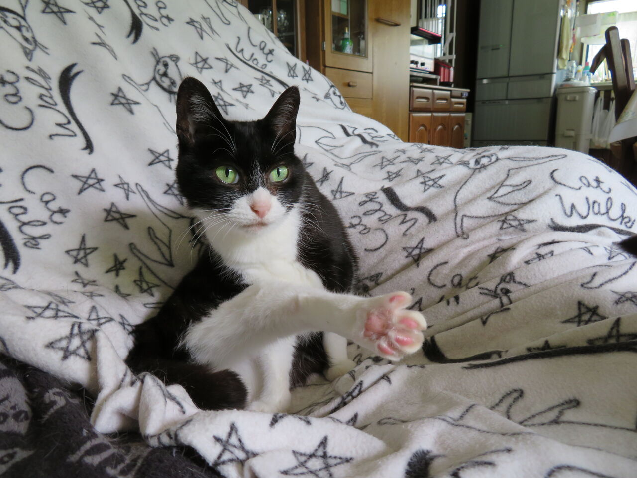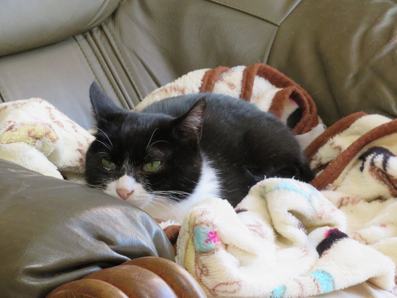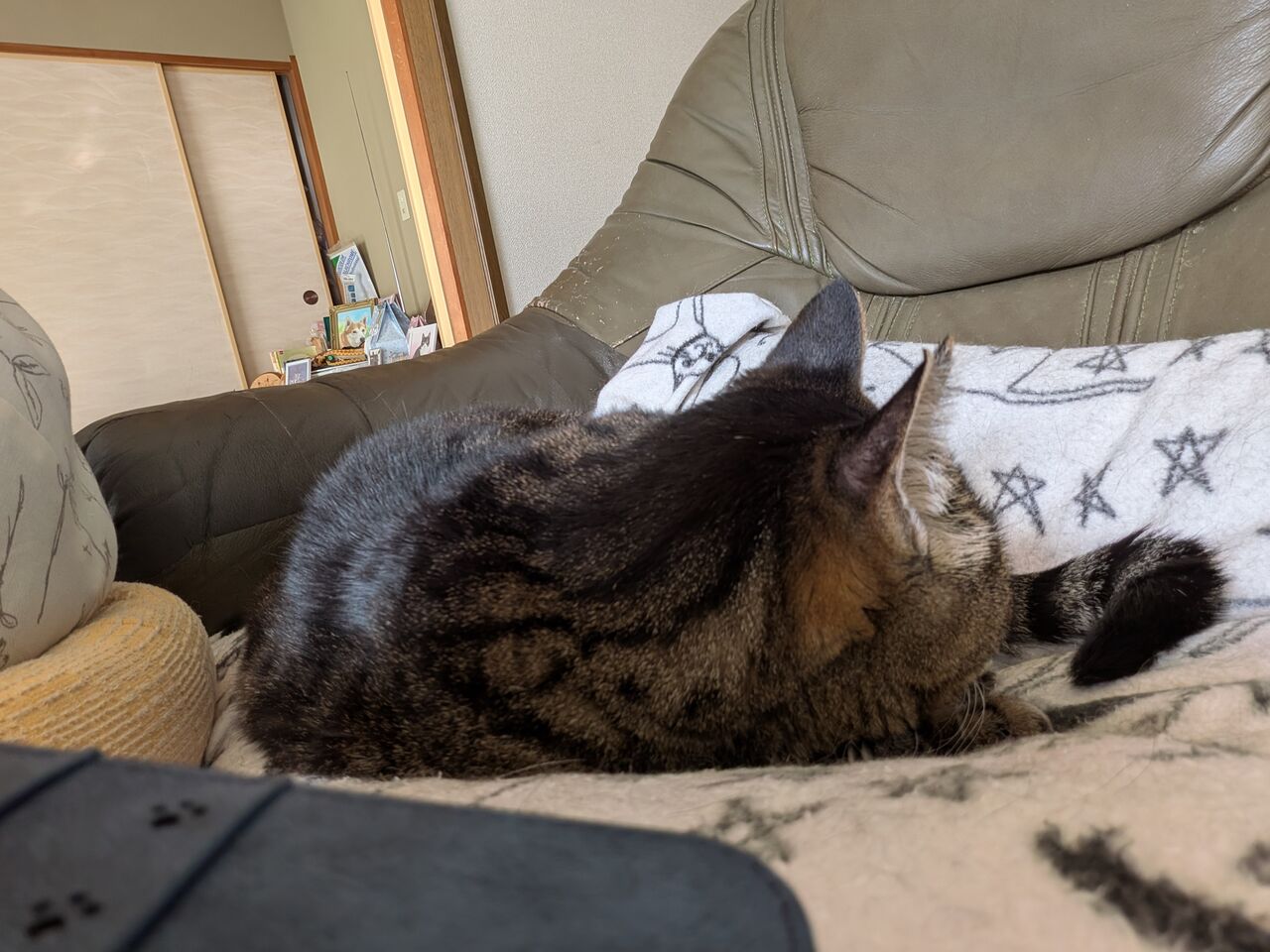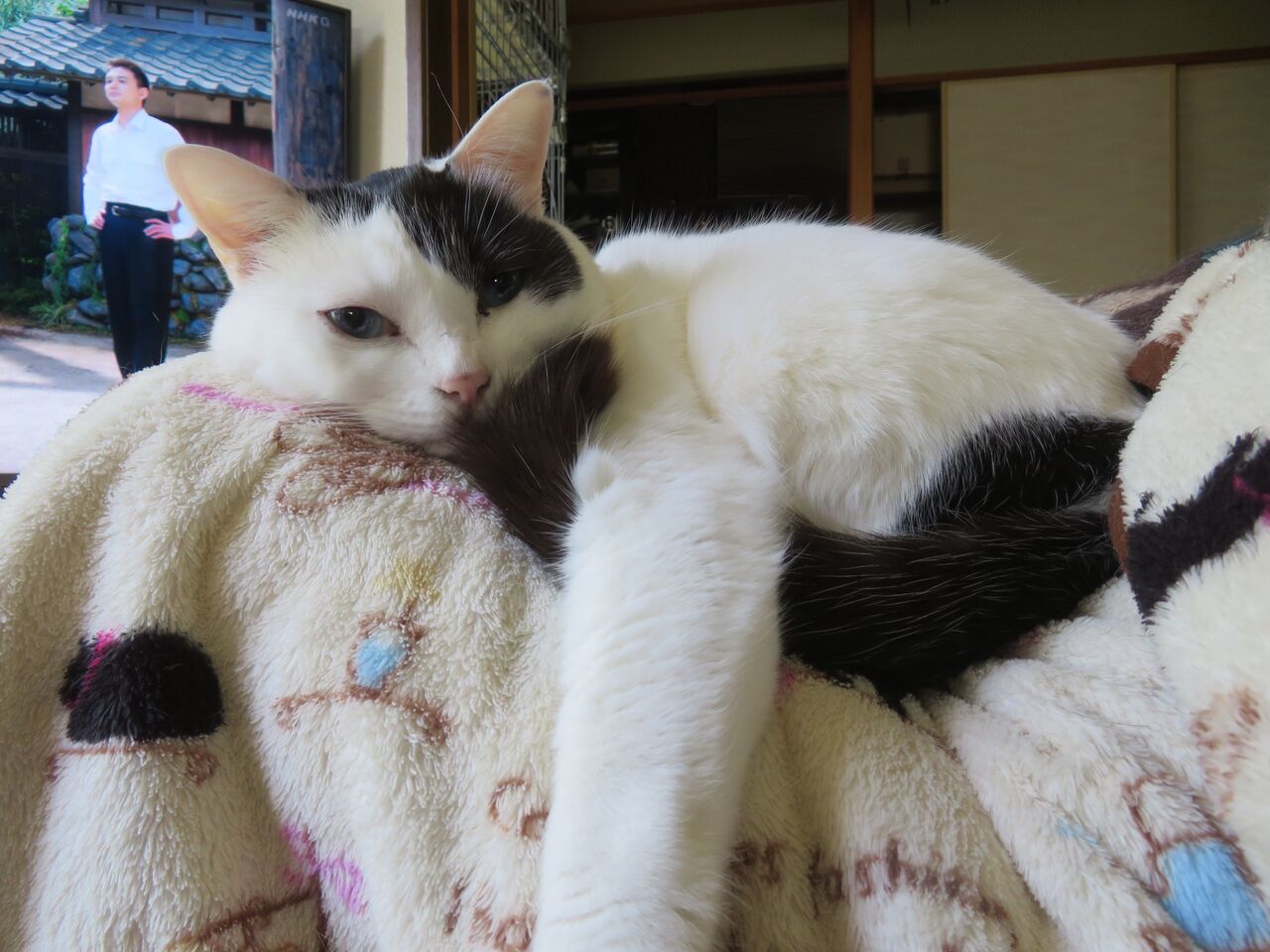 午後、お母ちゃんが毛布をかけて脱力していると、”うみ”自らお母ちゃんの足の間に