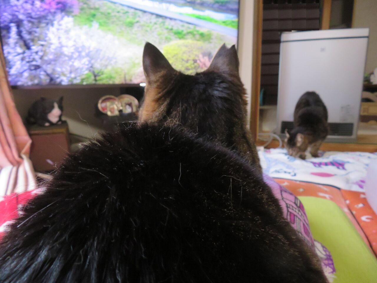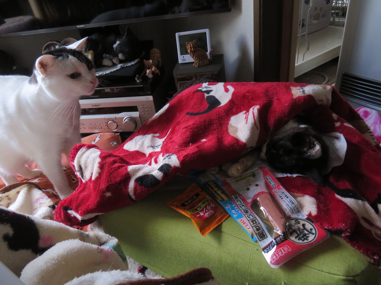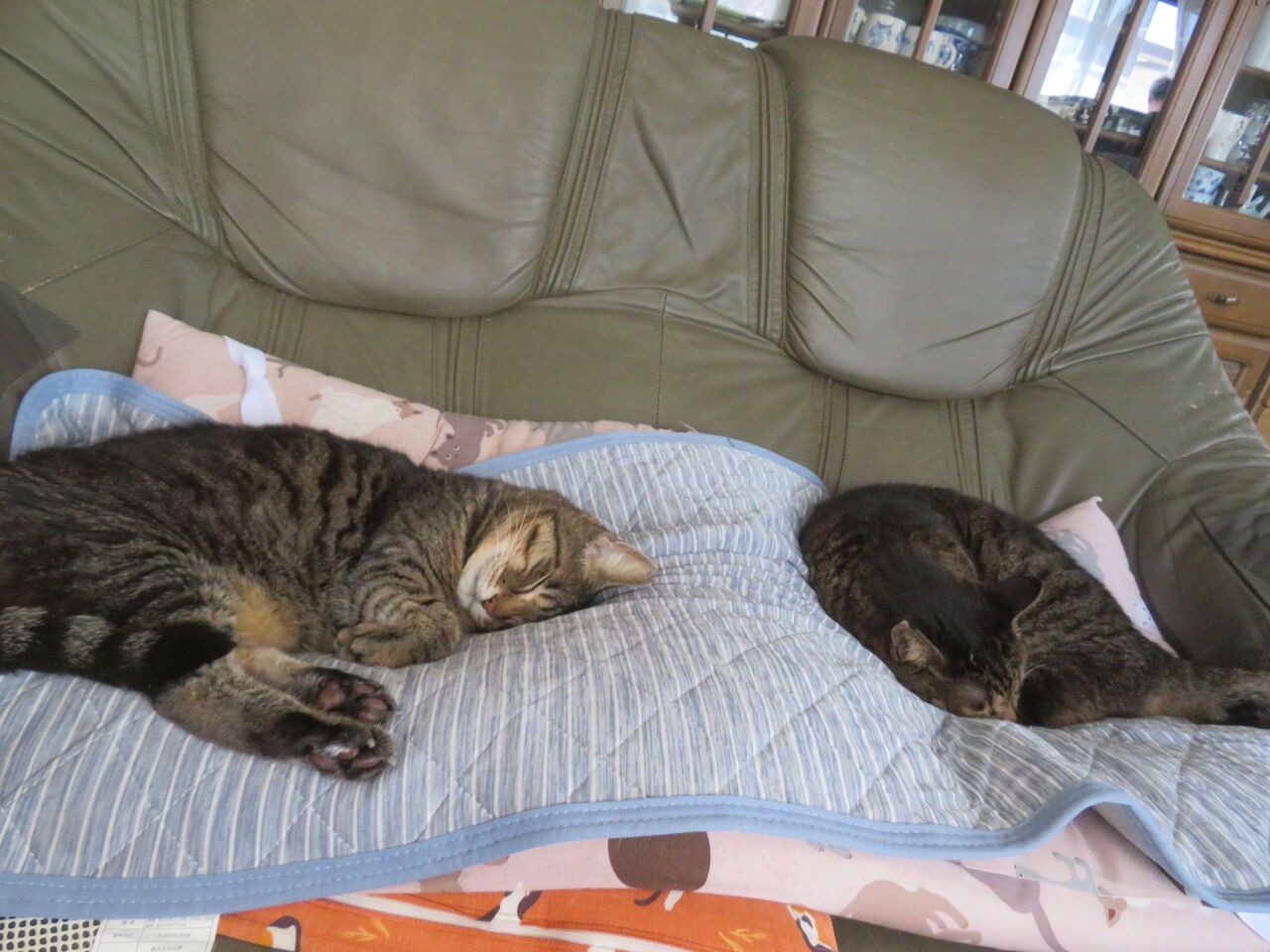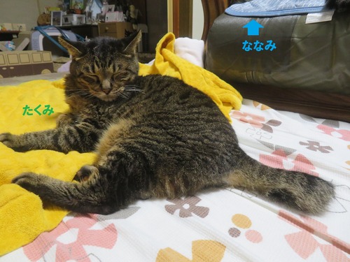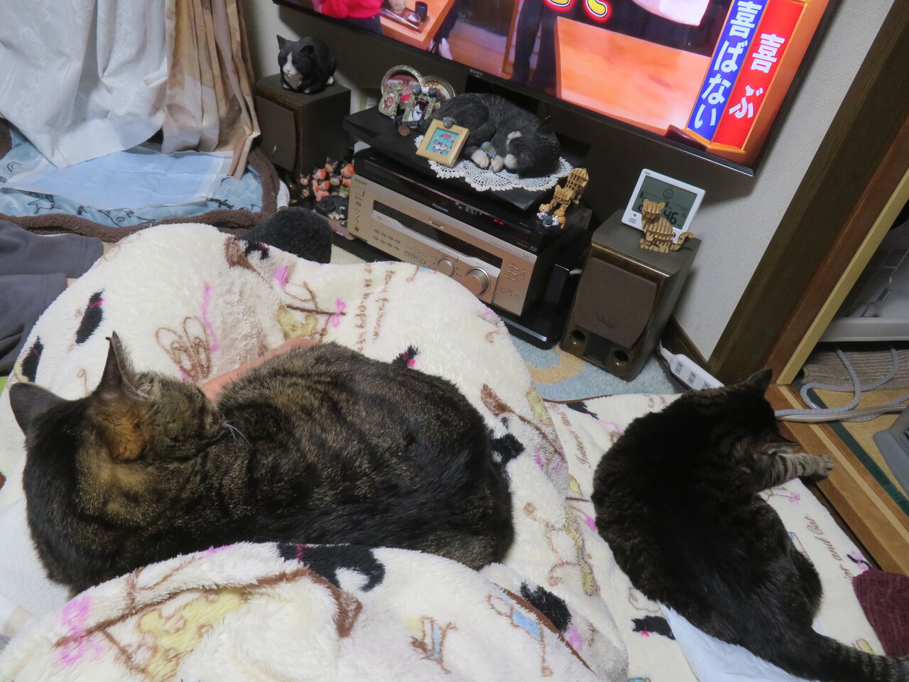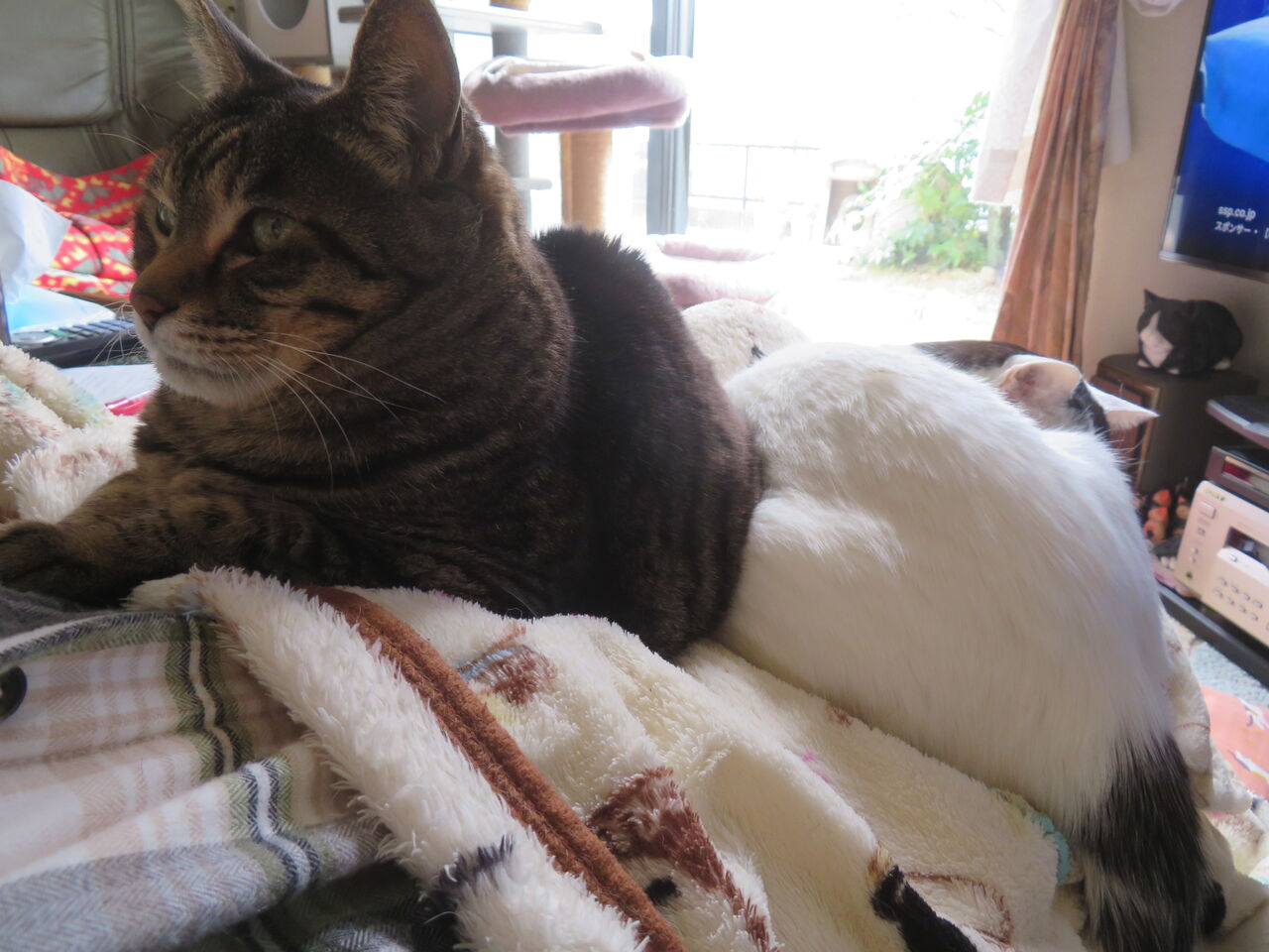 昼前のマッタリタイムには、毛布をかけているお母ちゃんの膝の上に”ななみ”と、その右側には・・・