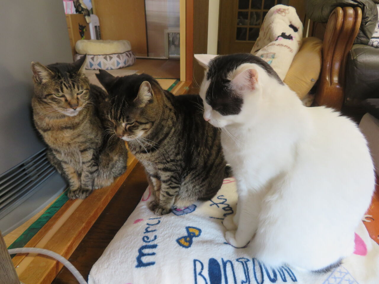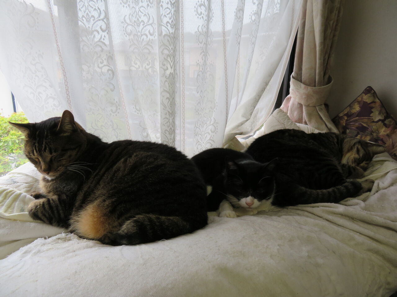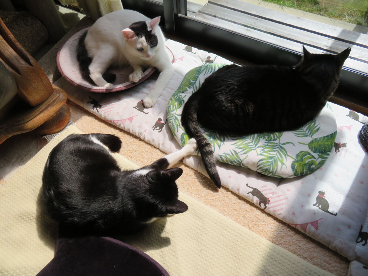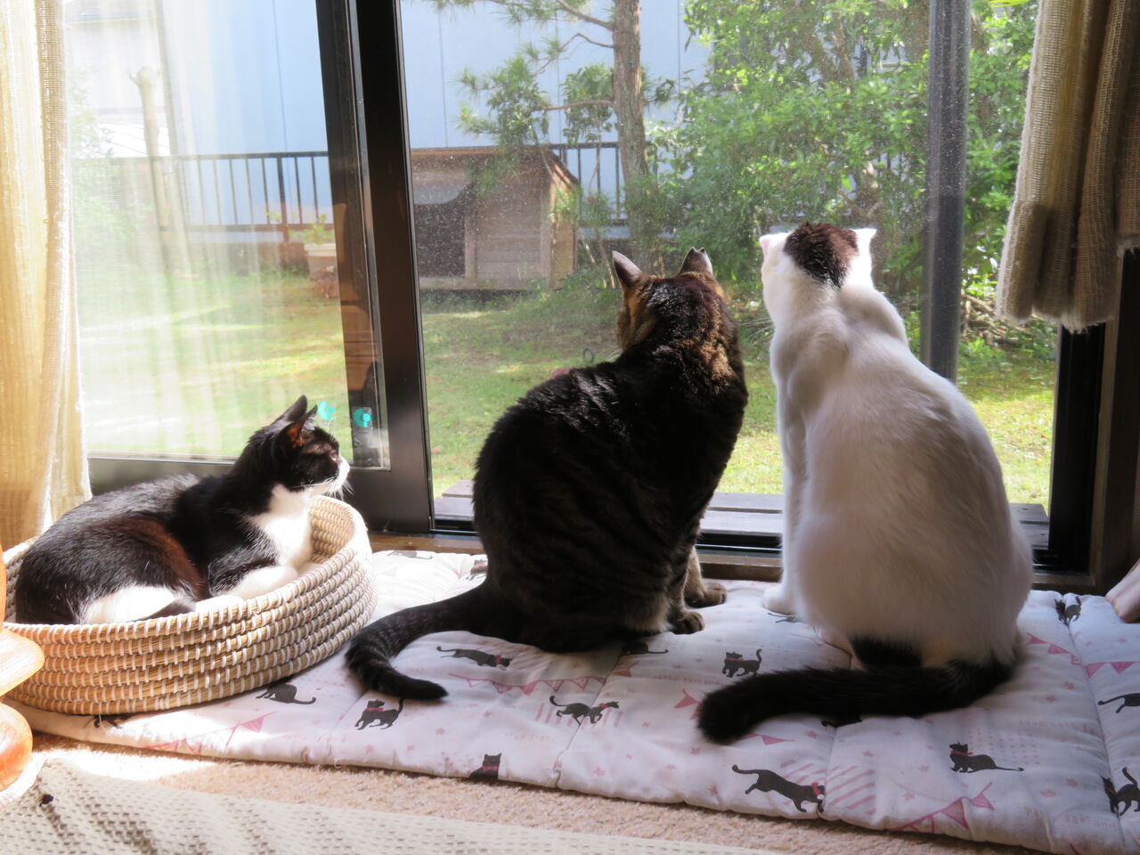 朝、お天気が良く、ポカポカ窓辺にみんニャ揃いました