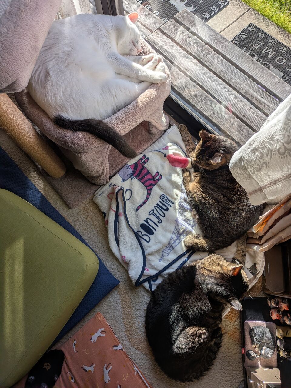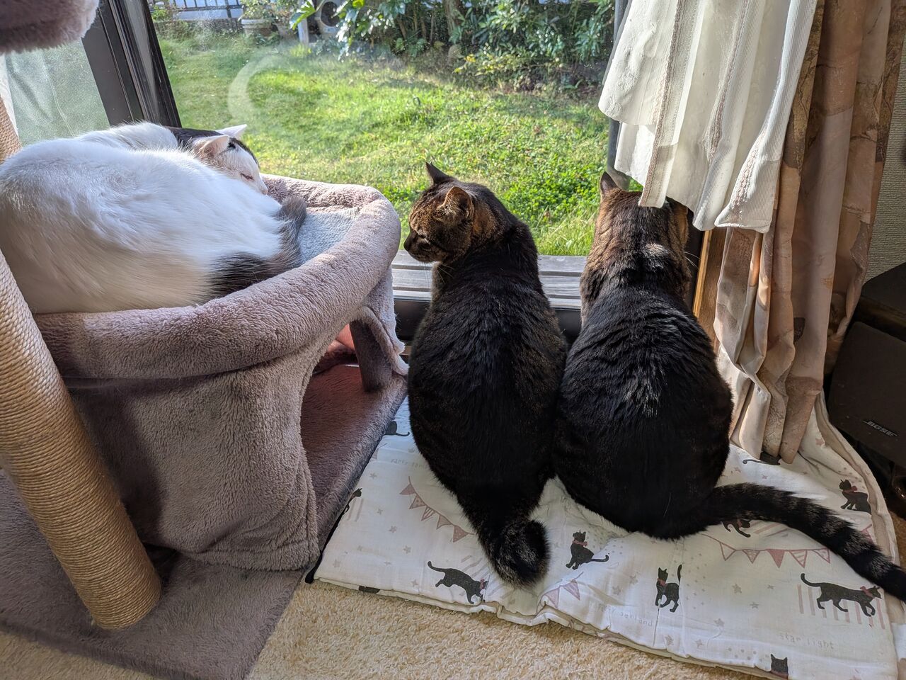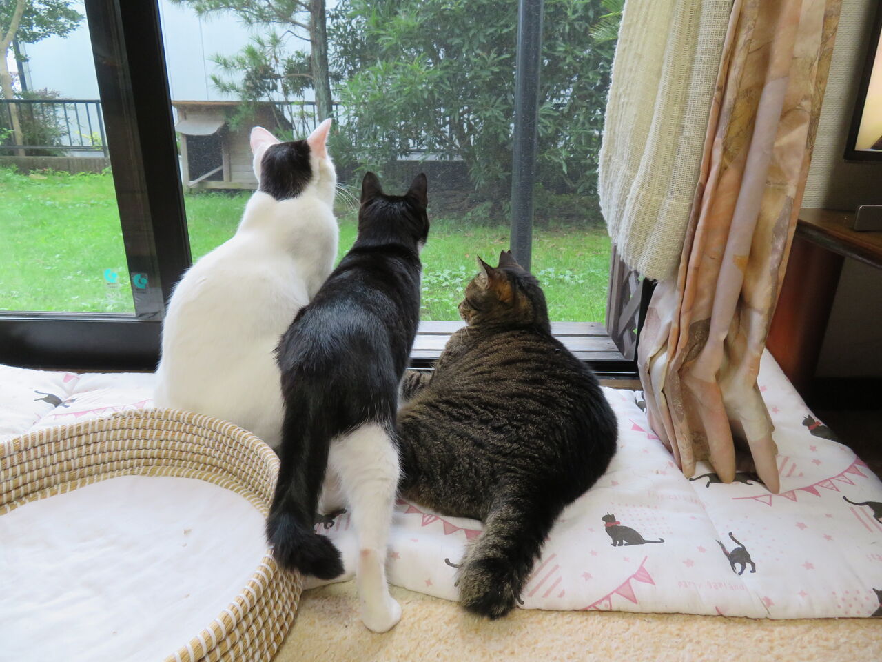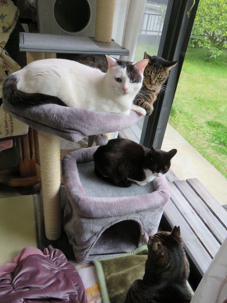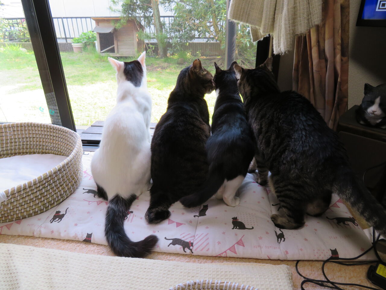 朝、お天気が良く、ポカポカ窓辺にみんニャ揃いました
