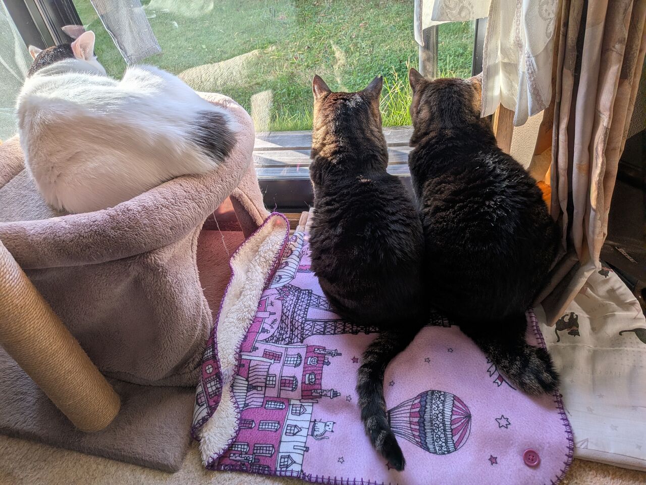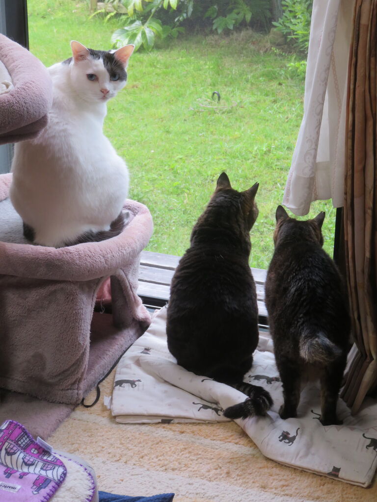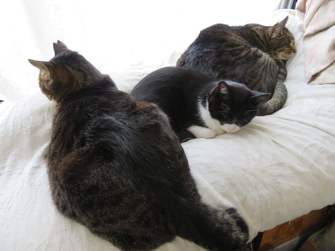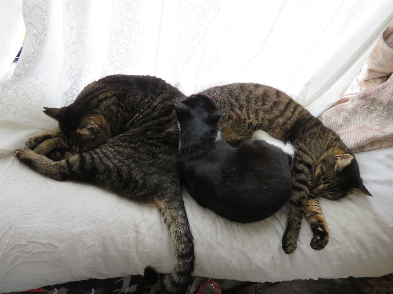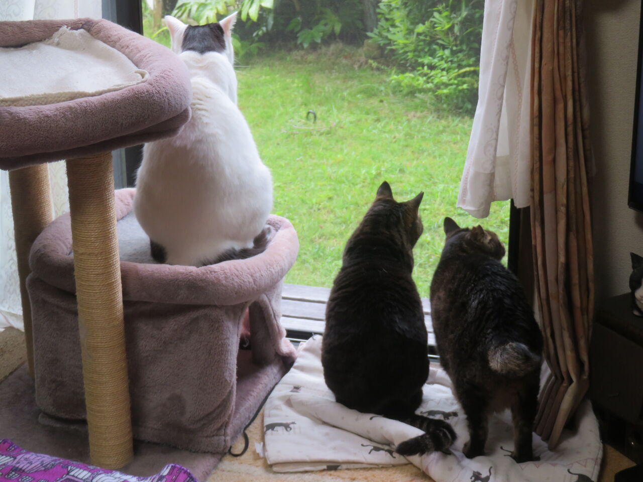 朝、お天気が良く、ポカポカ窓辺にみんニャ揃いました