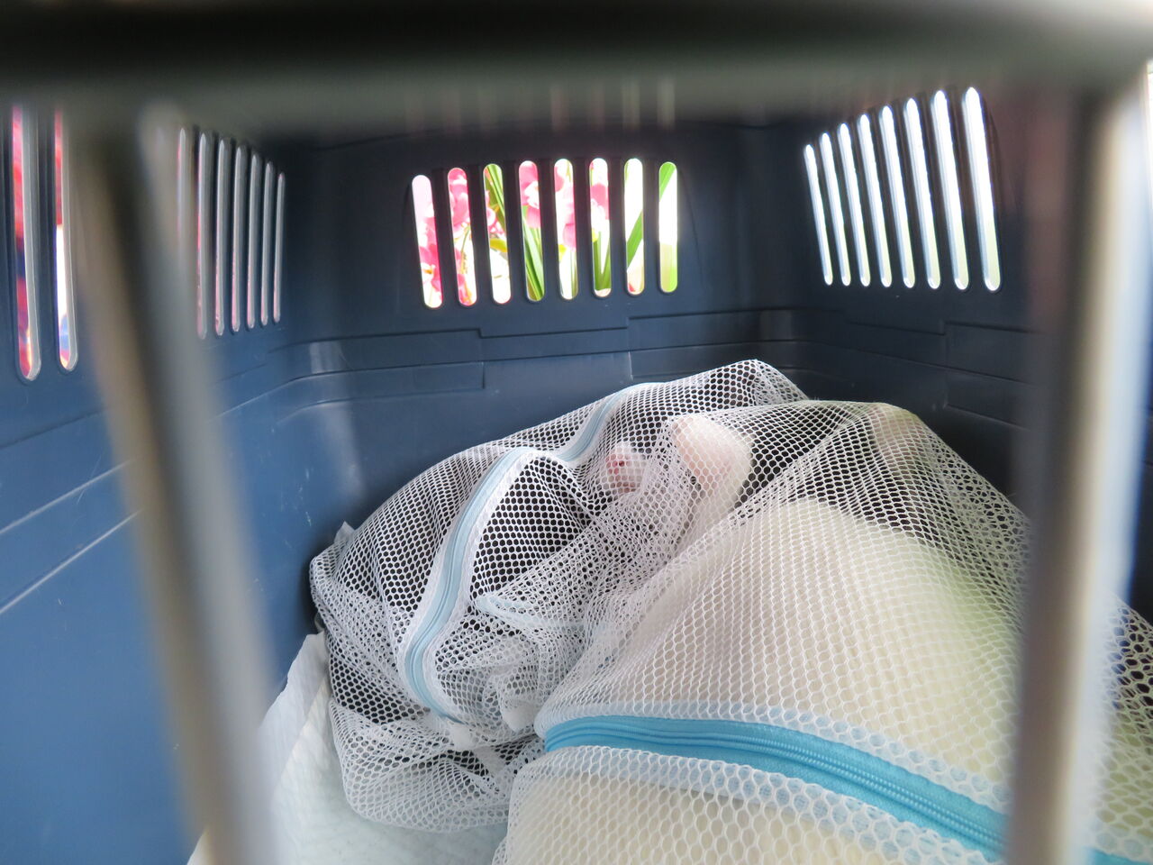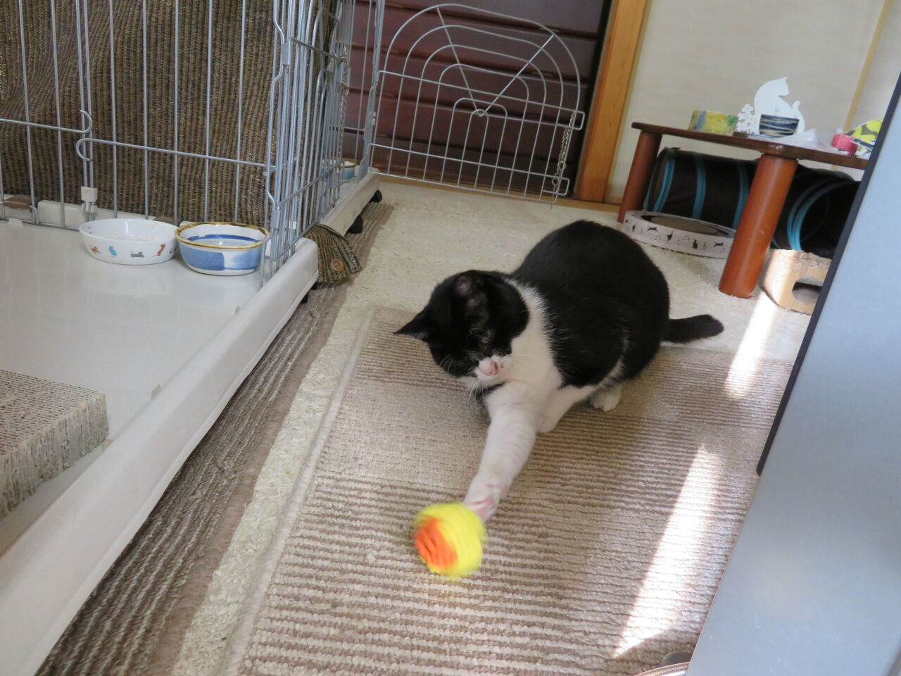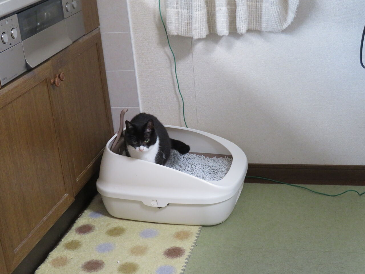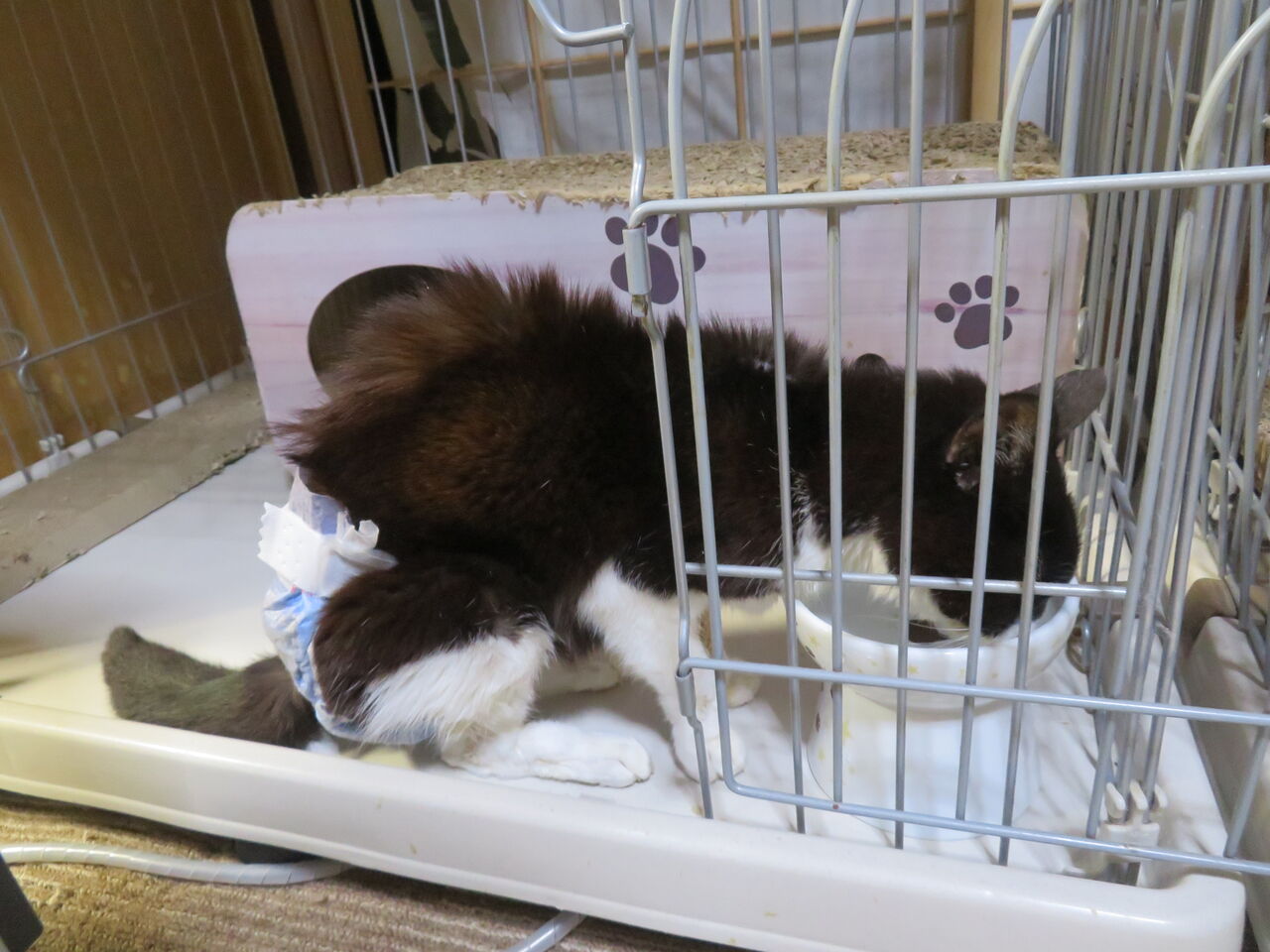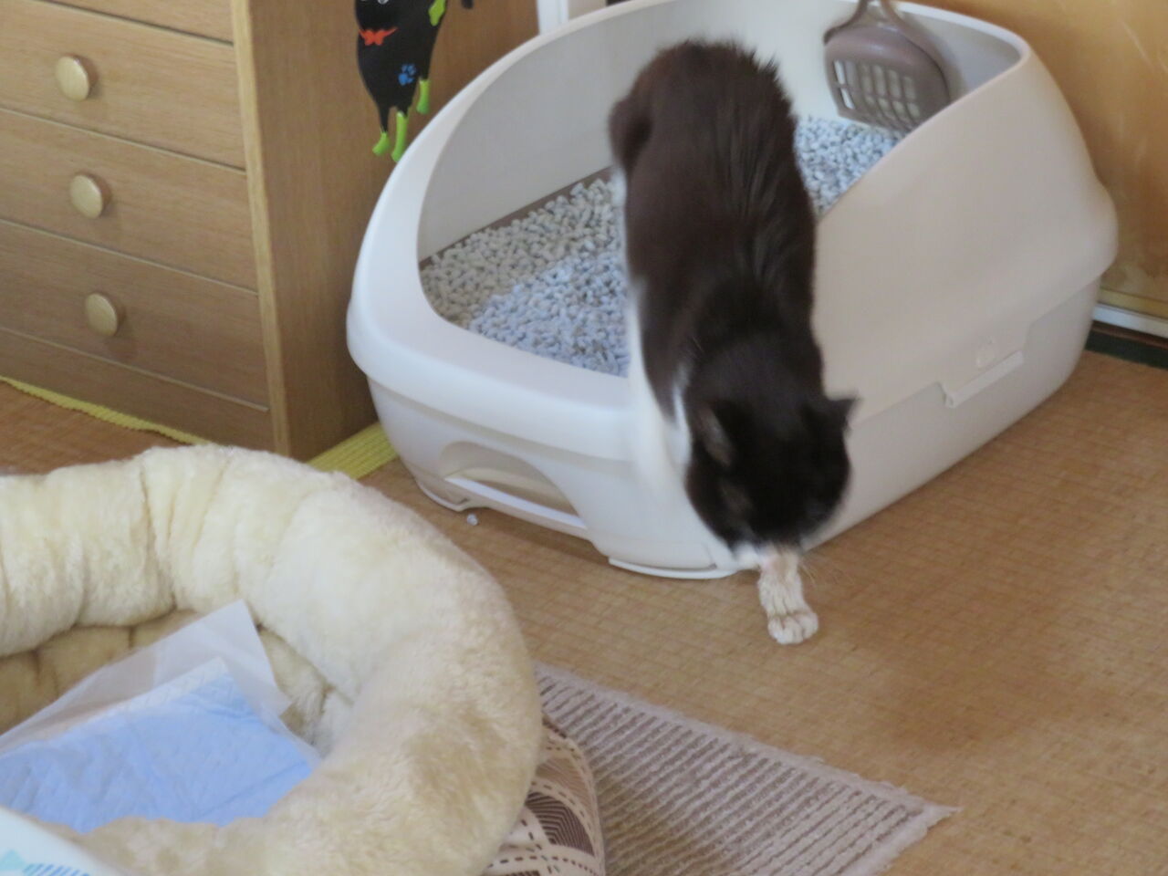 ”うみ”がキューブベットから出てトイレへ(おむつをしていますが)