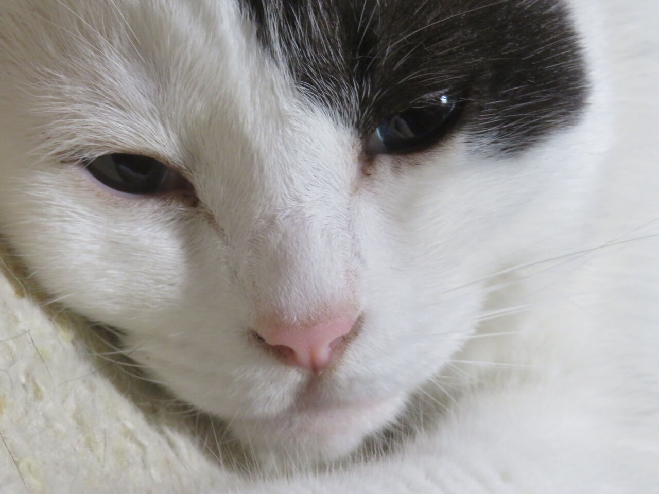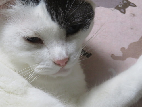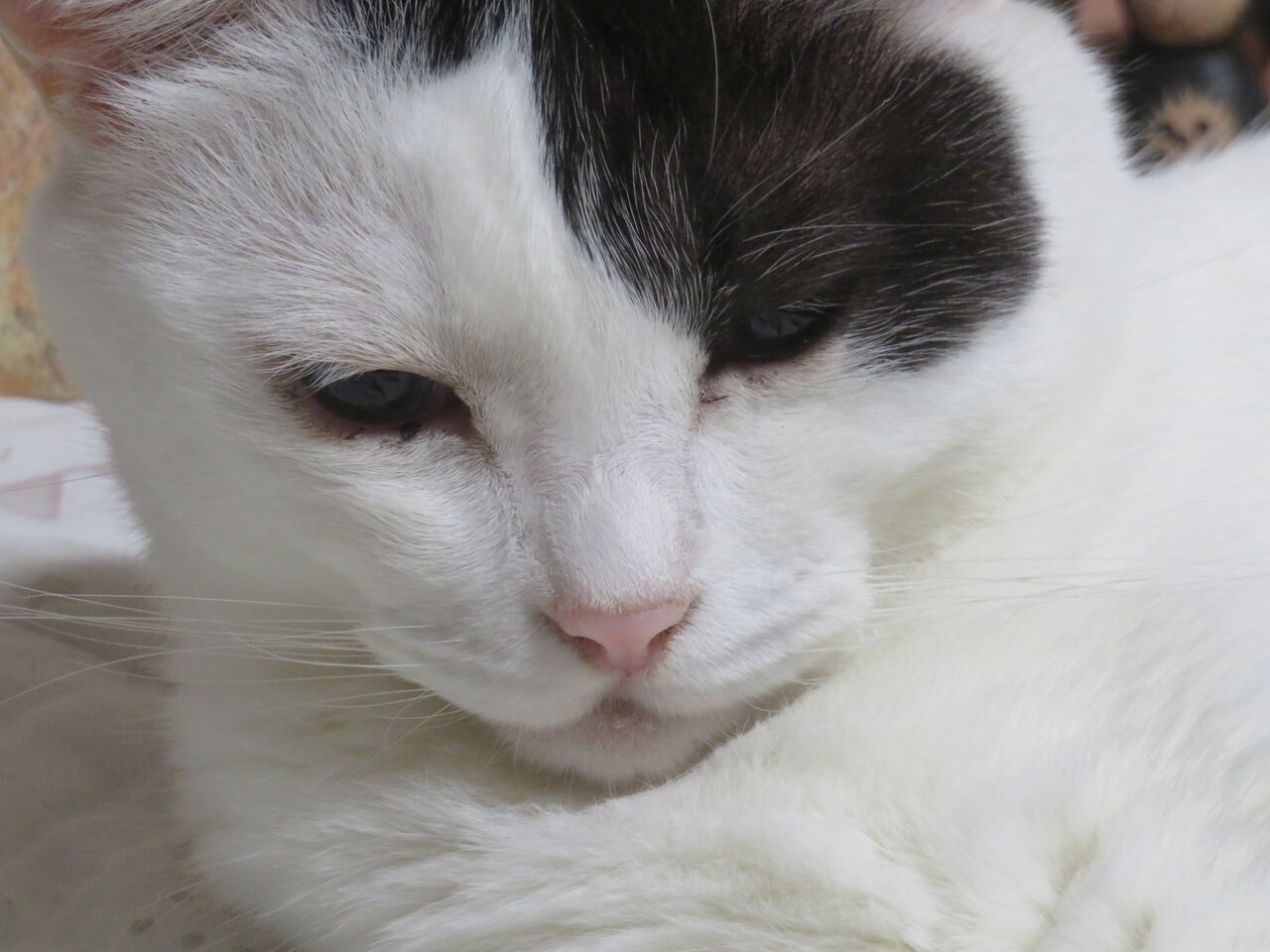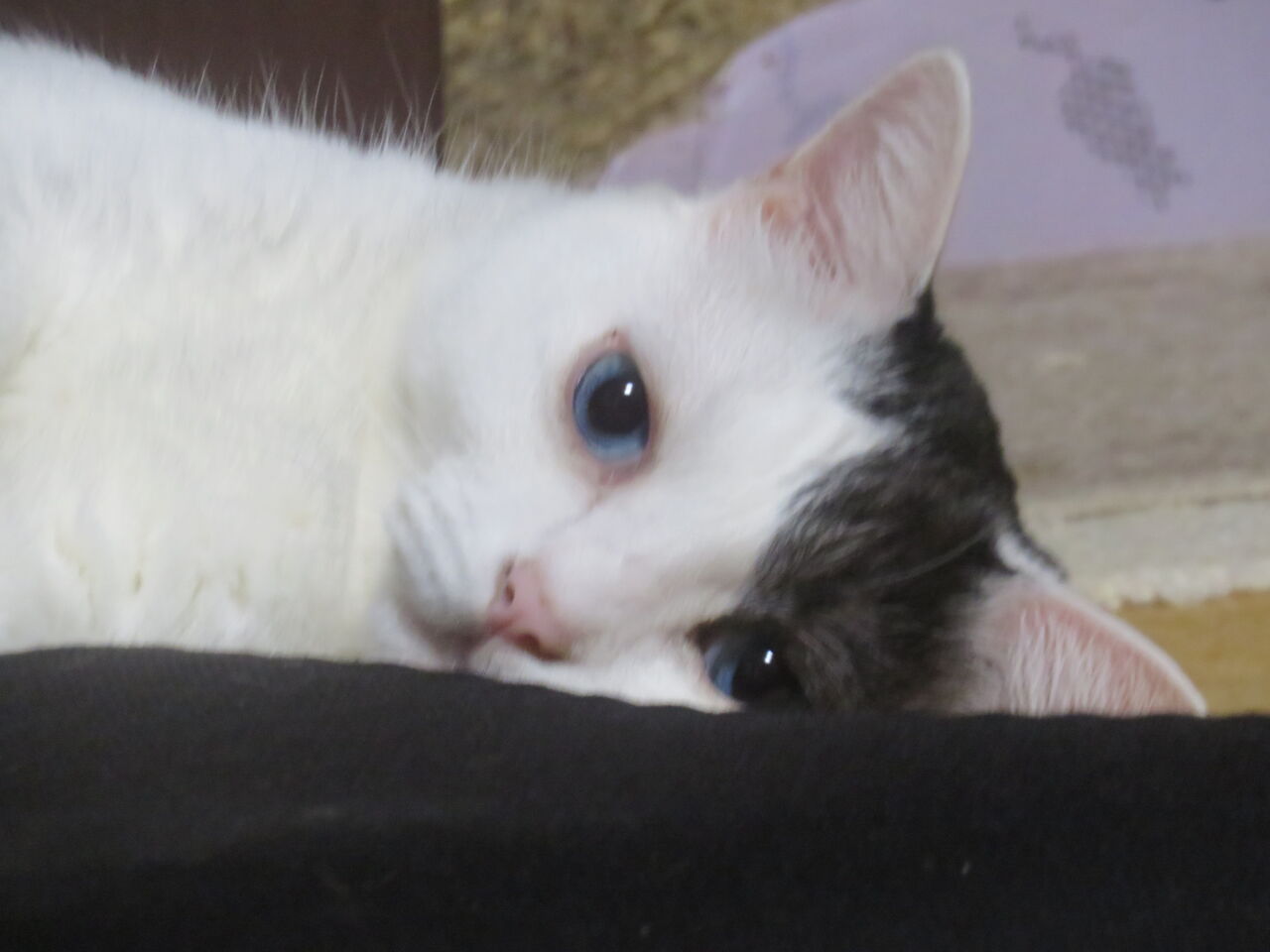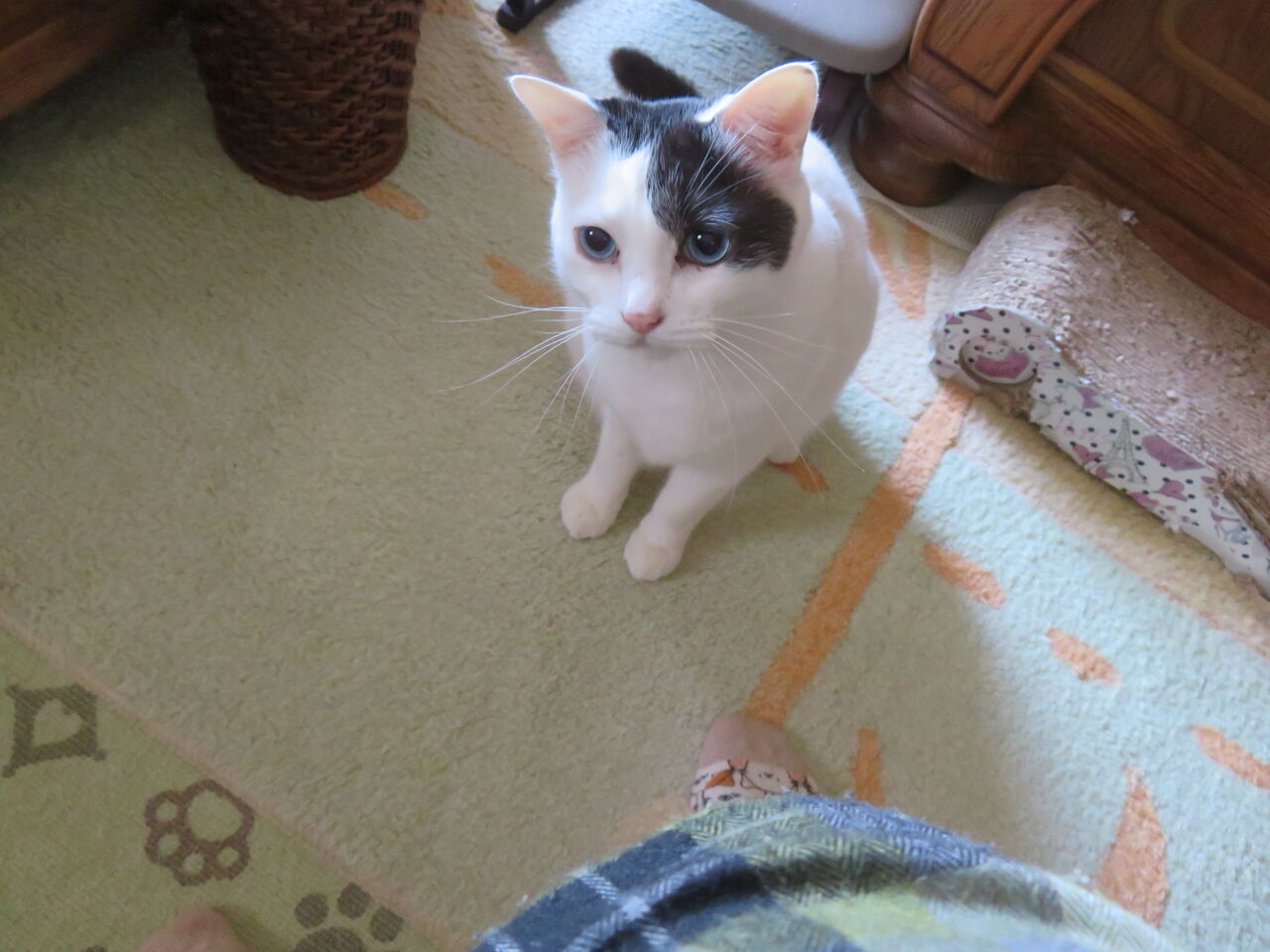 お母ちゃん嬉しくて、”かい”を撫でていると、こんな可愛いお顔で「ニャに?〜」ってカメラ目線