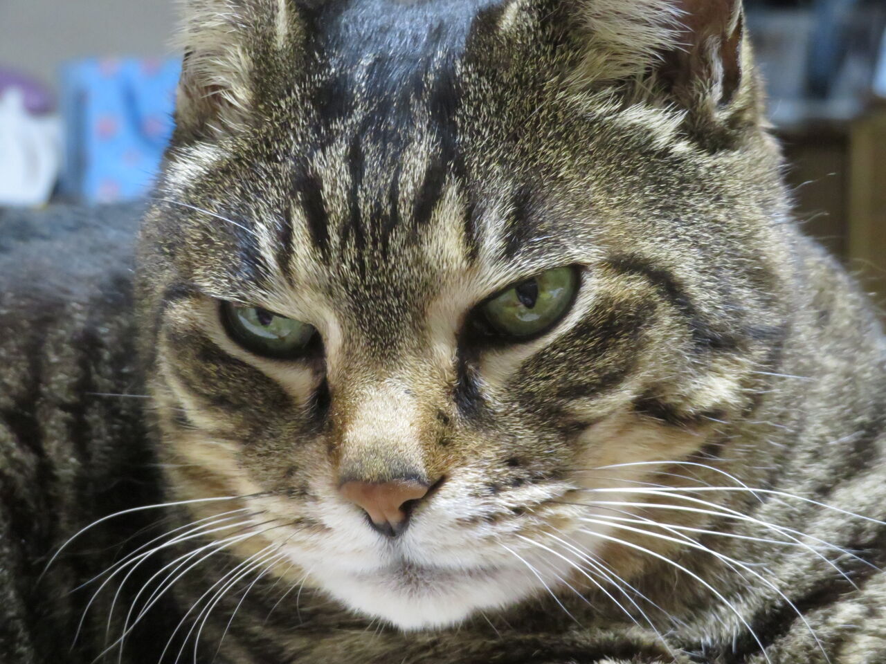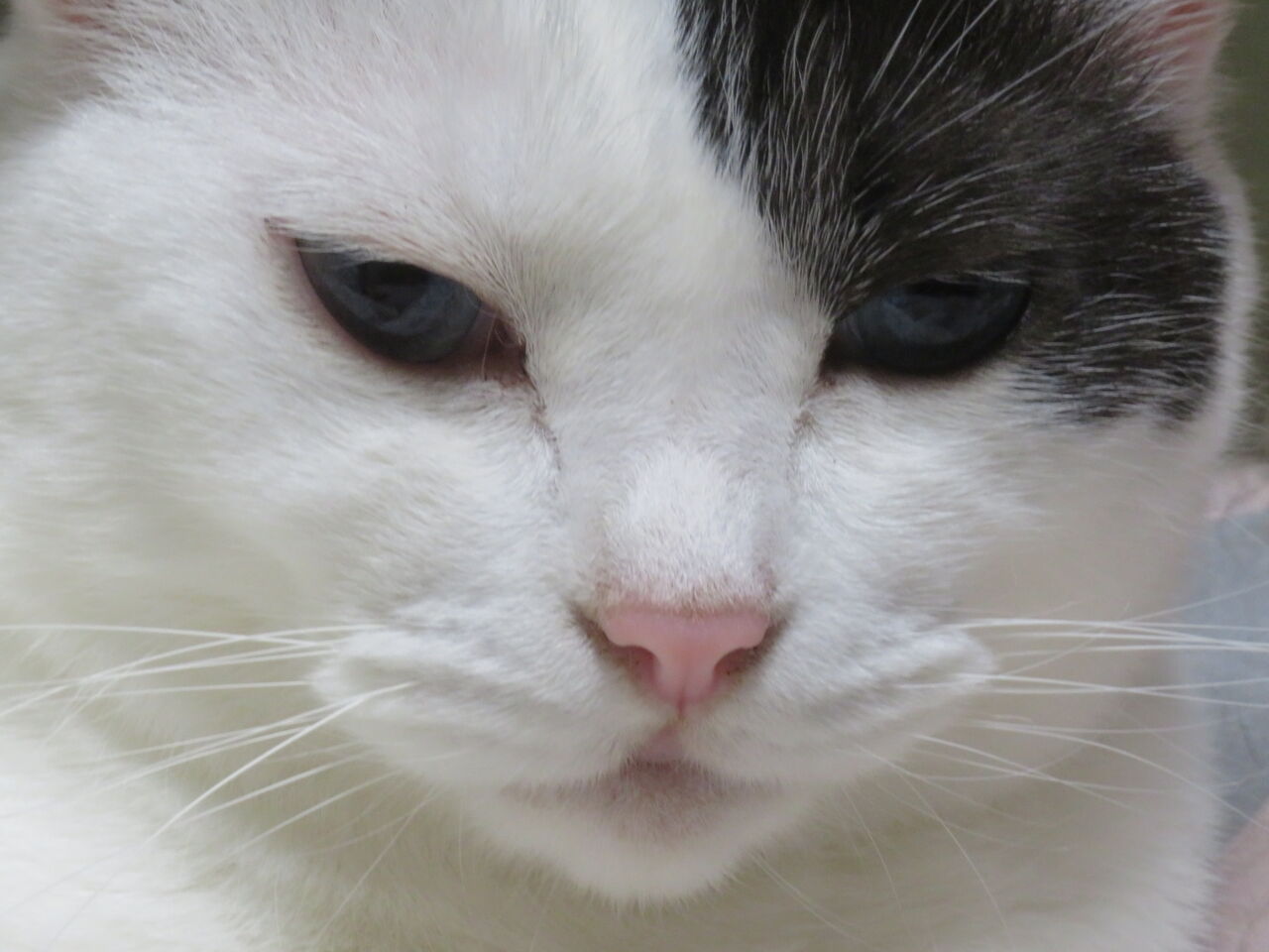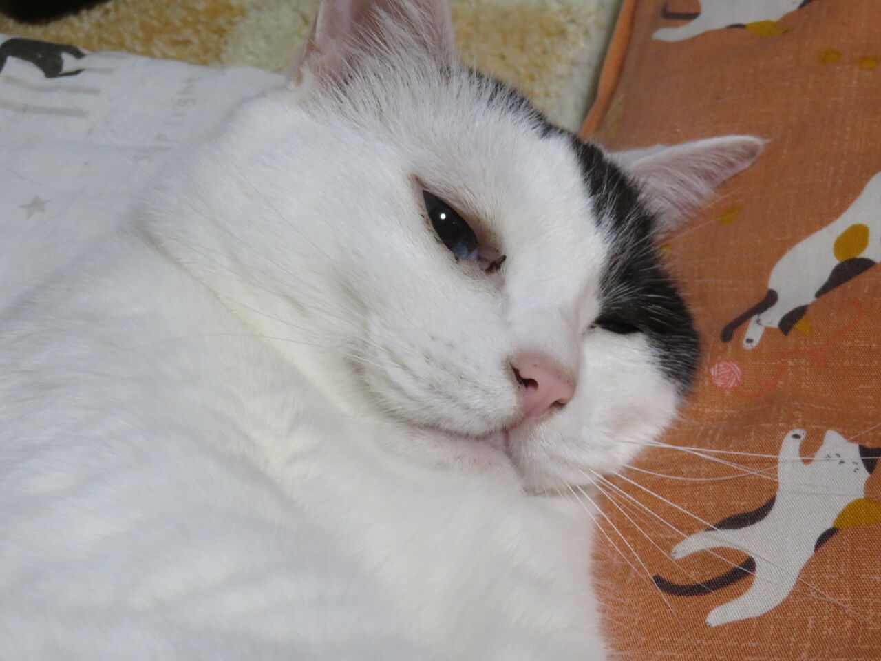 お母ちゃん嬉しくて、”かい”を撫でていると、こんな可愛いお顔で「ニャに?〜」ってカメラ目線