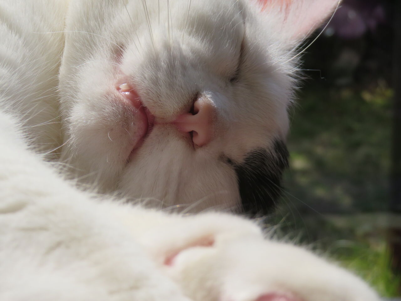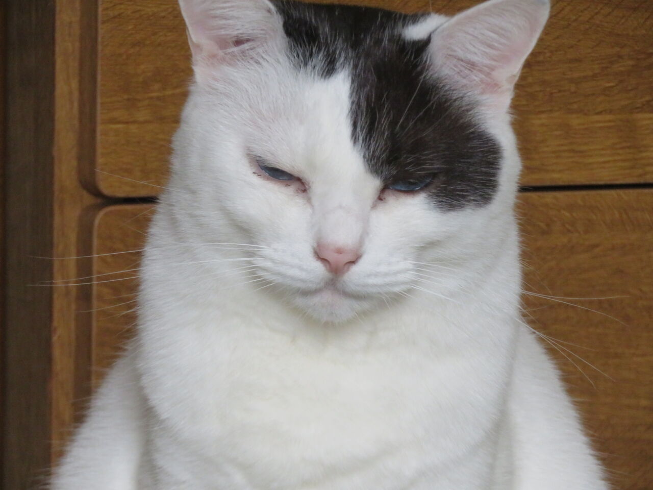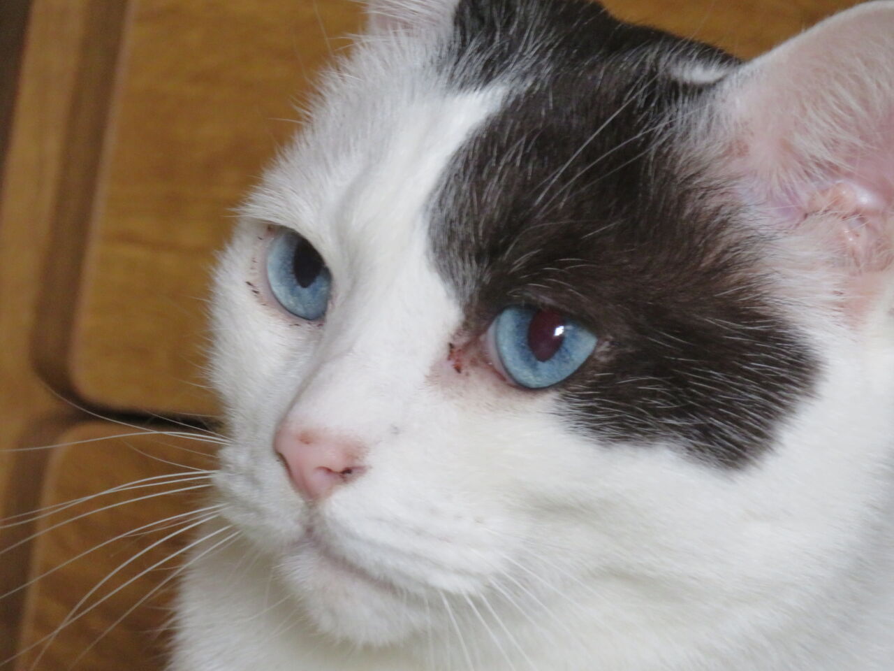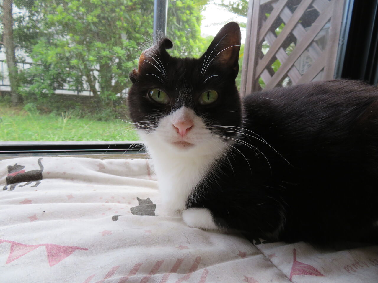 お母ちゃん嬉しくて、”かい”を撫でていると、こんな可愛いお顔で「ニャに?〜」ってカメラ目線