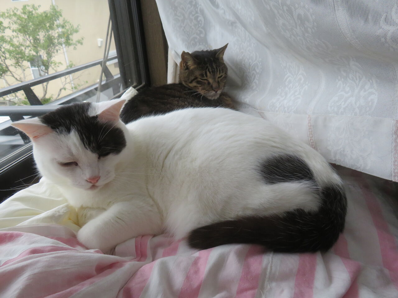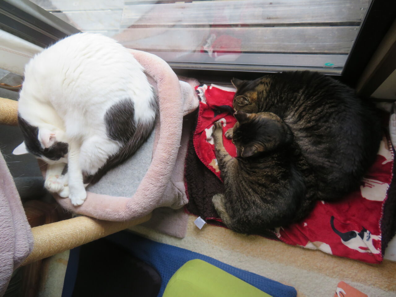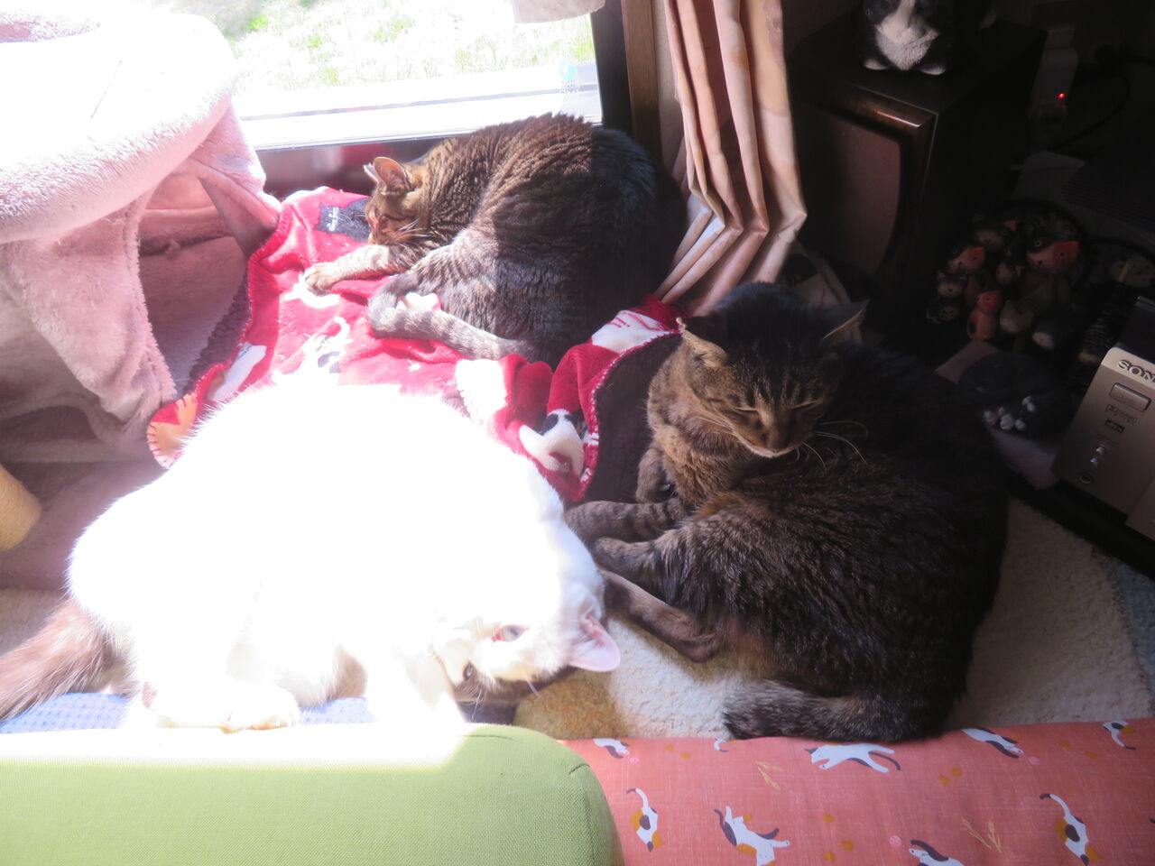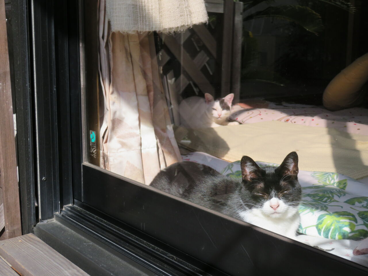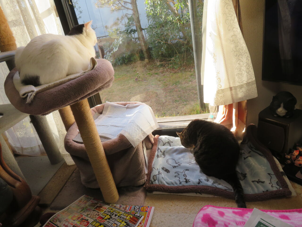 この日の朝も窓辺はぽかぽか暖かくて、みんニャ窓辺でマッタリです