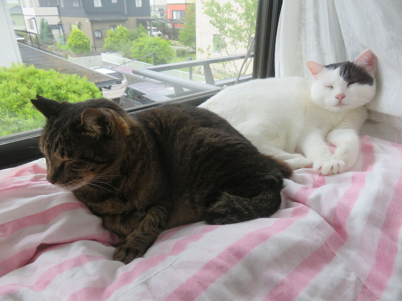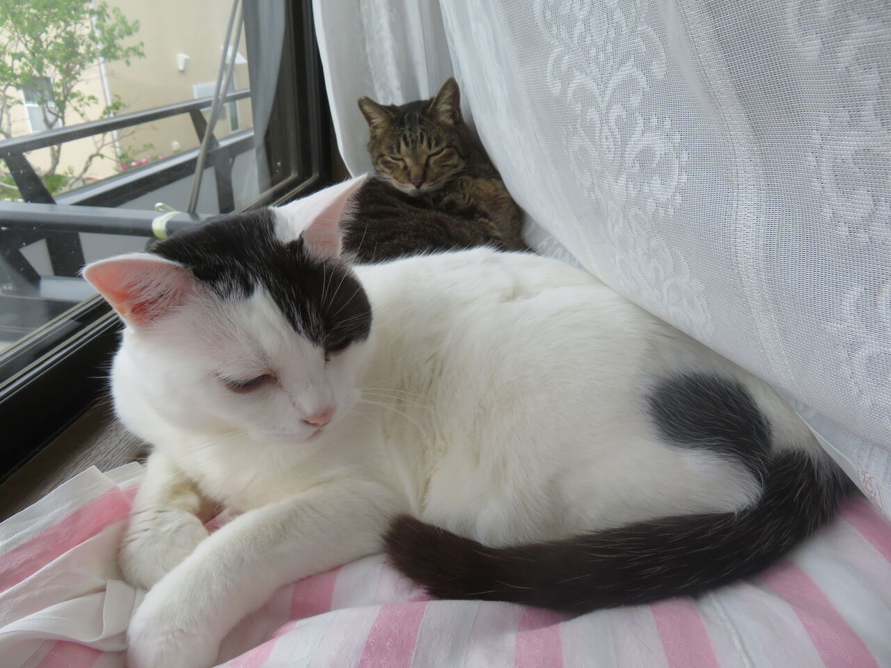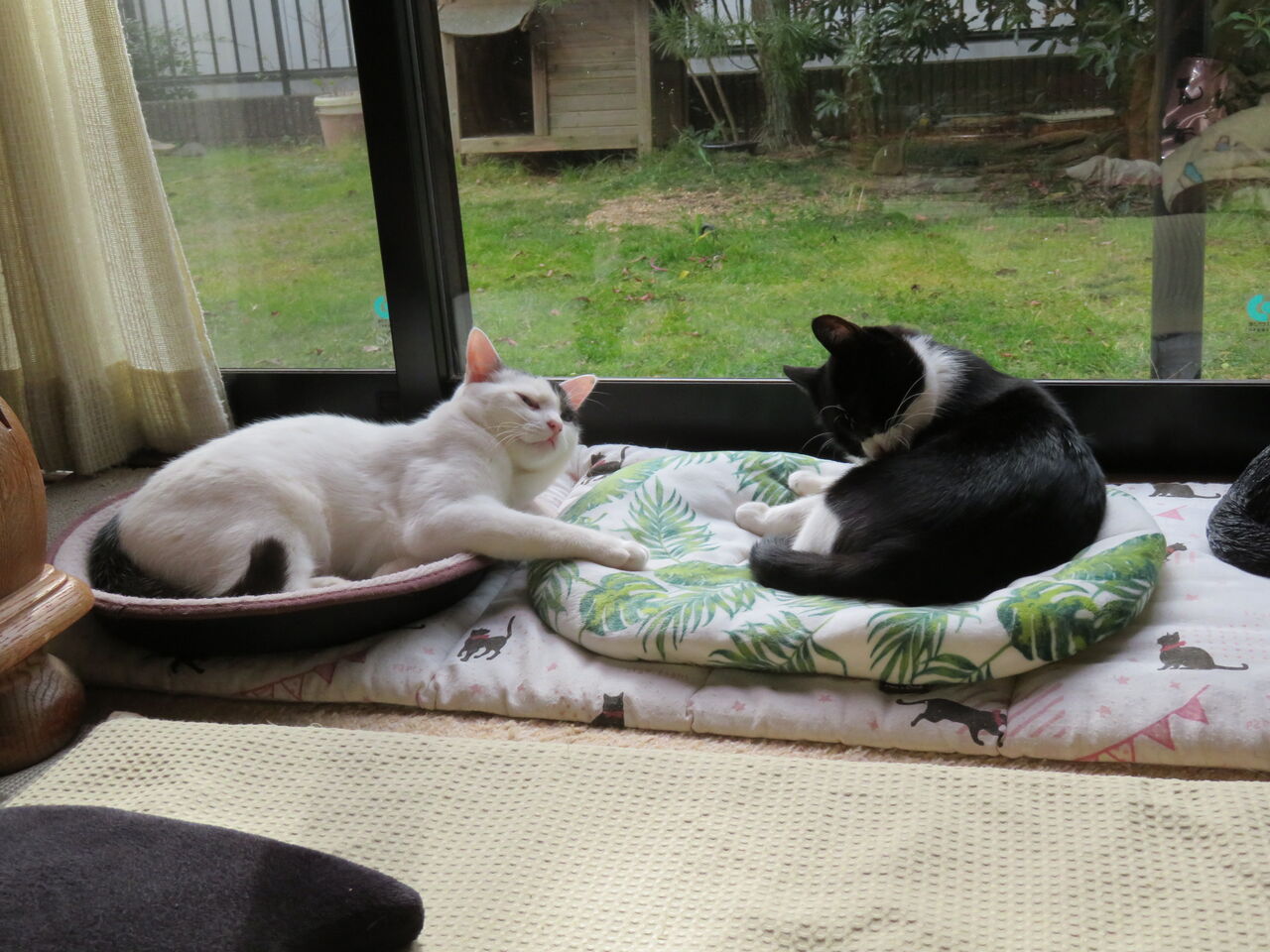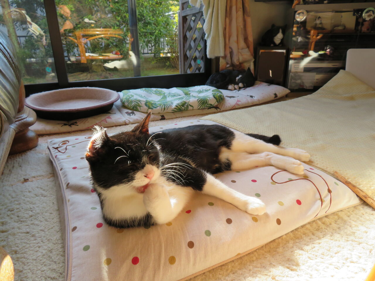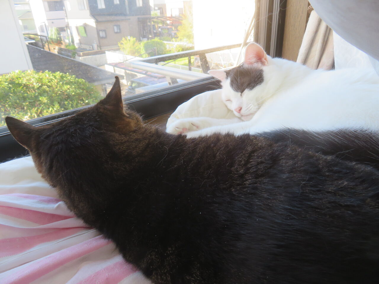 この日の朝も窓辺はぽかぽか暖かくて、みんニャ窓辺でマッタリです
