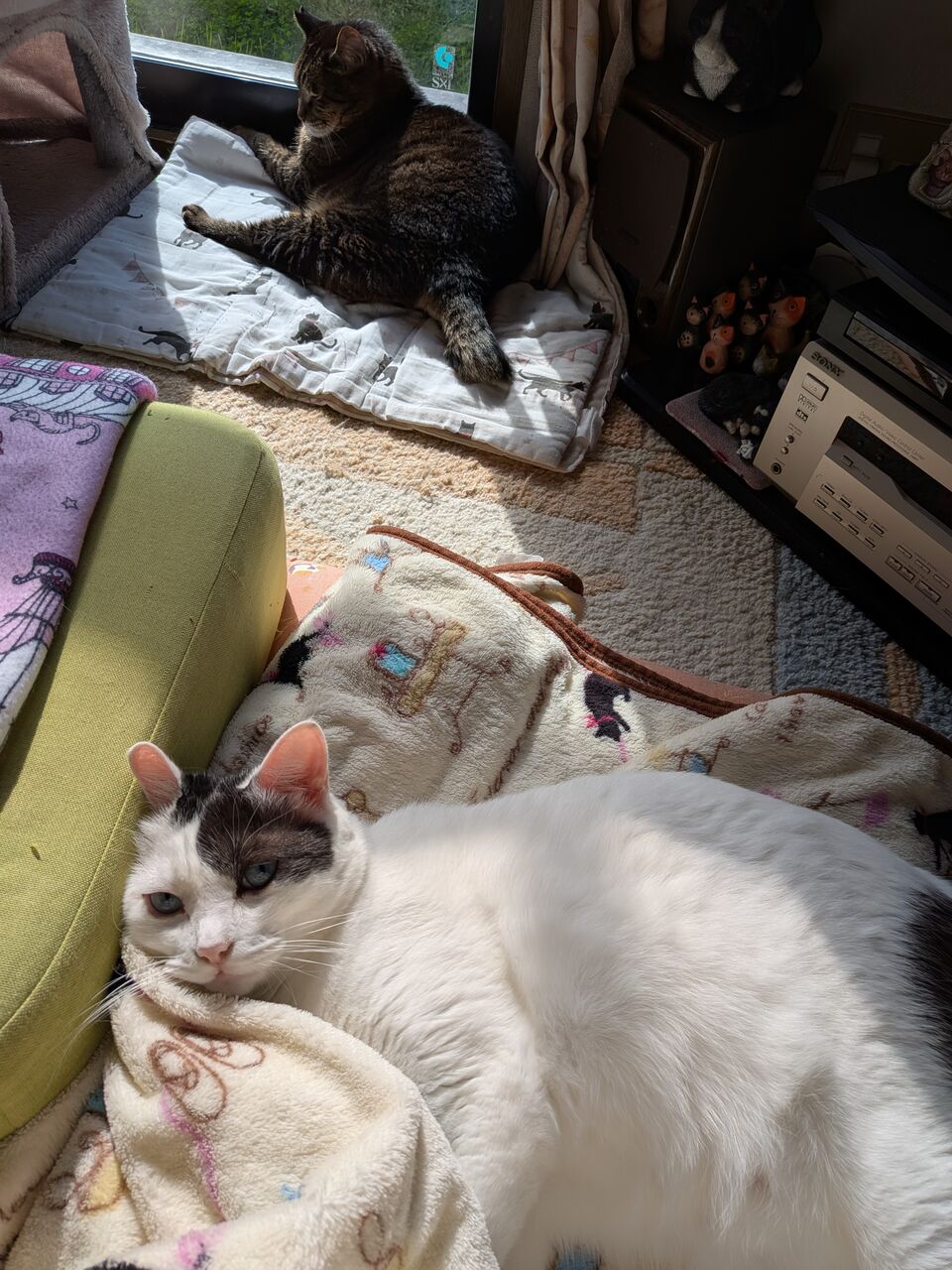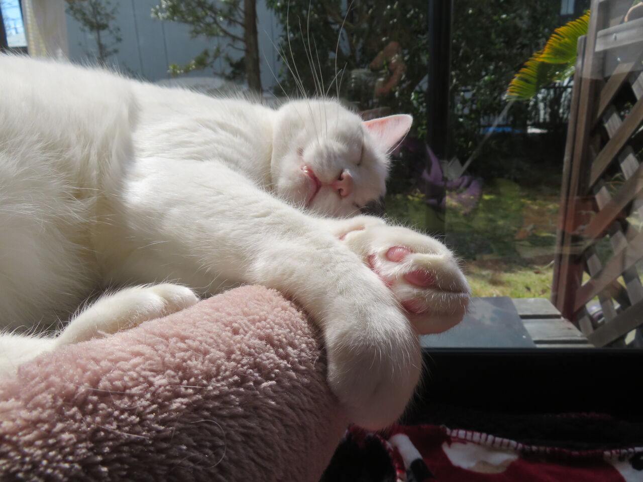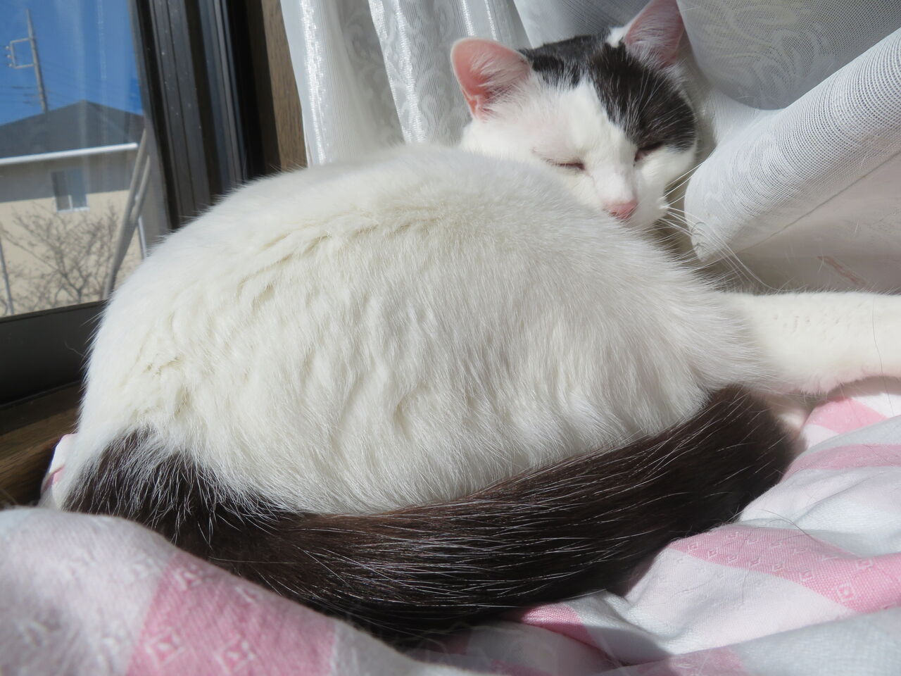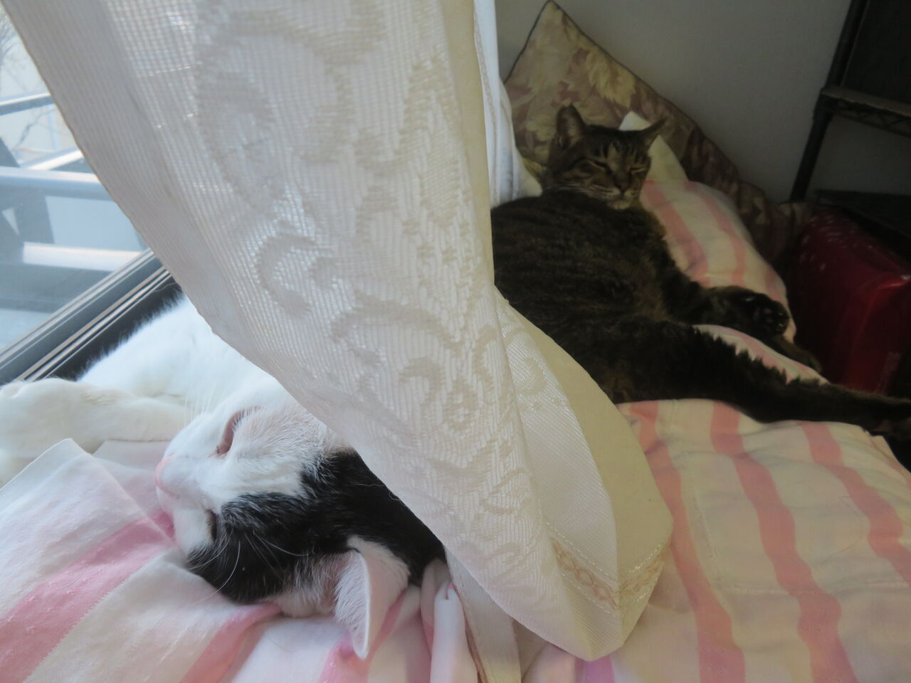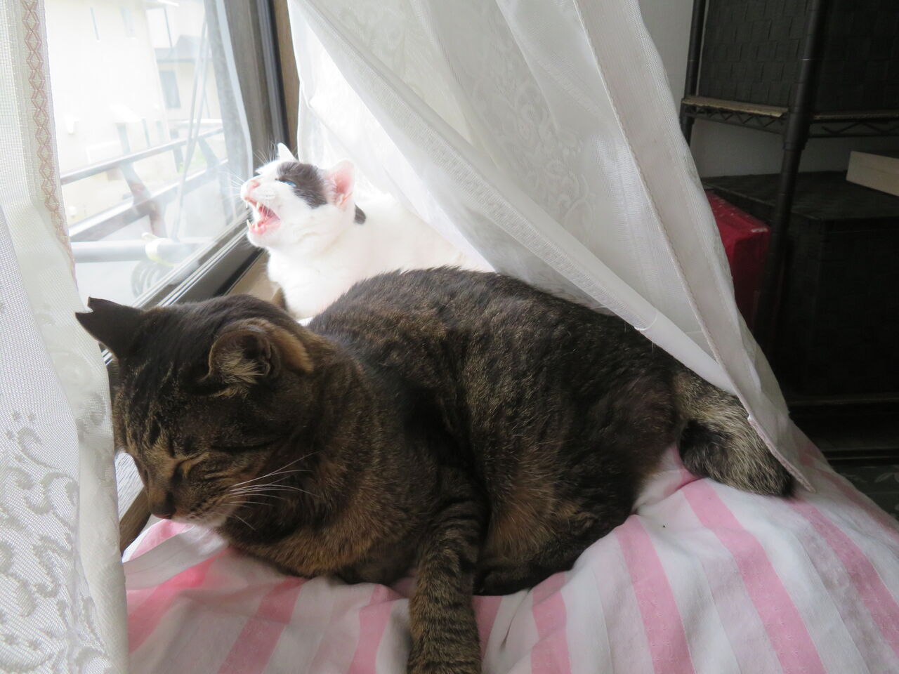 この日の朝も窓辺はぽかぽか暖かくて、みんニャ窓辺でマッタリです