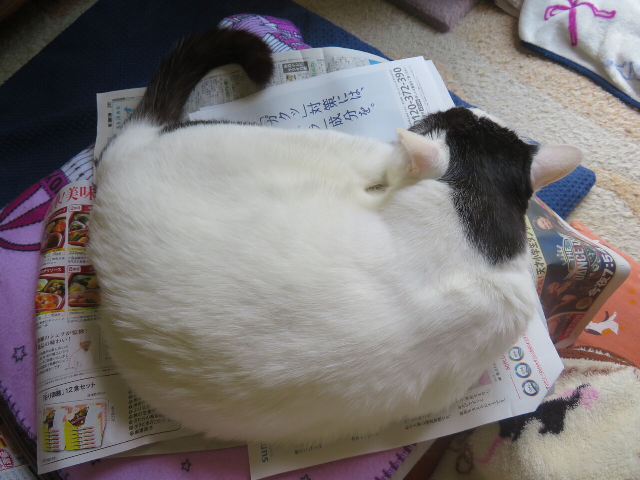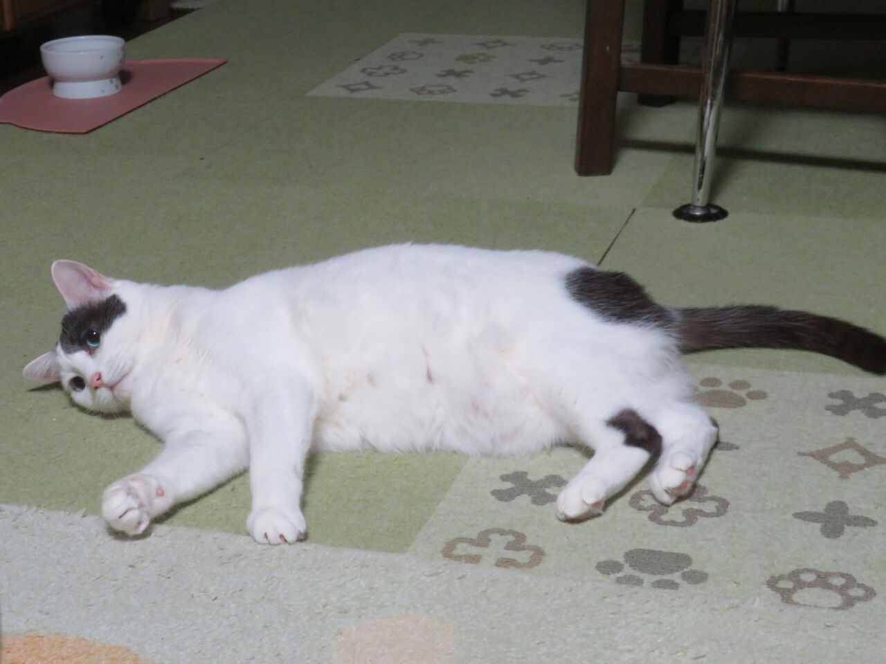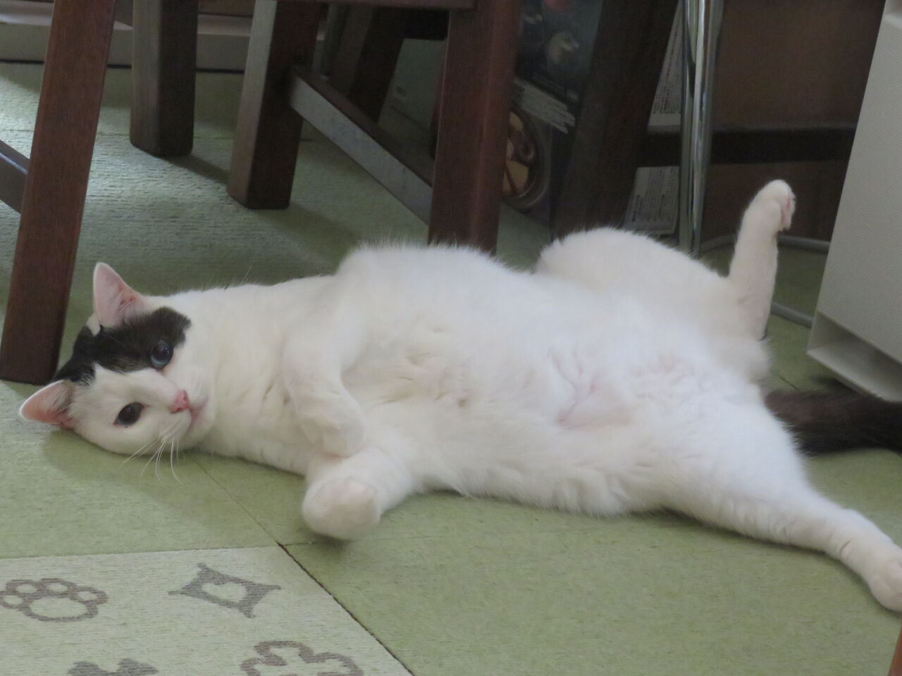 お昼のおやつを食べた後、”たくみ”はテーブルの上にチンマリ。