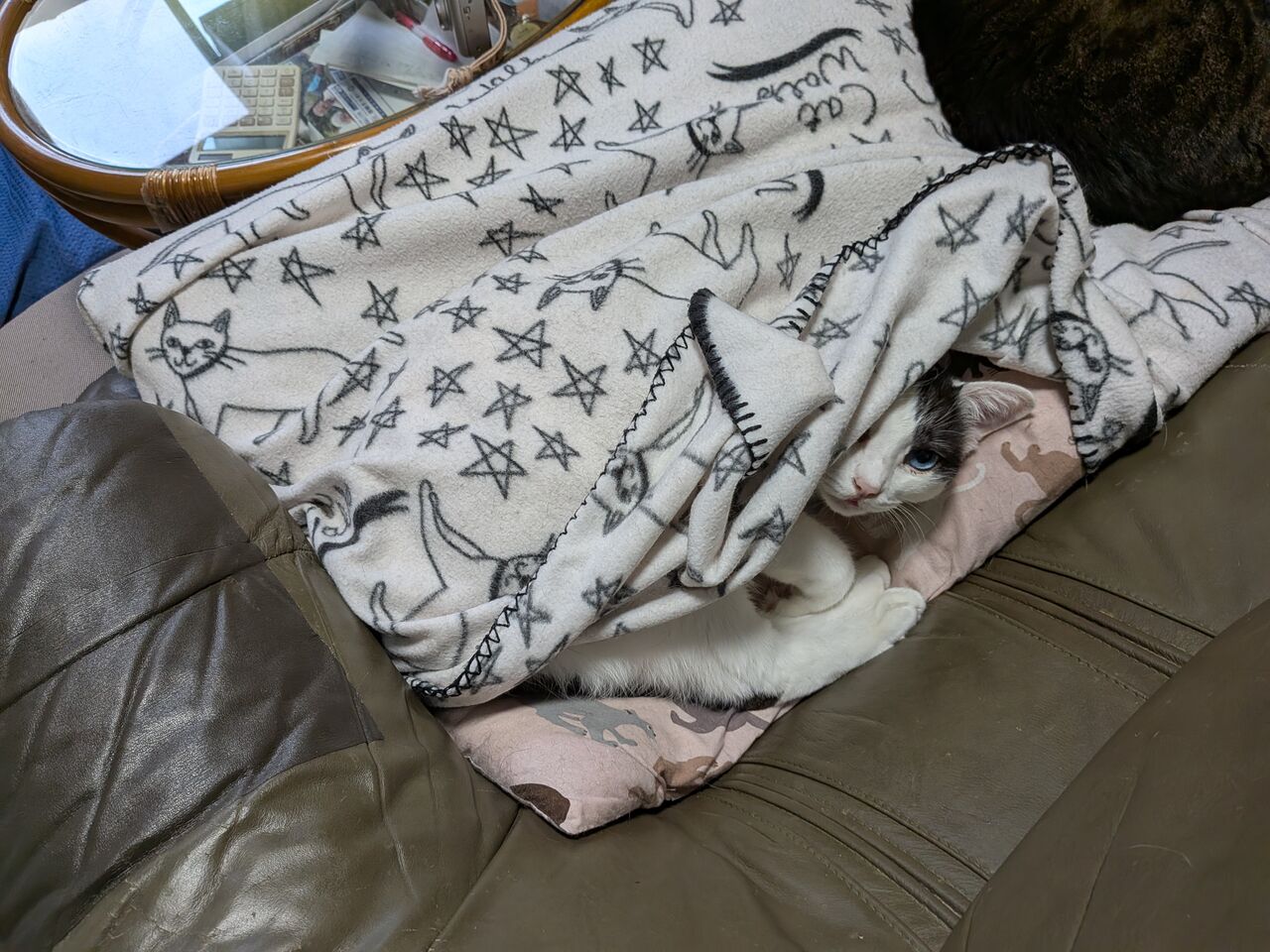 ”かい”も兄ちゃん達が寝て居る長ソファの毛布の下に潜りグースーピー