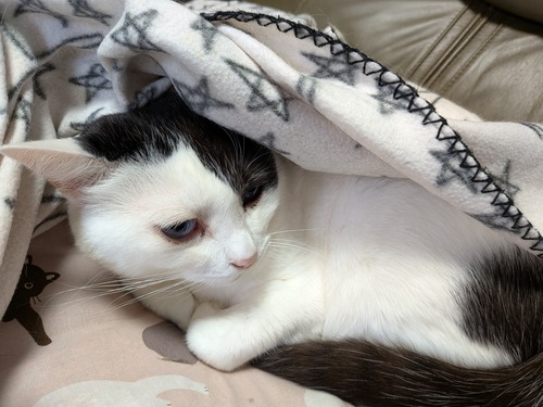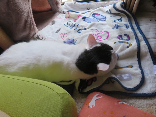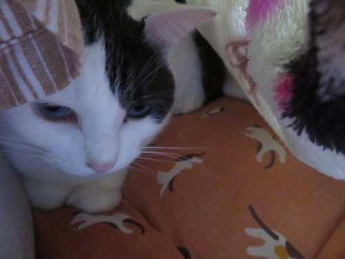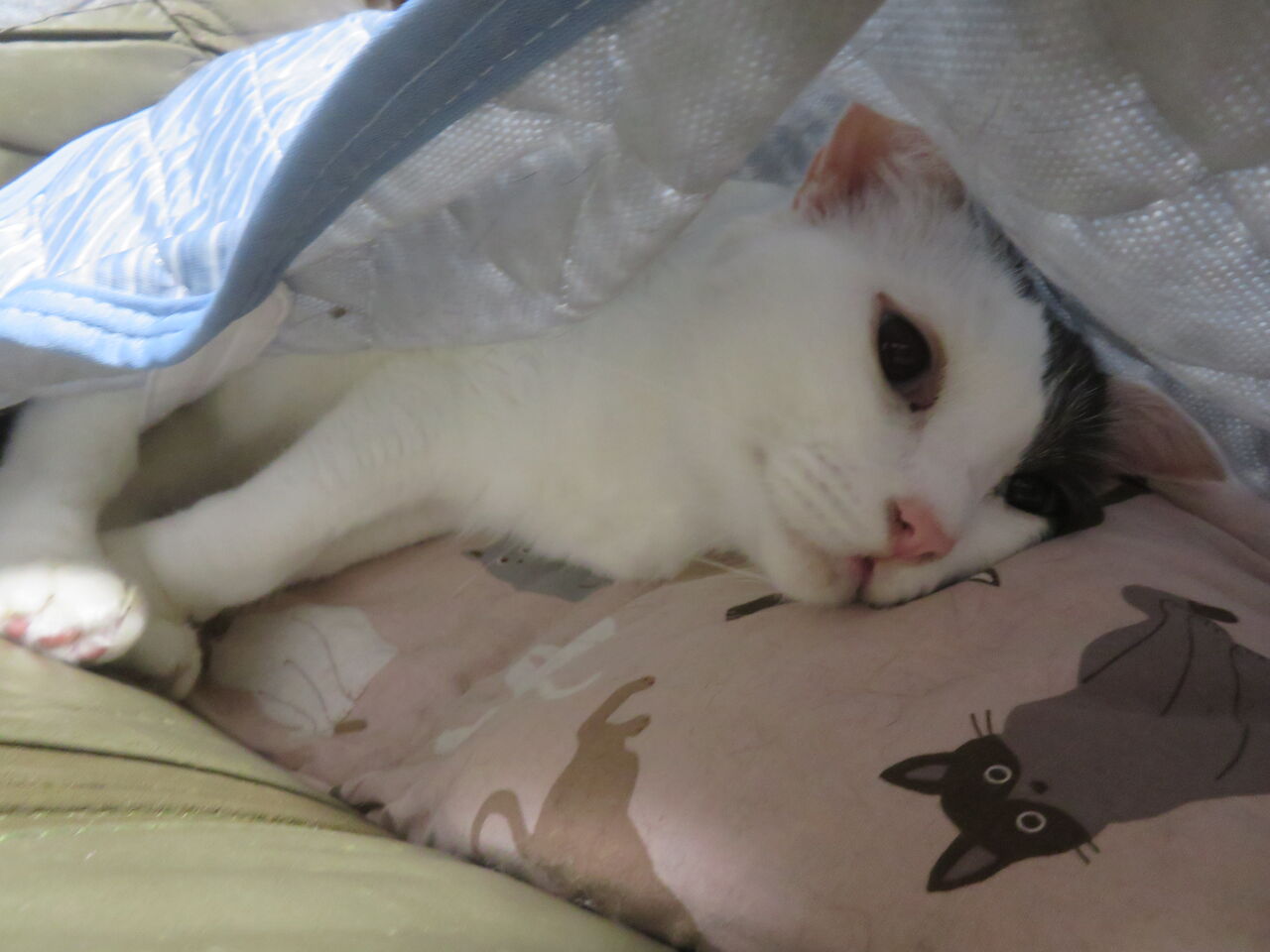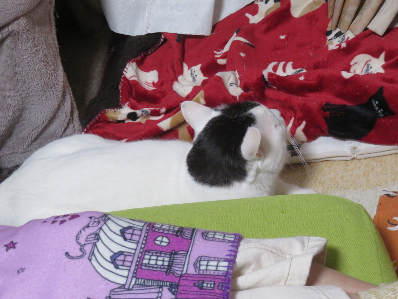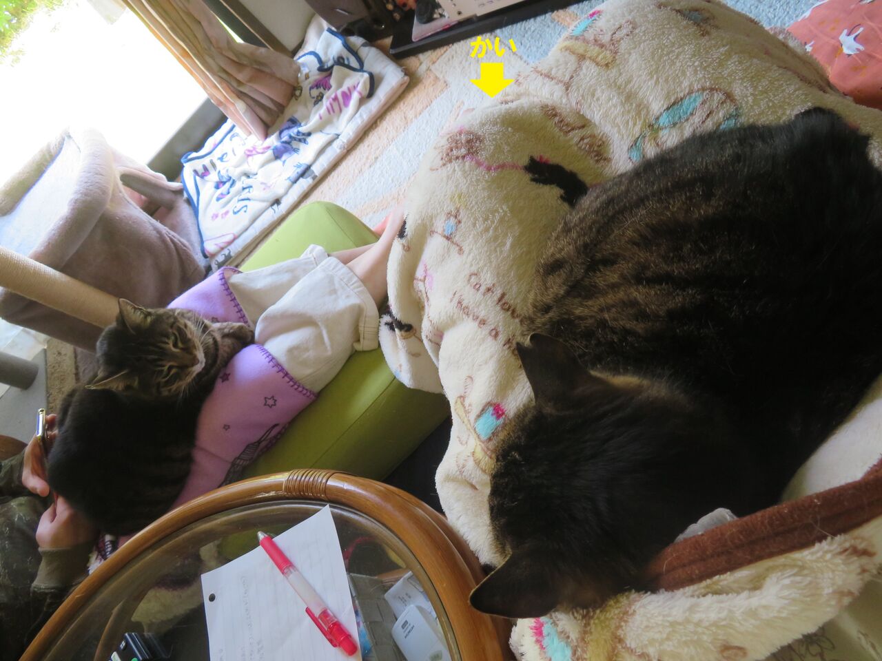 着替えを終えてマッタリすると、お母ちゃんがかけた毛布の中に”かい”が潜ってきて、暫らくココでお昼寝でした