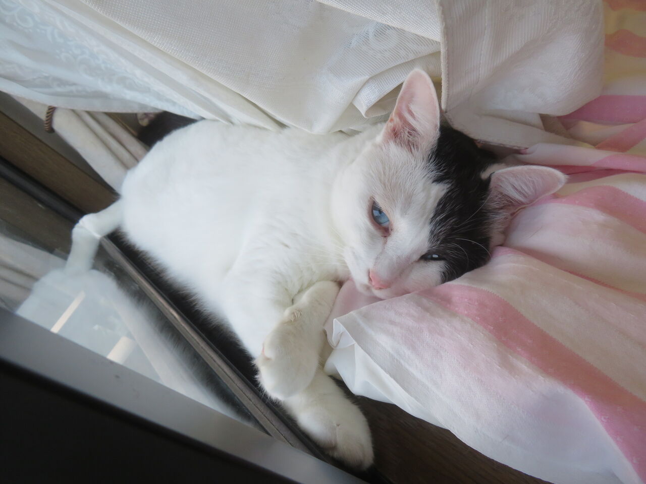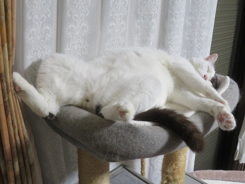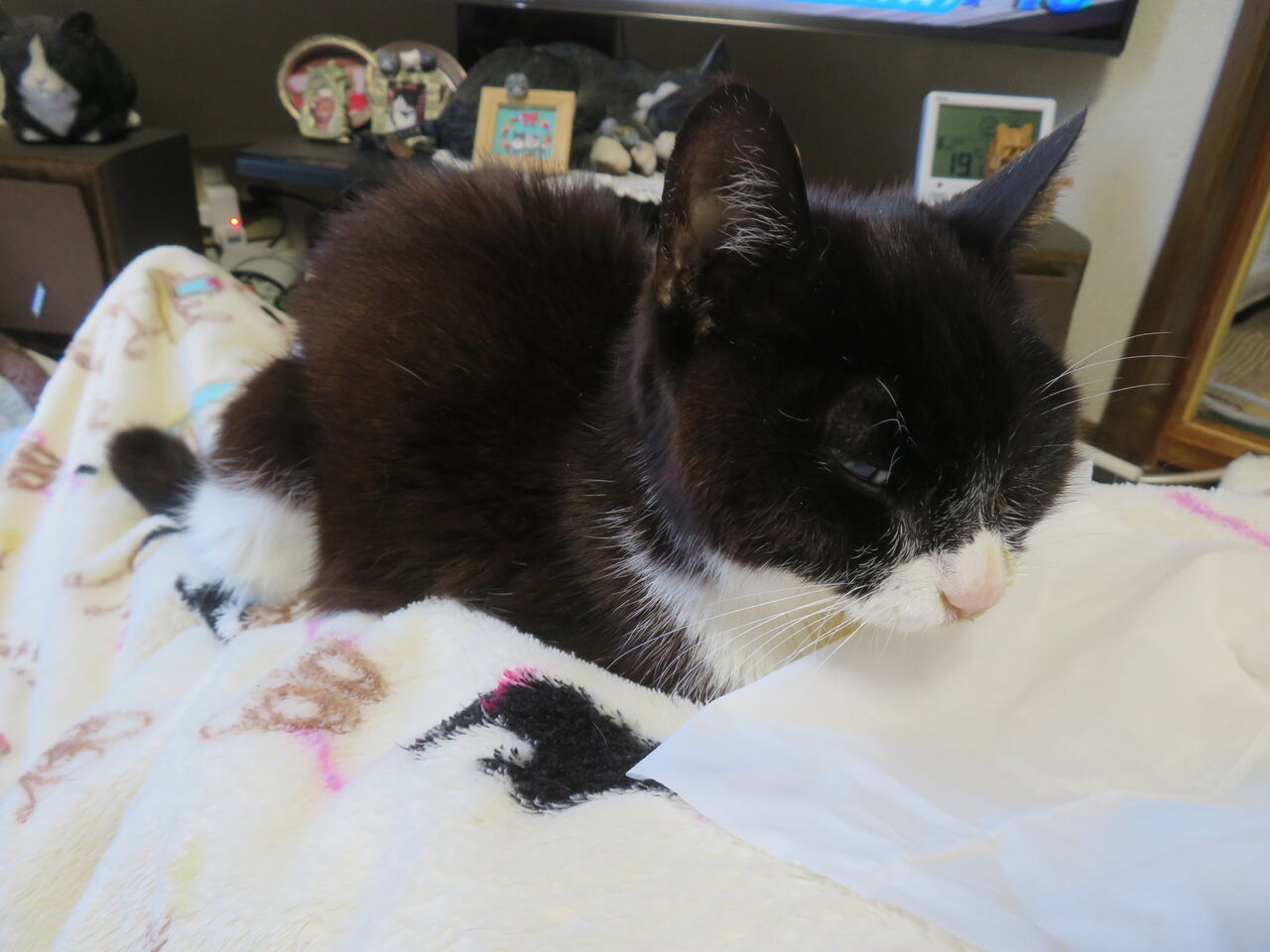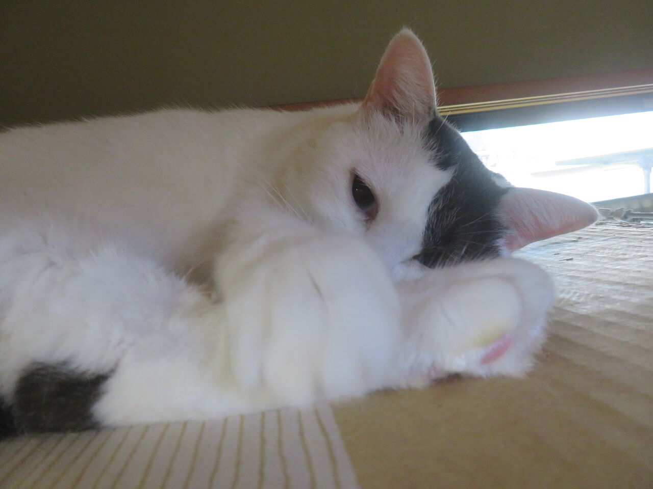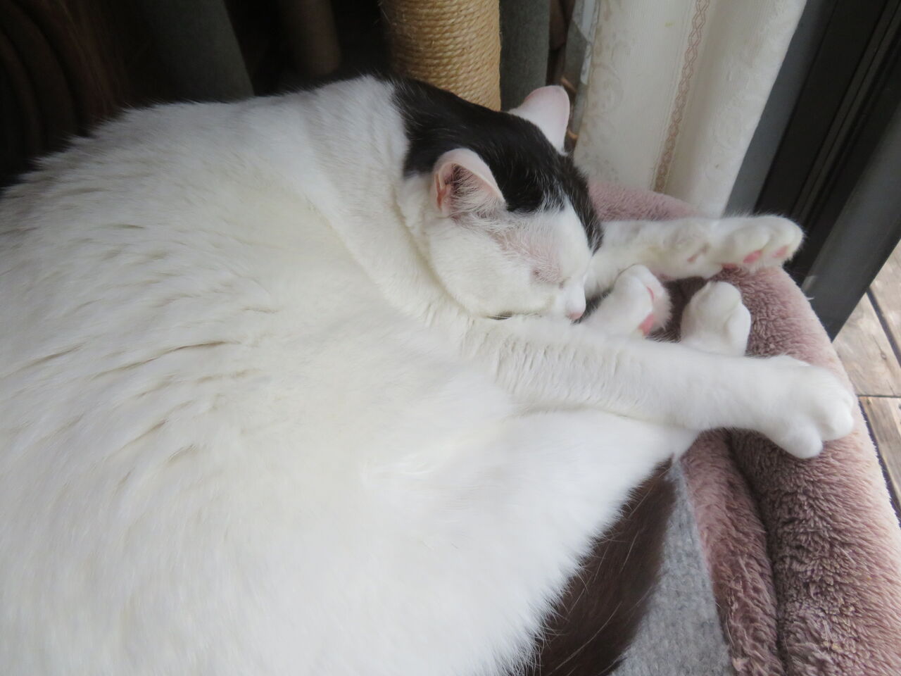 昼頃、窓辺で寝て居た”うみ”でしたが、お母ちゃんの所まで歩いて来て足の間に入りグースーピー。