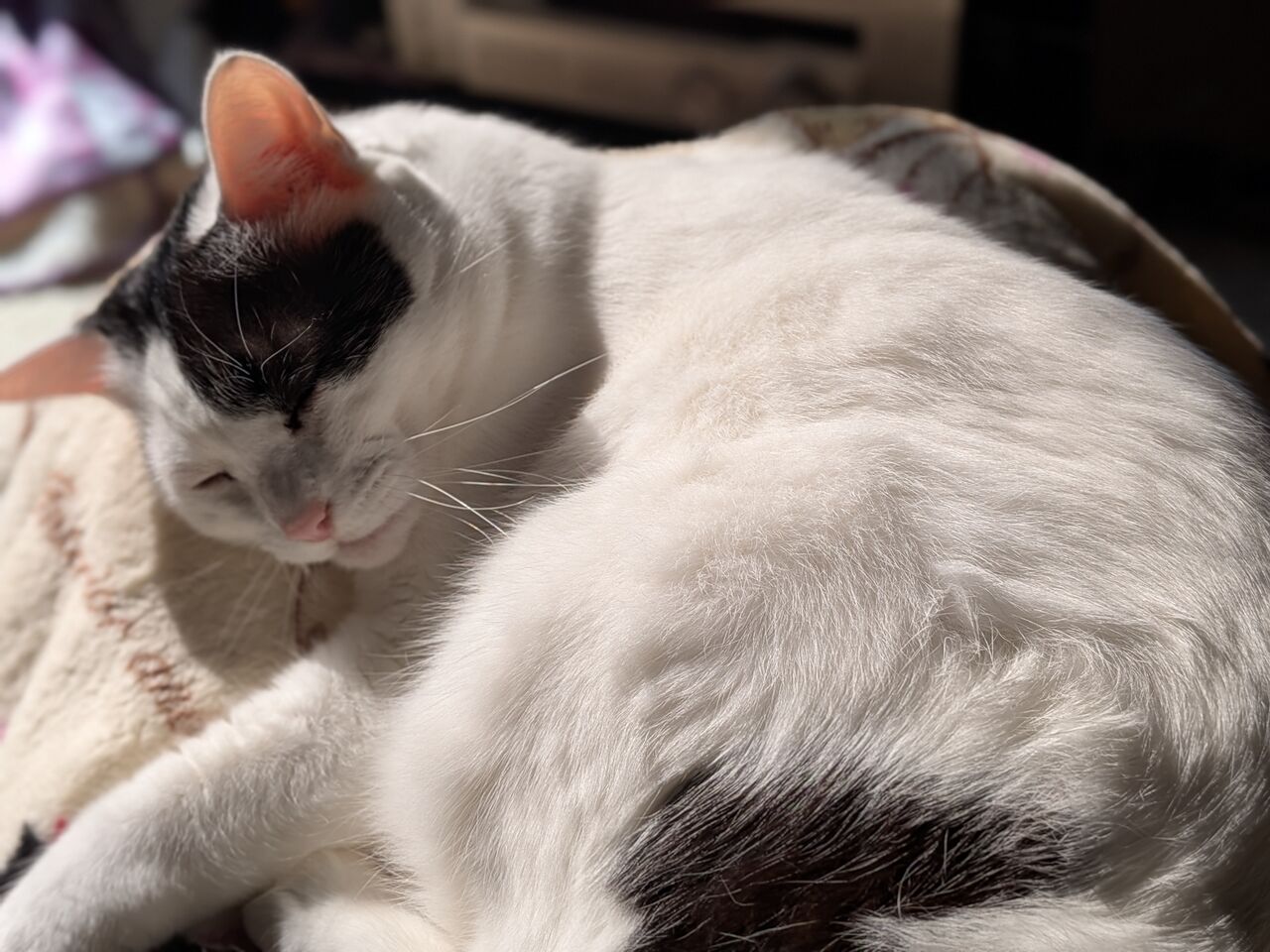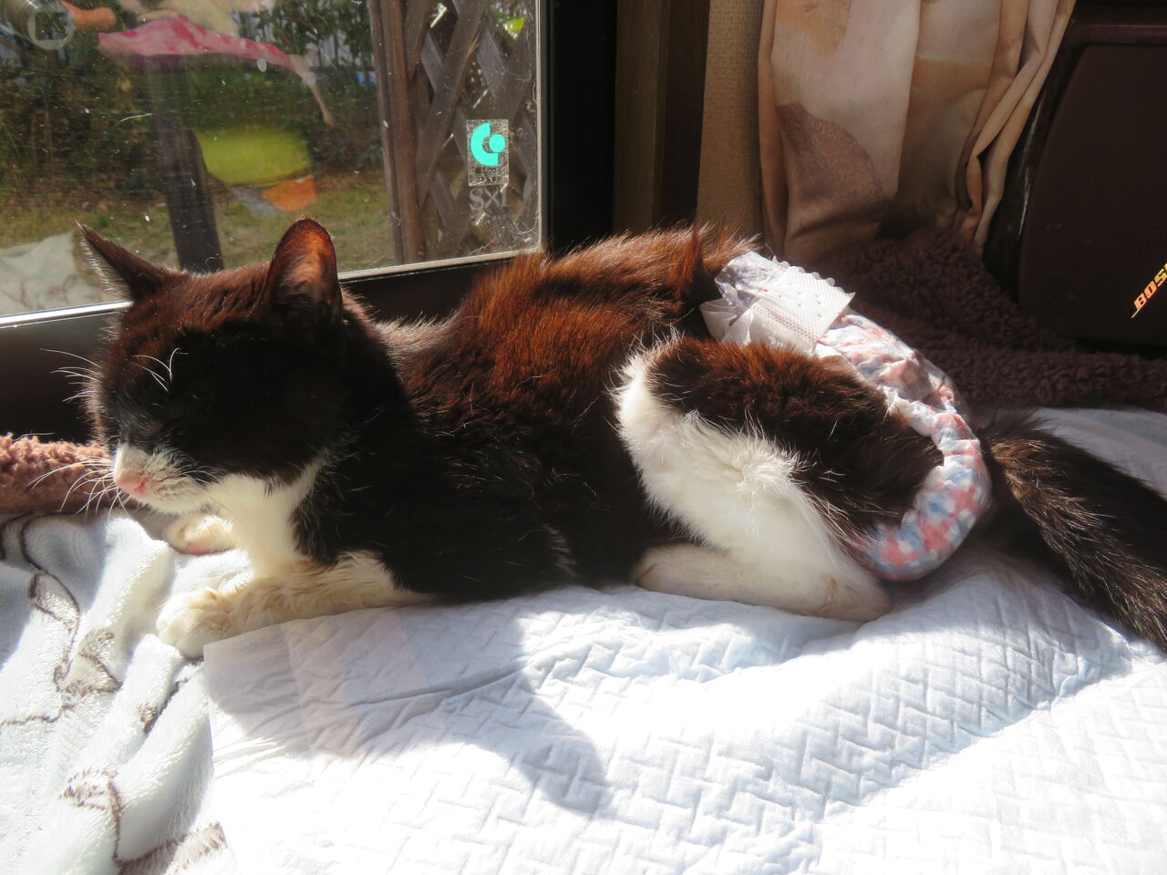 ”うみ”は、大好きなぽかぽか窓辺で、ぽかぽかストーブ前で過ごして、そしてお父ちゃんにいっぱい撫でて貰い、補液やシリンジ給餌等でお父ちゃんに命を託して、そしてお母ちゃんの膝の上でも過ごしてくれて、”うみ”自身の猫生を、精いっぱい頑張って生き抜いてくれたと思っています