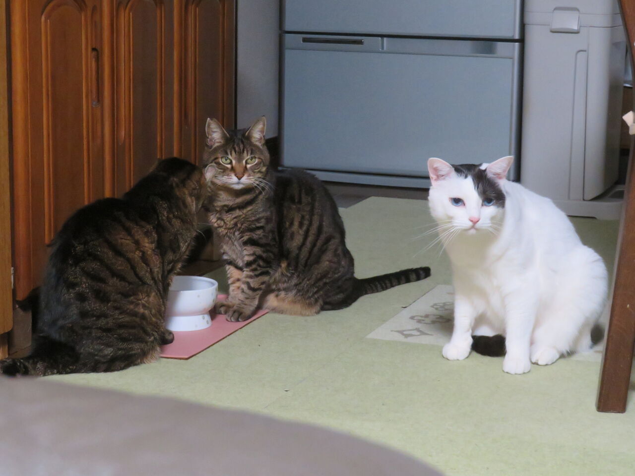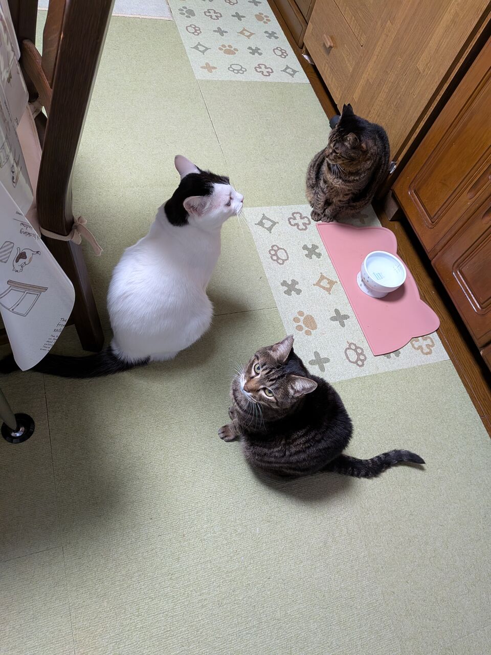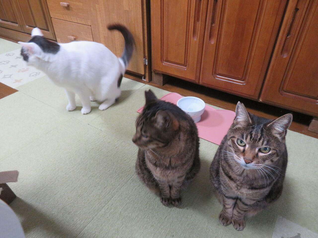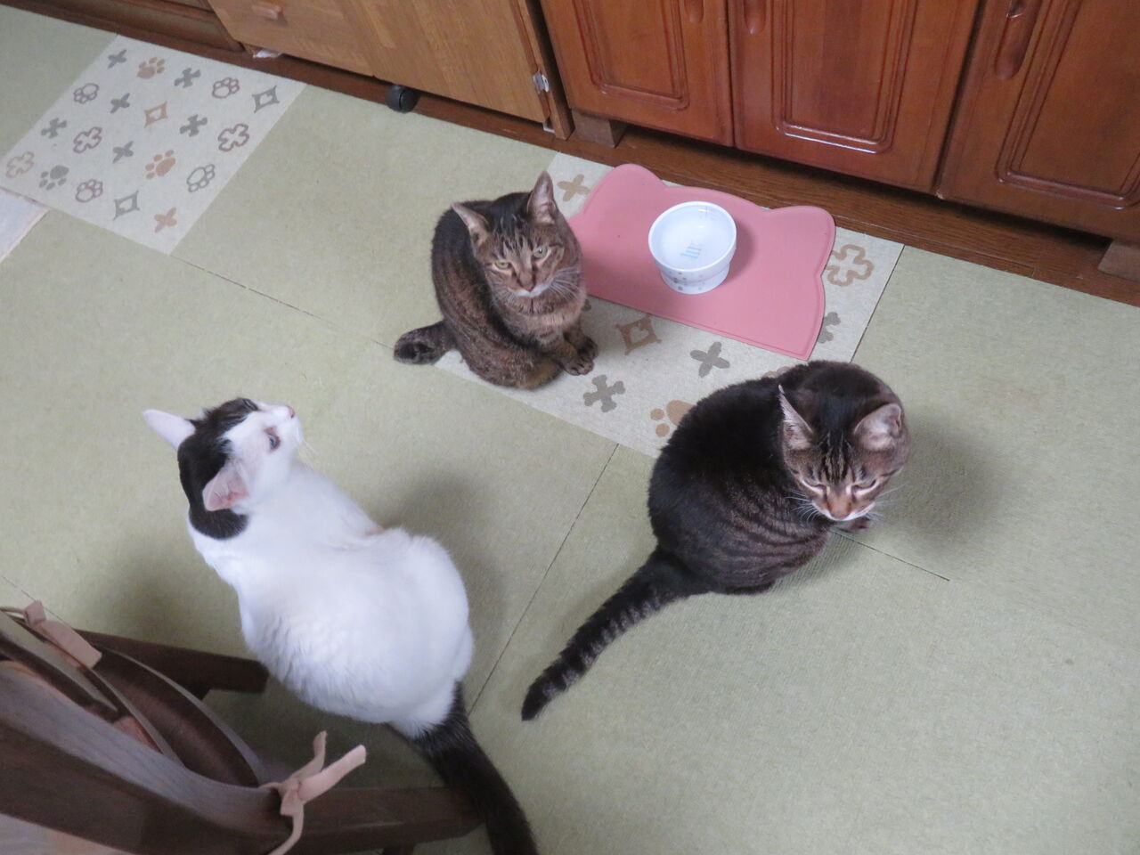 ”なな&たく&かい”は、就寝前のおやつ待ちです。