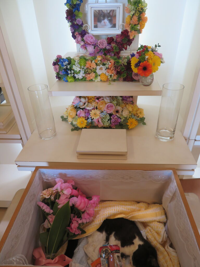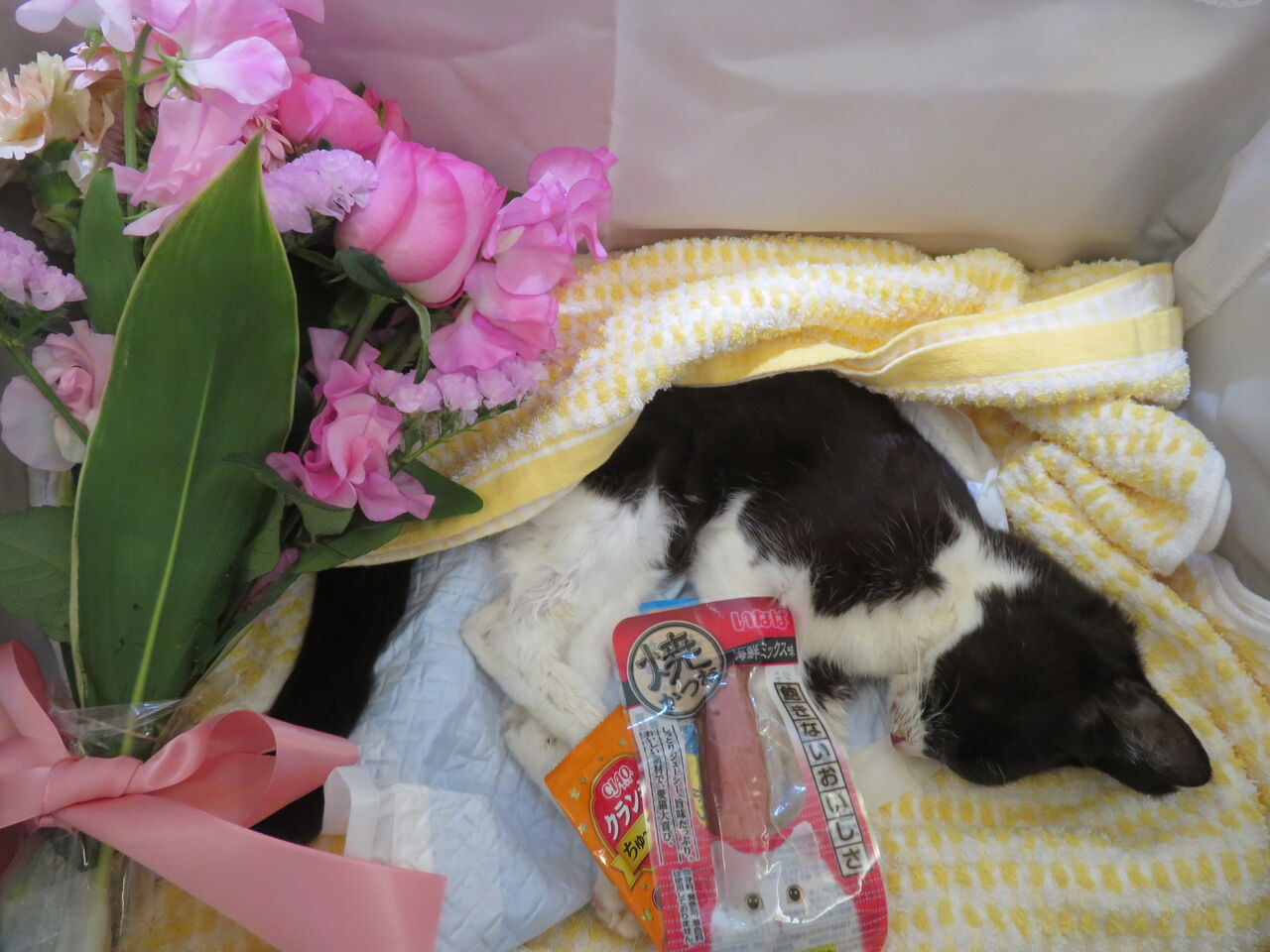 この後、この場所で、”うみ”を温めながら、”うみ”の呼吸を確認しながら、「苦しみません様に」と撫でながら過ごして約4時間後の、11時45分に深く息をして・・・とうとうその時が来てしまいました。
