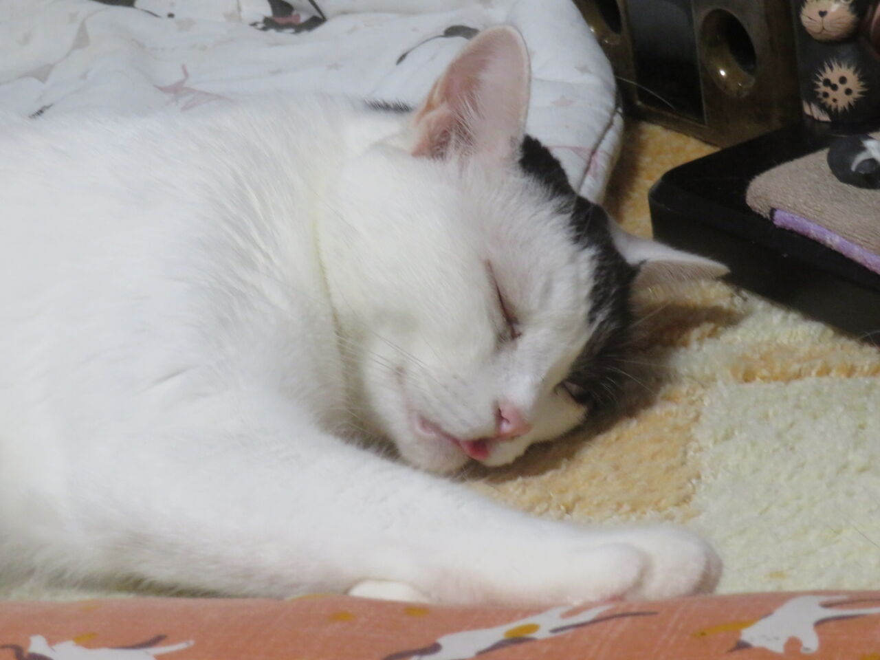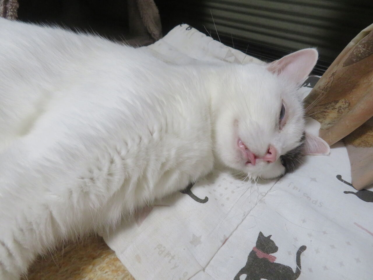 キューブベットの中で寝て居た”うみ”でしたが、早朝4時頃”うみ”の状態が良く無さそうだったので、お父ちゃんの布団の横に連れてきて、呼吸を確認しながら朝まで就寝したそうです。