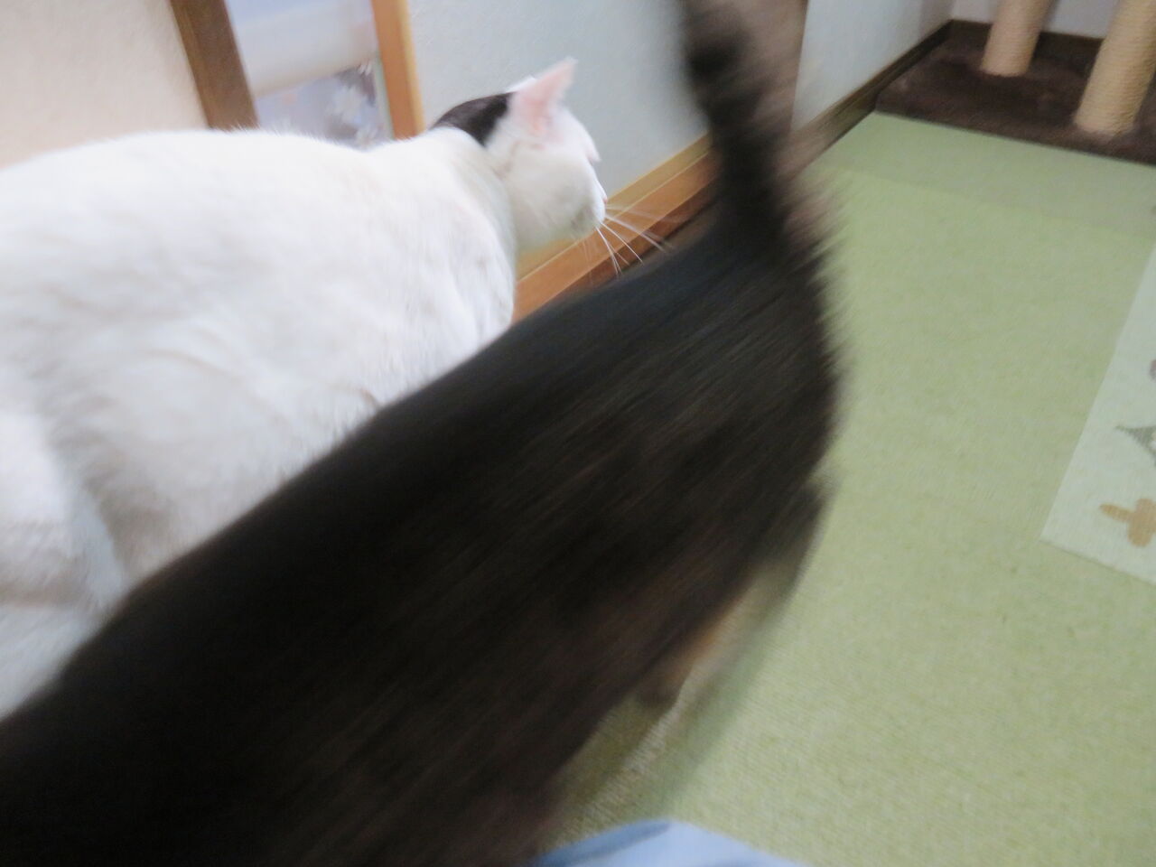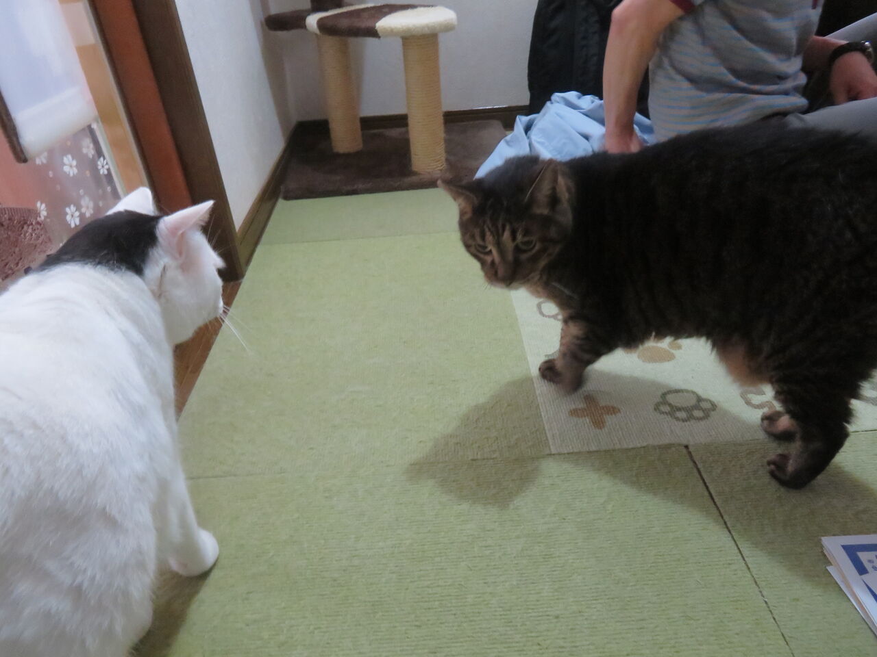 ”ななみ”も膝の上に乗りたかったようでしたが、”かい”に気が付いて避けてしまいました。