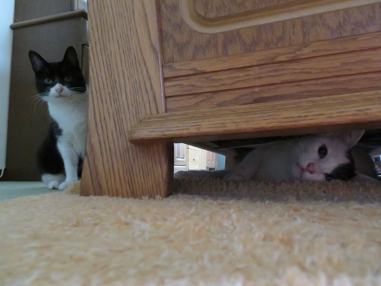”かい”が”うみ”の傍にソロリソロリと近づいて、様子が変だと思ったようでジーッと見ています。・・・