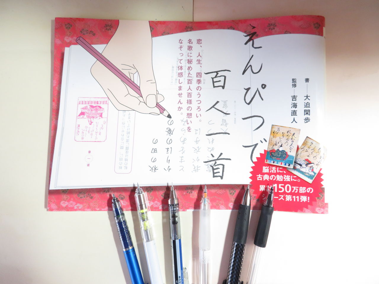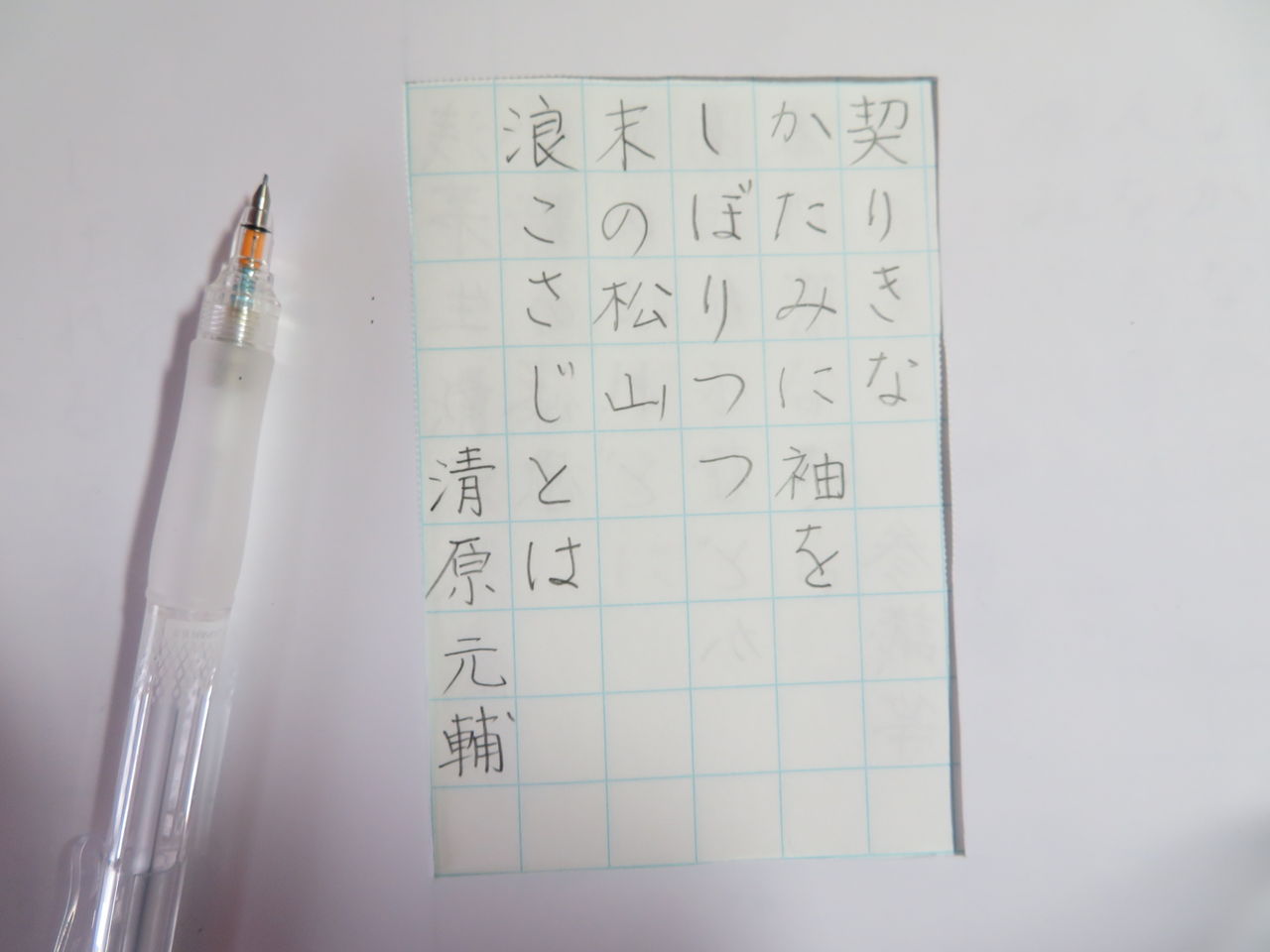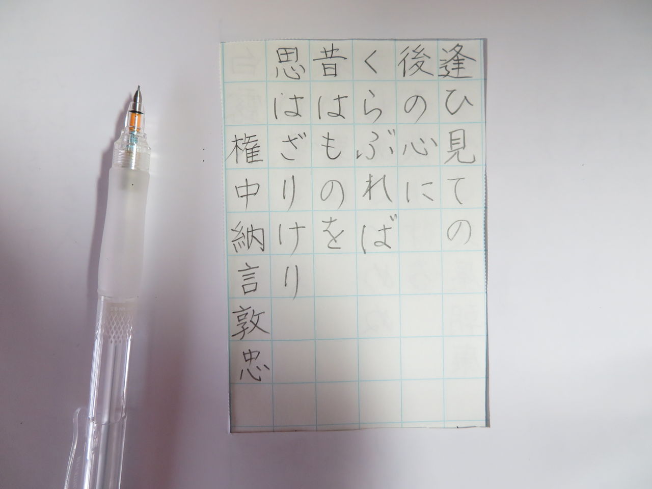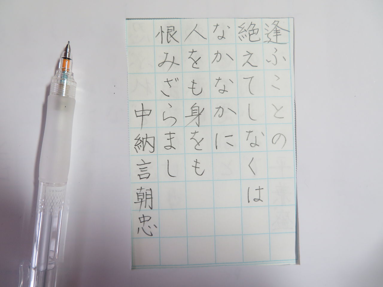 さて、本来は鉛筆で書くのであるが、お手軽にシャーペンで百人一首書いています。