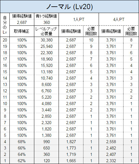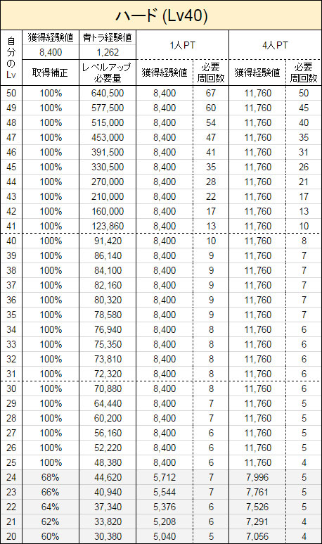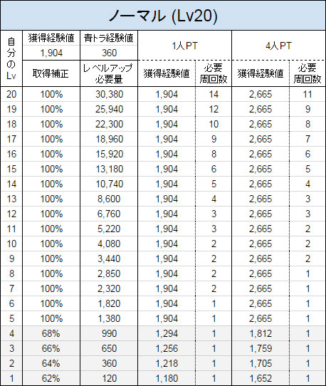 XHでの5周がSHでの12周とだいたい同じなのでXHでレベリングしたほうがわずかに経験値効率は上になる模様