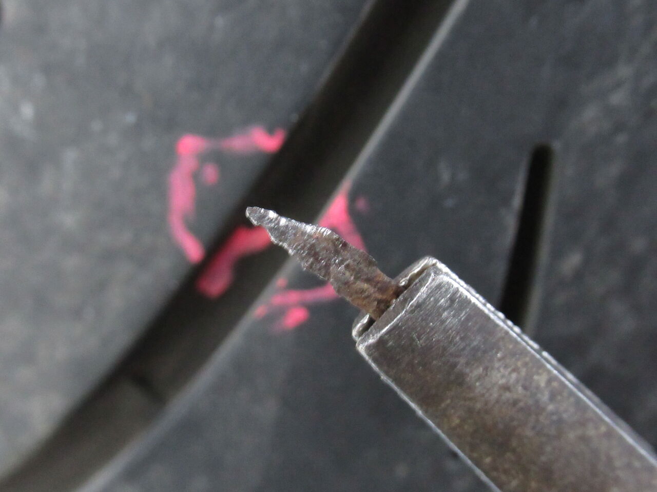 ○【クイズ】タイヤに刺さっている金属の長さは?【ネタブログ】