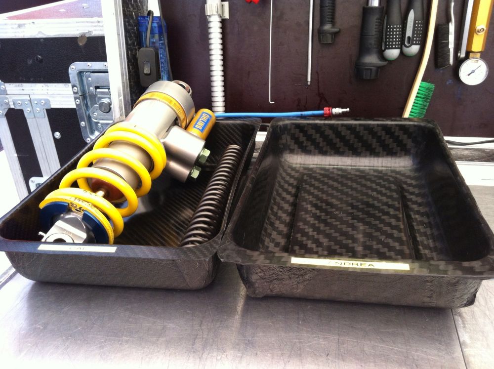 でも、個人的に一番刺さったのはメカニックが使っていたパーツトレーすらもカーボン製だった事!!