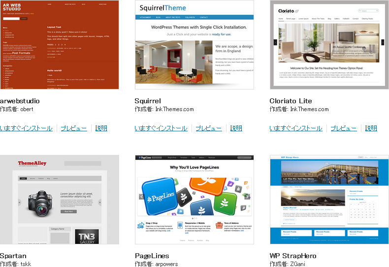※はじめから複雑なテーマを選ぶとカスタムや設定で挫折したりするので、はじめはシンプルなテーマから試すのがおススメ。