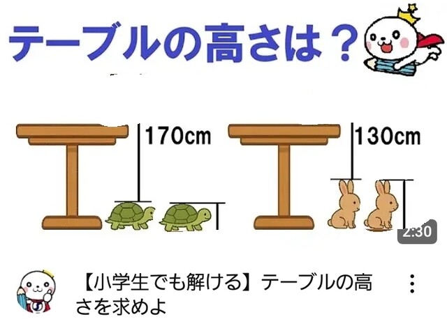 例えば、上と下が両方亀(orうさぎ)だった場合の高さの表示は、求めるテーブルの高さに等しいのは明らか