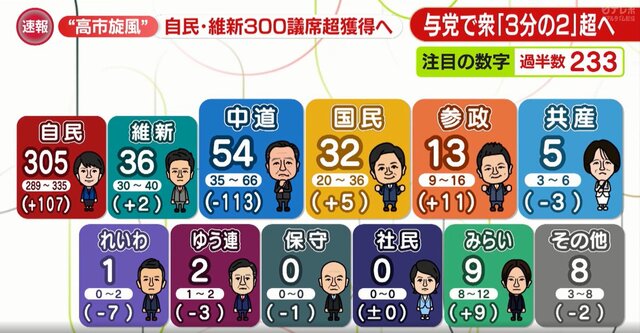マスコミが300議席って言ったから中道は負けたとか、なんのギャグだ