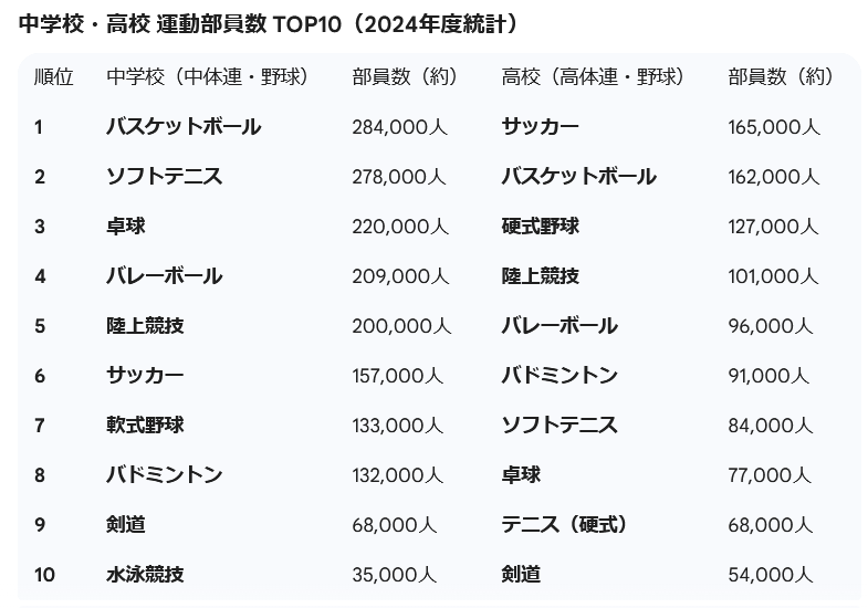 Jリーグはアレやけど、プレイヤーの数で言えばサッカーの圧勝やろ。中高の部活でも運動部ではサッカー部が一番多いんやないの?