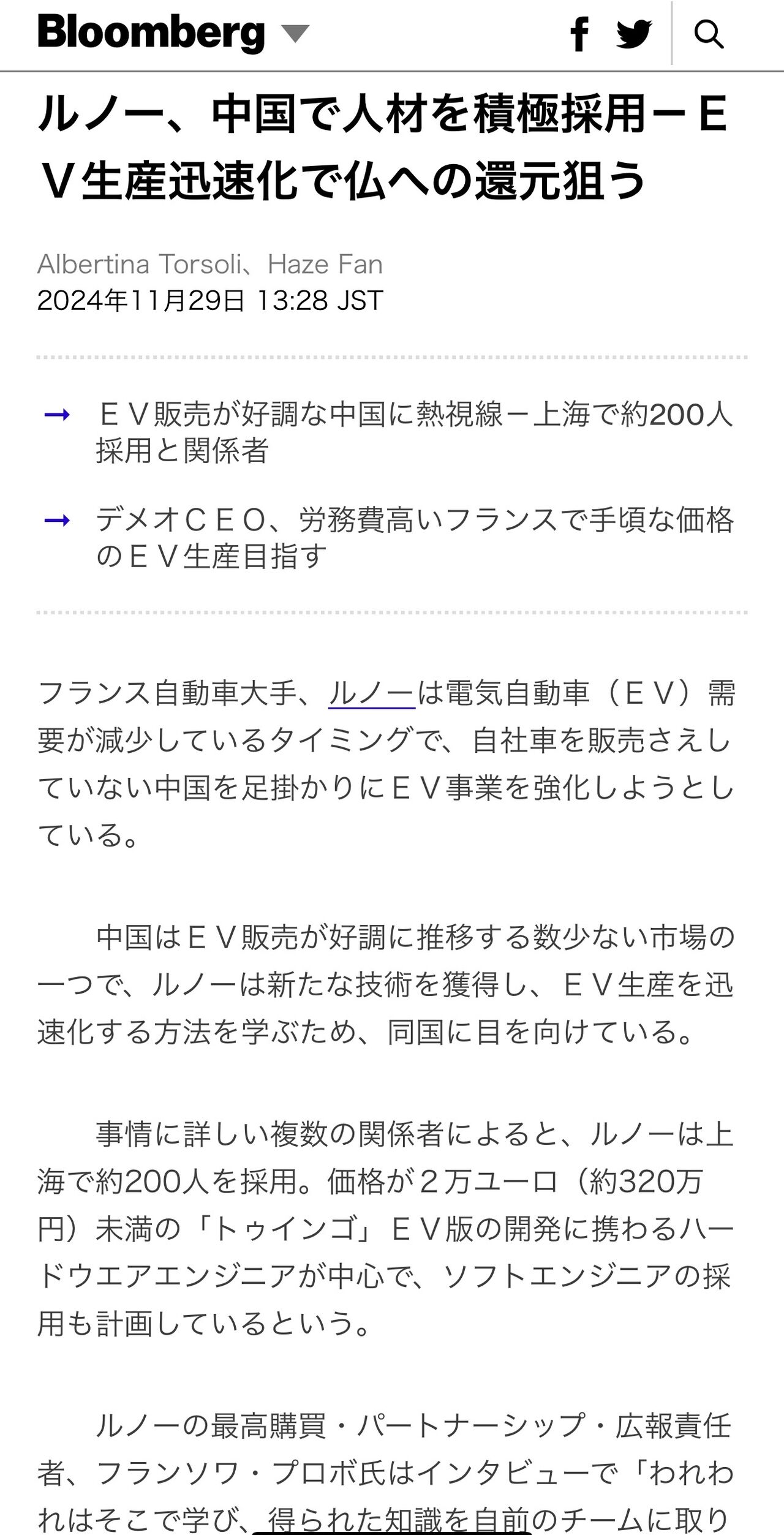 営業所作るってだけの話だろ 日産と開発中って月始めに記事読んだが
