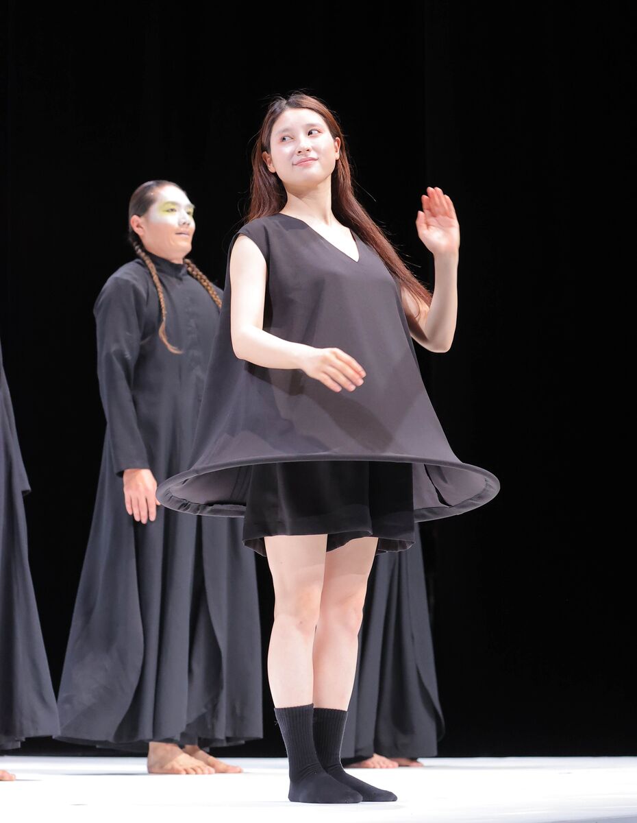 現在、土屋は第1子を妊娠中だが、劇中で着用する衣装はふんわり広がる黒のフレアトップスにショートパンツ姿で、おなかのふくらみはそこまで目立たない工夫がなされている様子。セリフはなく、ゆったりしたターンや大きな動きで、観客を異空間に引き込んだ。