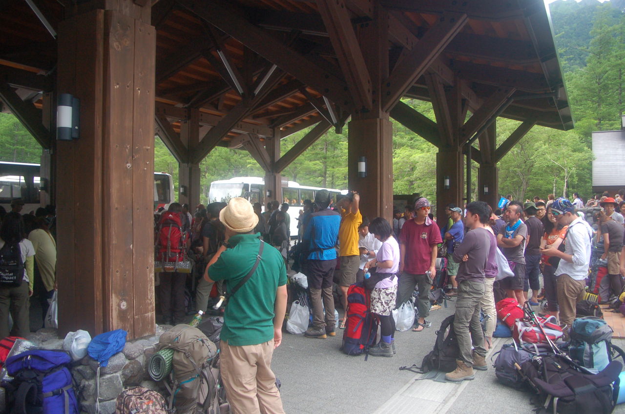 上高地バスターミナル。人は多いが、バスにはすぐに乗れた。