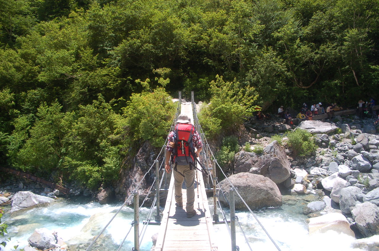 アカンダナ駐車場はそれなりに車はいたが静か。バスもすぐに乗ることができた。上高地へも順調に到着。上高地も意外と静か。3連休中日、しかも梅雨明けと言うことですごい混雑を心配したが、順調に出発することができた。