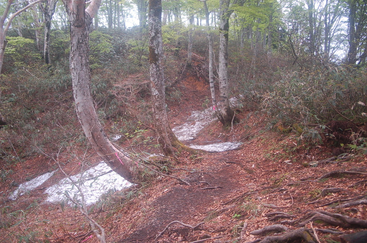少年自然の家前にゲートがあるが、長尾峠まで車は入ることができる。そこから長尾山経由で大辻山へ。道は整備されているし雪も頂上付近にわずかに残るだけ。順調に頂上へ。