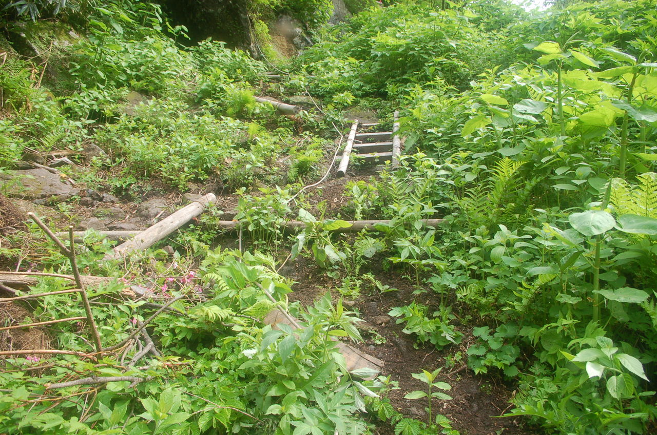 崩壊箇所。荒れてはいるが問題なく通行できる。