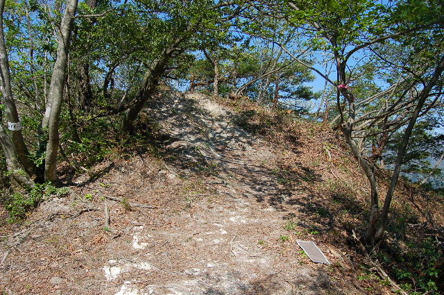 やがて尾根道に交わる。ここは左に折れる。