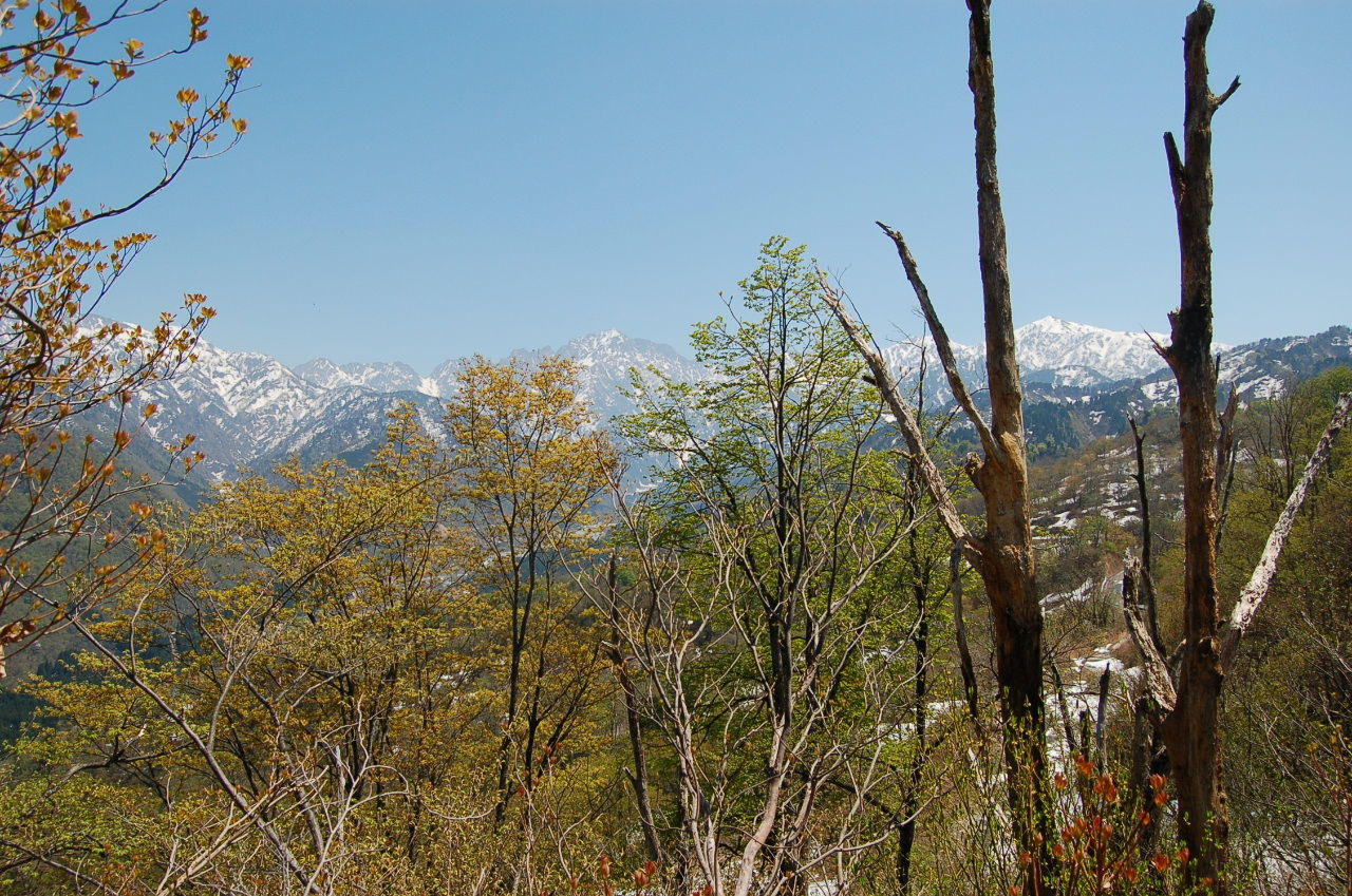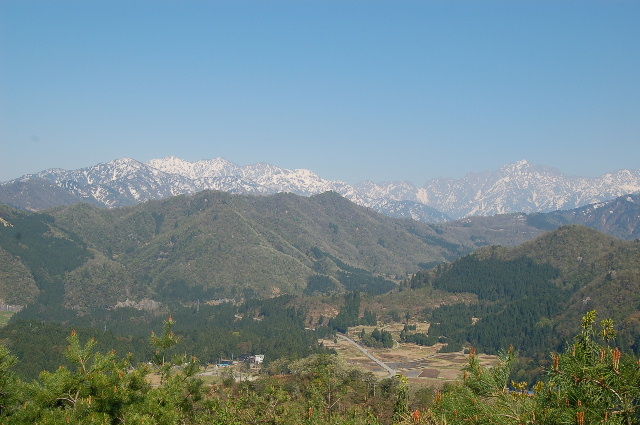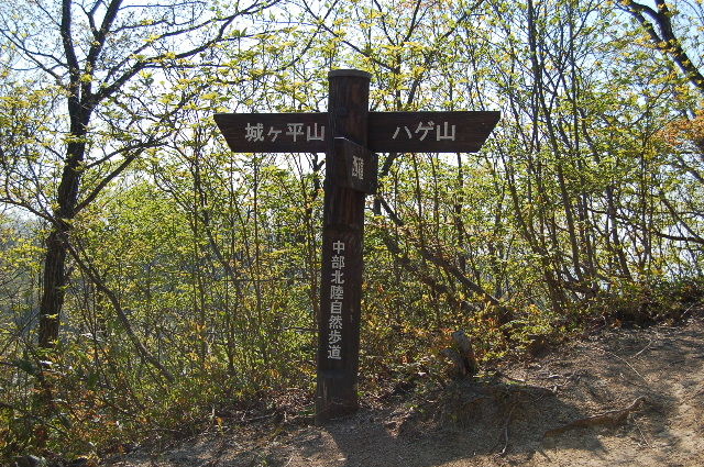 時間も早かったのでもう一座、ハゲ山へ。上市川ダムを渡り種集落へ抜ける。ここからのアプローチは初めてなので登山口がわからず、近くの人に聞くと、西種のバス停前に車を止めて行けばいいとか。水上集落の途中から登山道へ。杉林を登っていくとやがて尾根沿いの道へ出る。これをハゲ山への道と間違え右へ進む。見晴らしの良い高台に出るがなんだか冬に来たときと雰囲気が違う。戻って、先ほどの分岐を左に進むと城ヶ平山からの尾根道に出た。看板もある。これを右に折れしばらく歩けばハゲ山。ここからの景色も絶景。