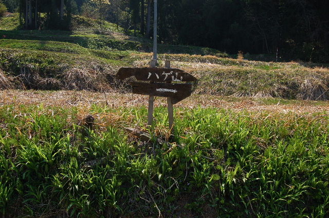 ハゲ山への道に出るところには標識。