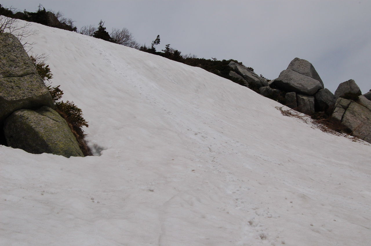 稜線上には所々急な雪壁