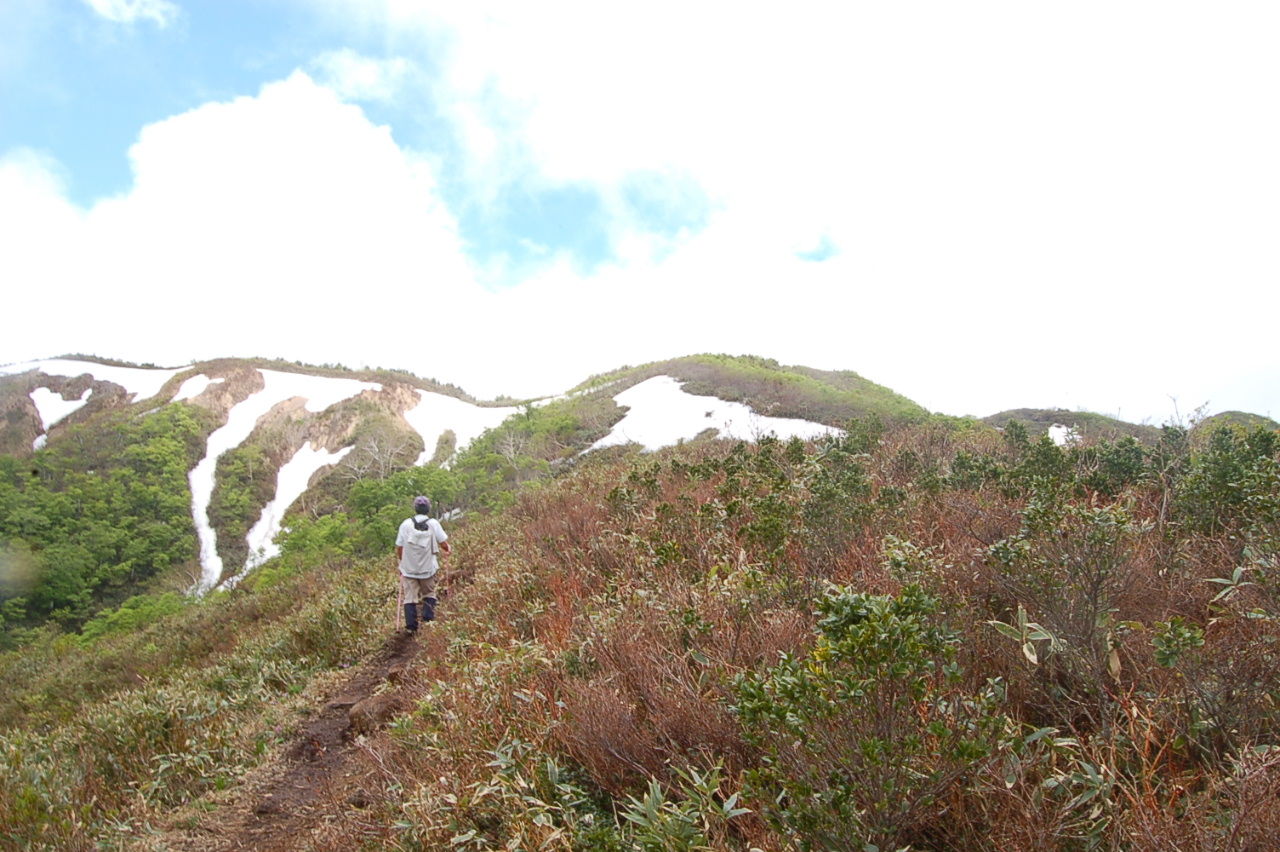 登山道は相変わらずきれいに整備され歩きやすいもの。距離は長いが急なところは少ない。雪は例年よりも多く残っていた。朝までの雨の影響もあり道はぬかるむ。汚れるのはいやらしいが、下りでも滑りやすいこともなく順調に歩ける。