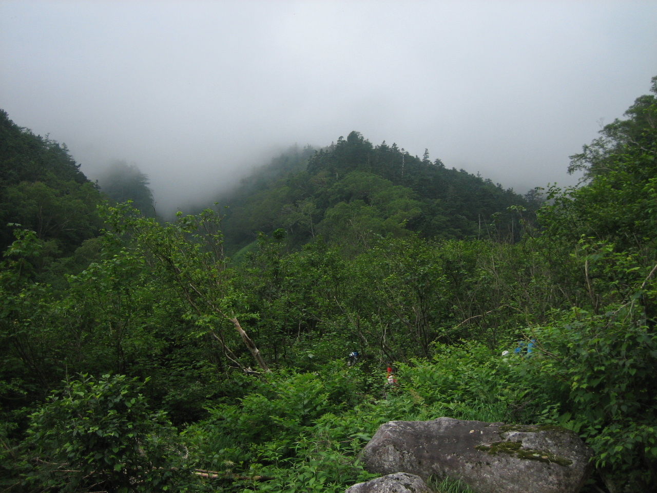 下山路。下にもガスが立ち込める