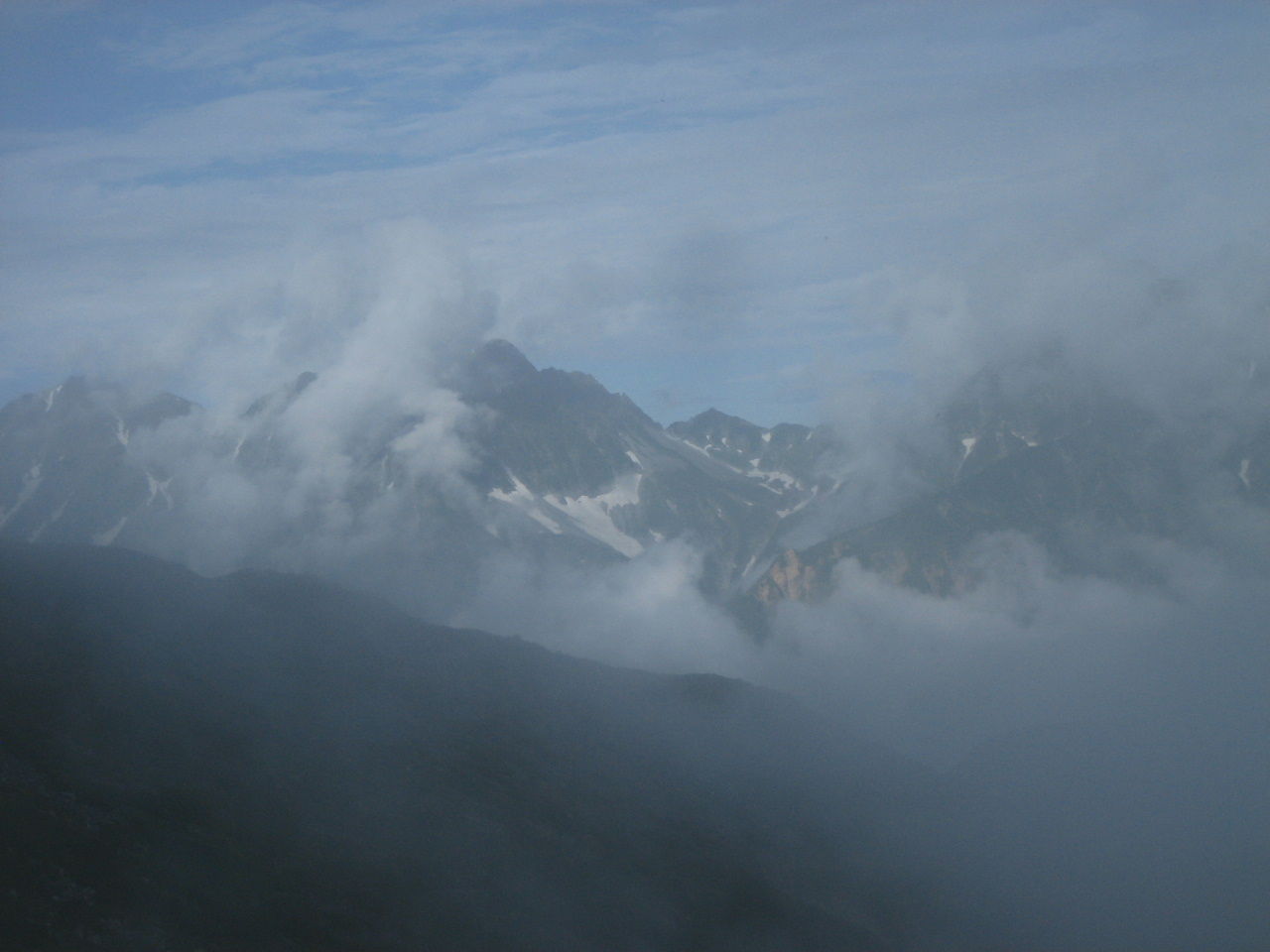 ガスに隠れて幻想的な穂高